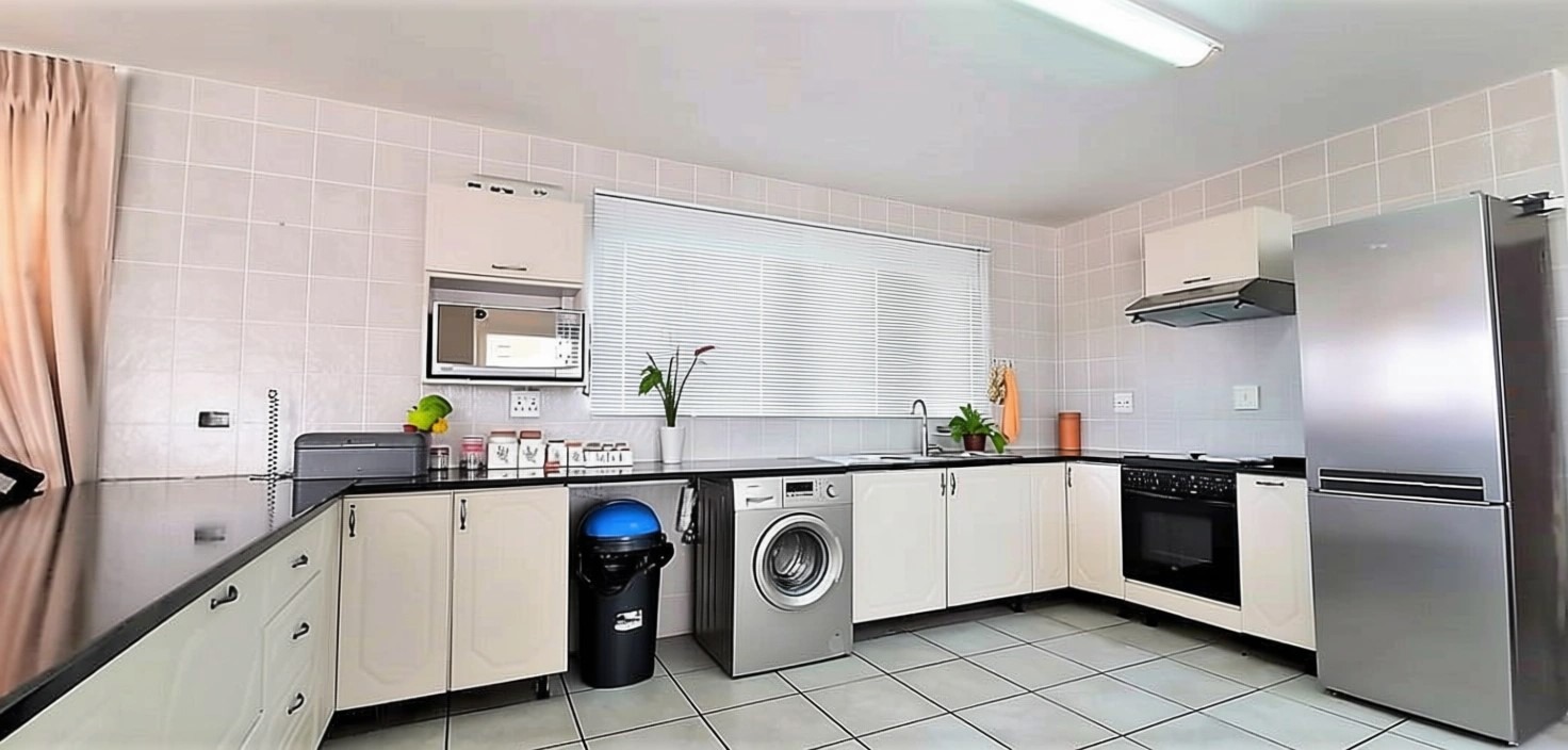 Security is paramount, featuring an alarm system, access gate, electric fencing, burglar bars, and security gates, providing peace of mind. This secure complex living ensures a safe environment for all residents.