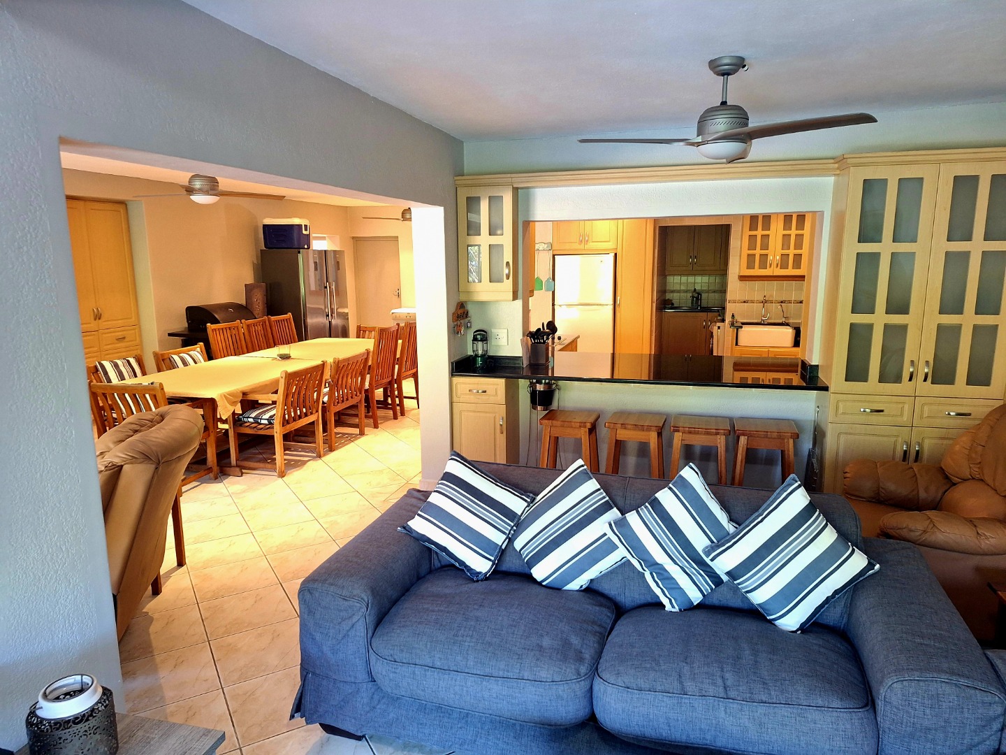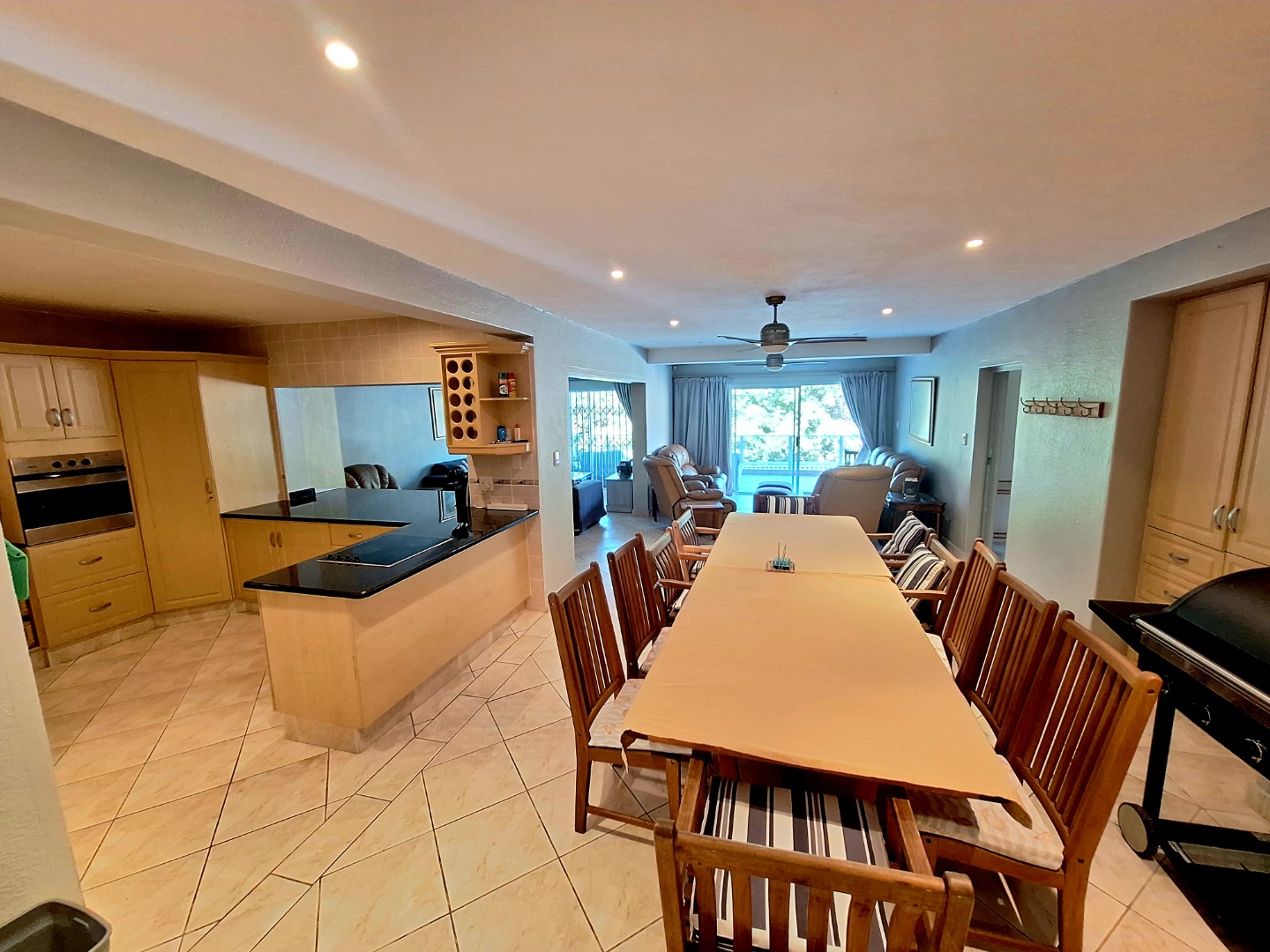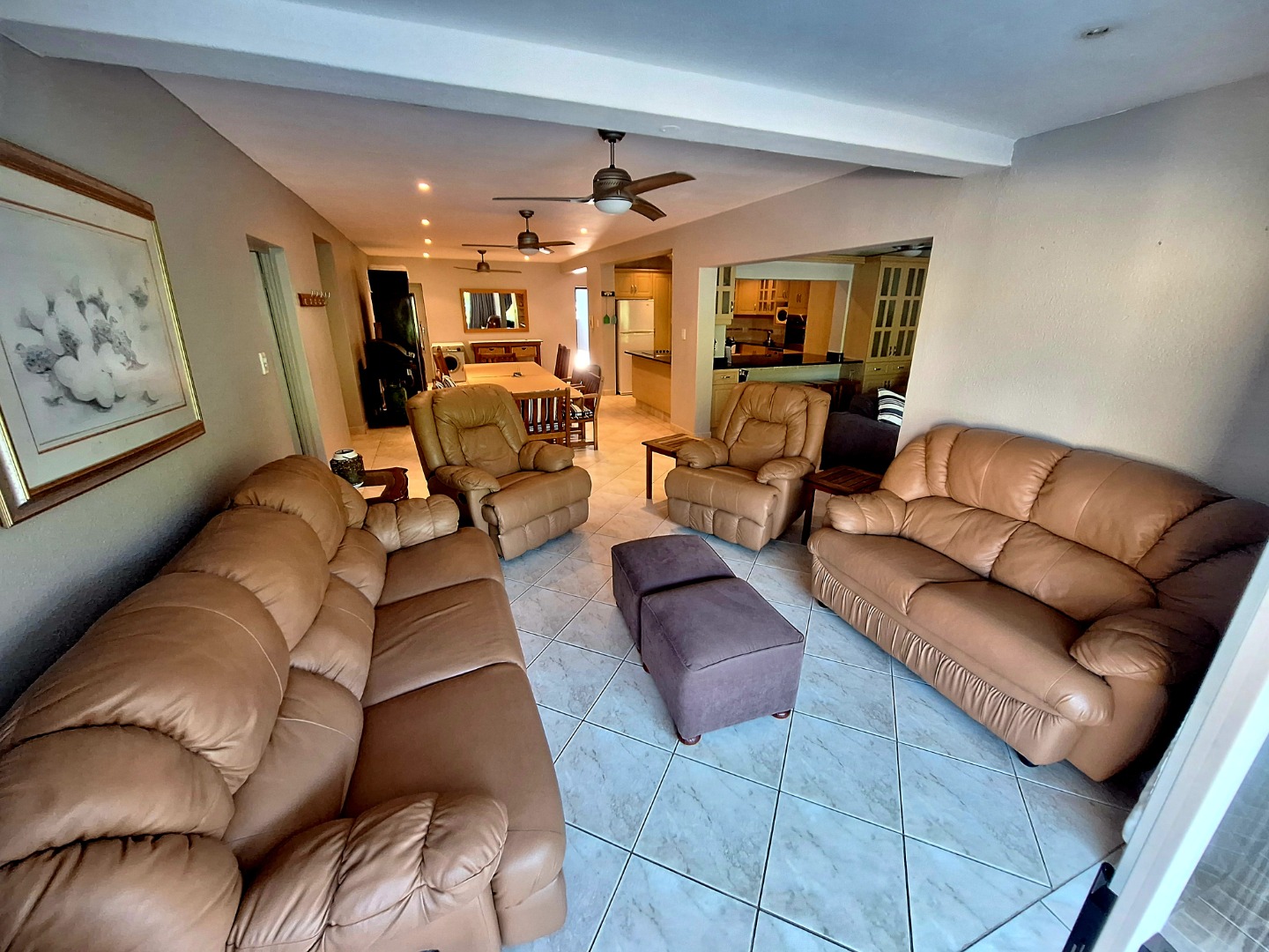 2 x Lounge Areas that open onto the covered patio. Stunning and spacious open plan kitchen with ample cupboard space. The kitchen flows into your dining area.