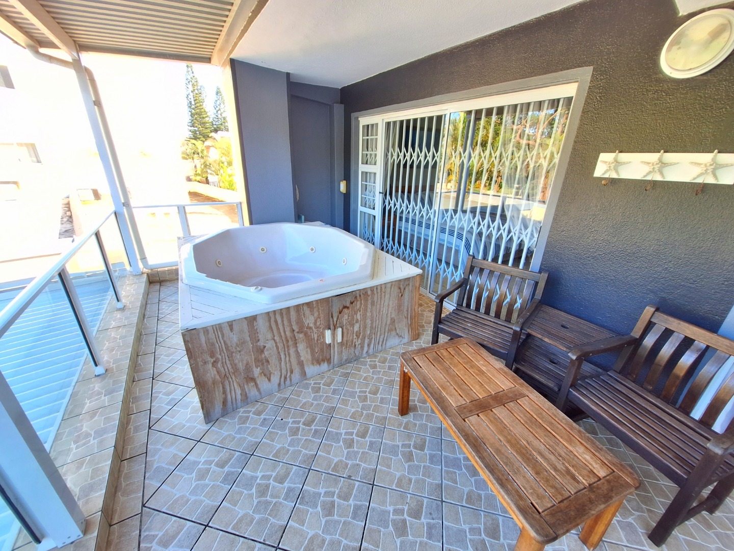 The spacious patio with jacuzzi is perfect for entertainment and get togethers.