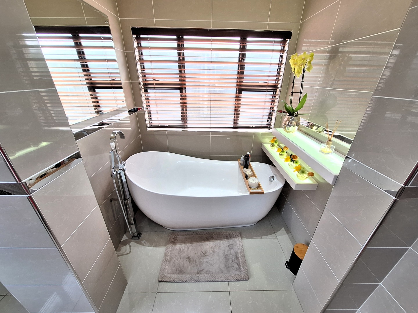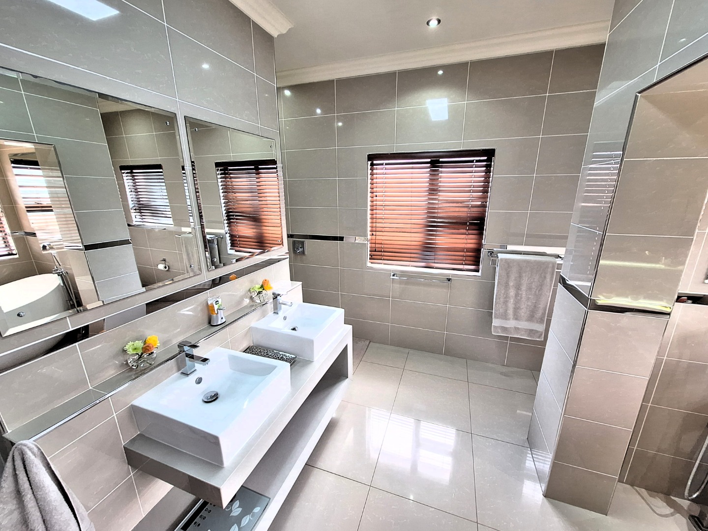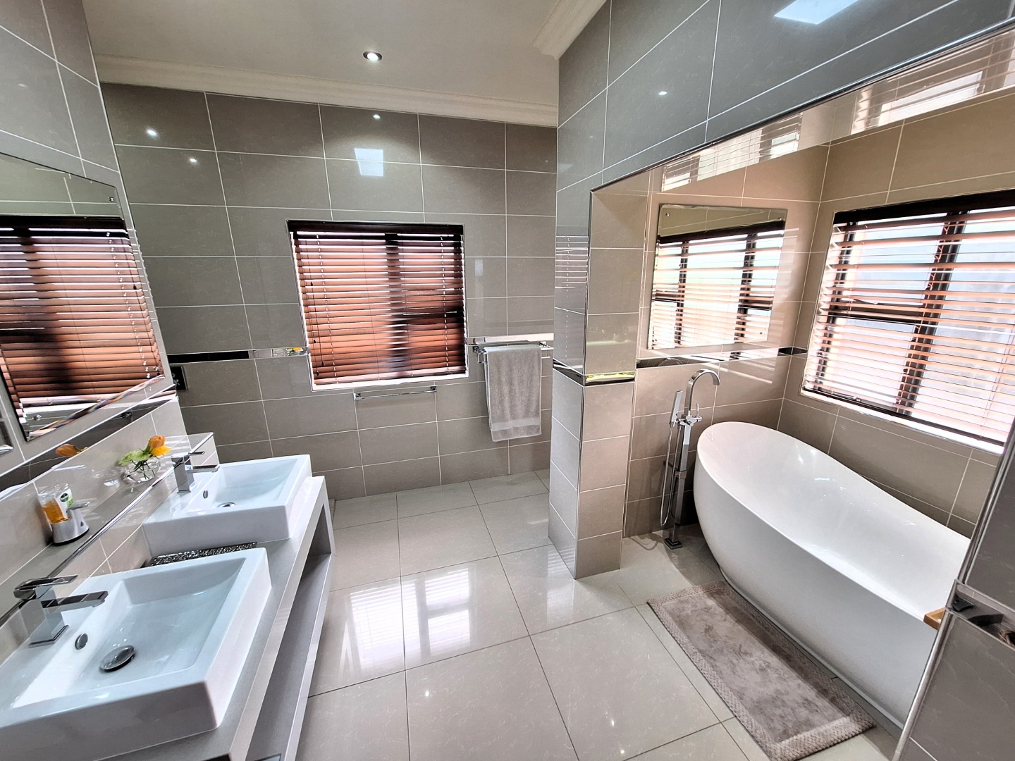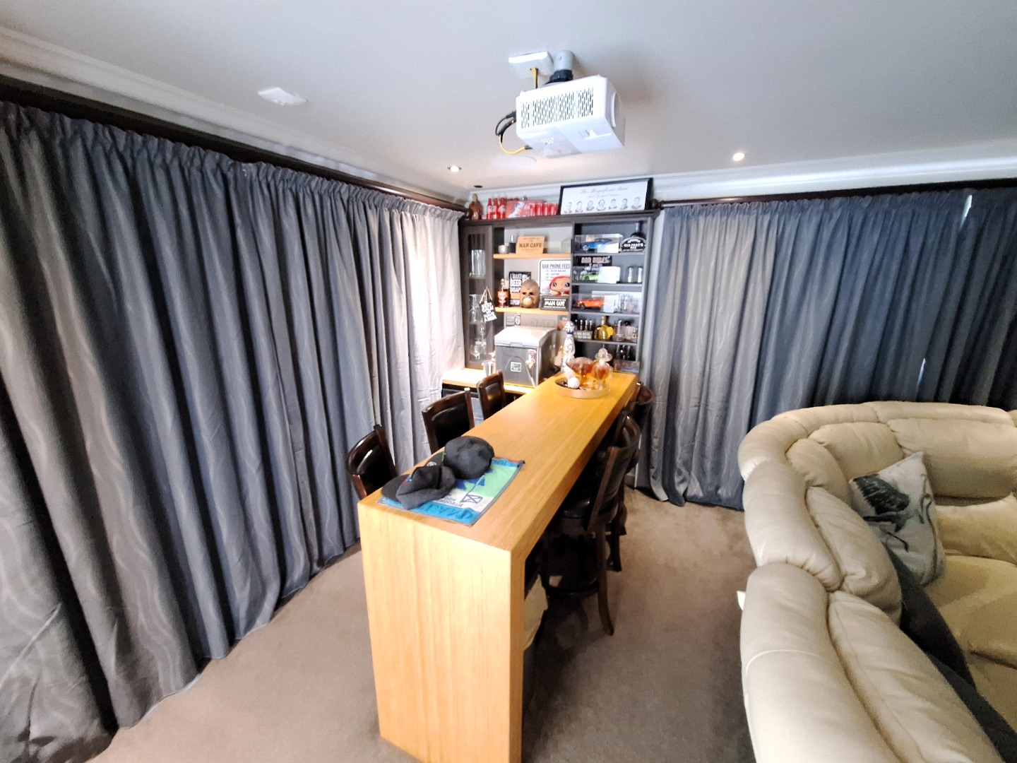 The heart of this home is undoubtedly its state-of-the-art kitchen, a culinary haven featuring sleek, high-gloss white cabinetry, integrated appliances, and a substantial island with breakfast bar seating. This exquisite space effortlessly transitions to the outdoor entertainment area, boasting a built-in braai and bar, perfect for alfresco dining and enjoying the South African climate.