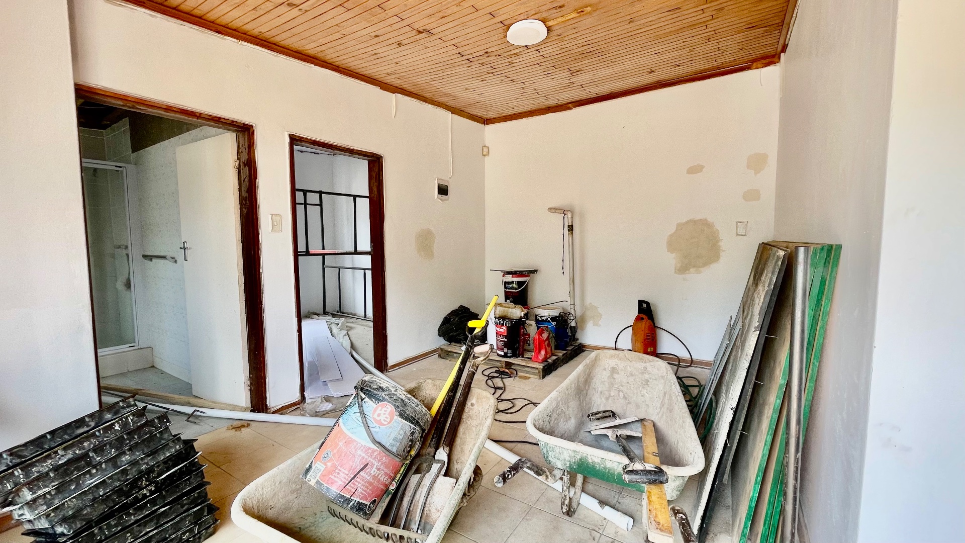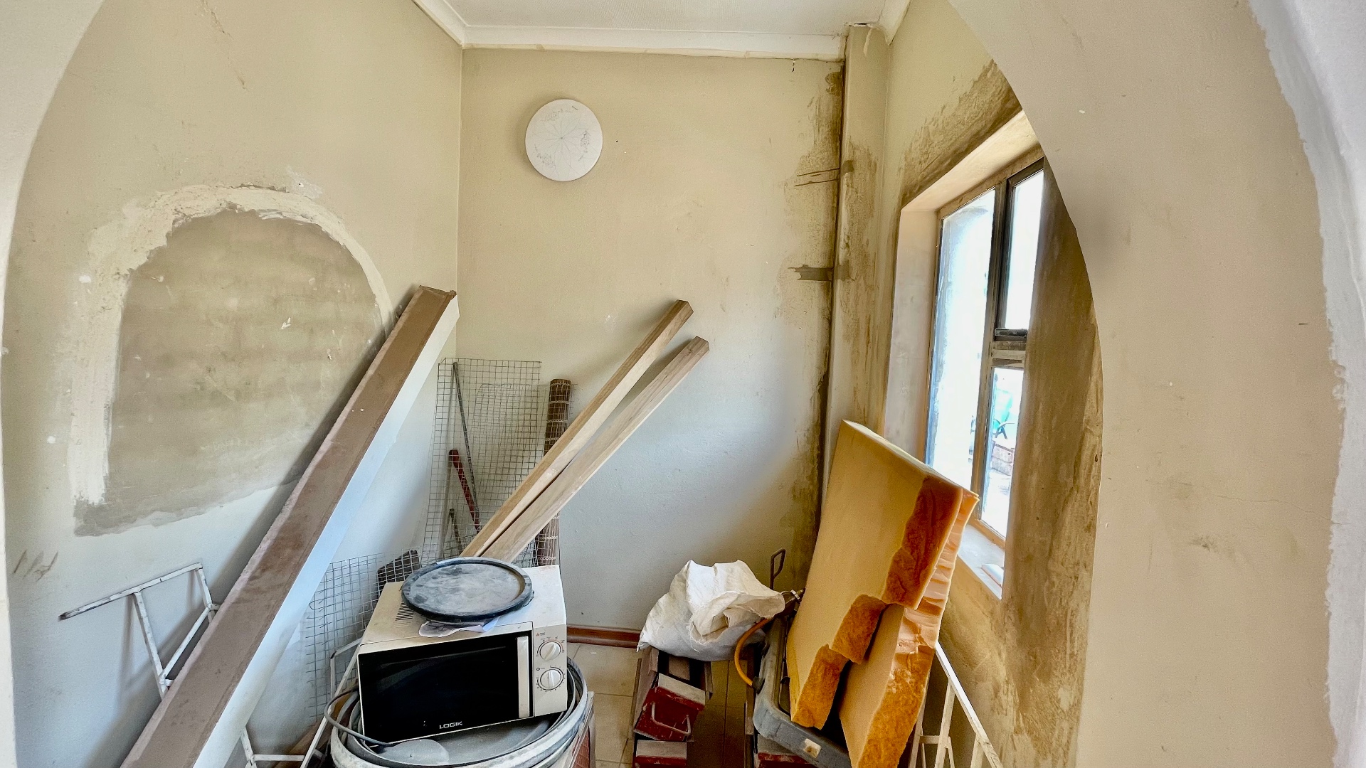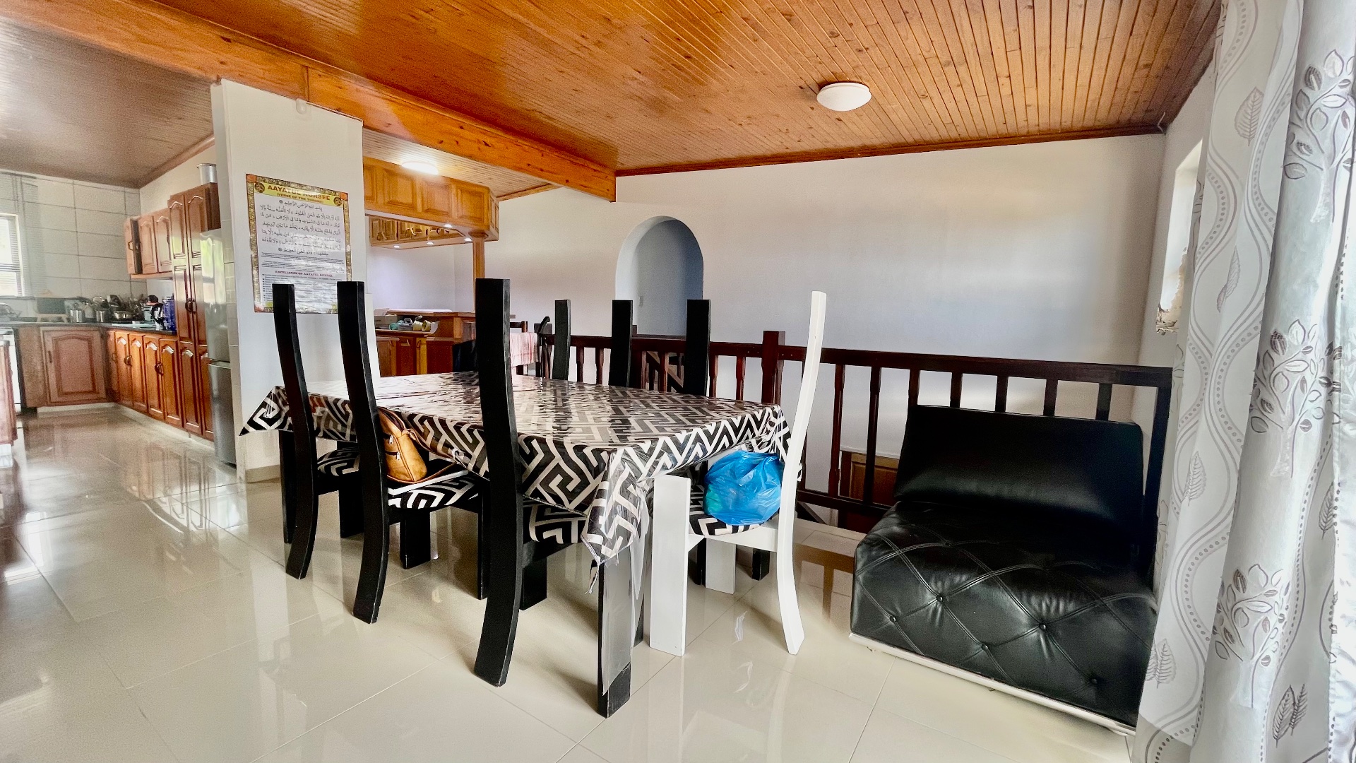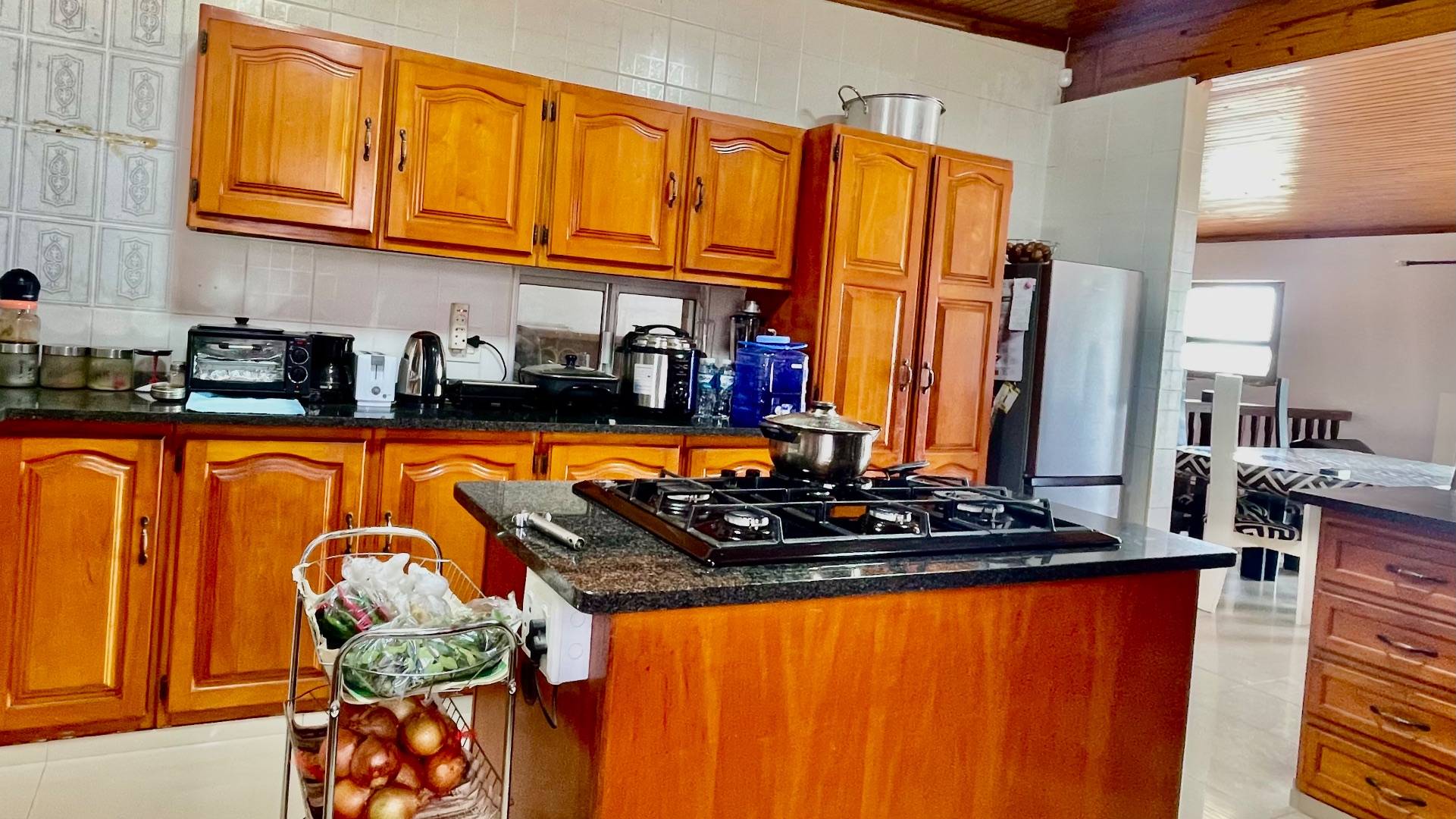 The interior features a versatile multi-level layout, encompassing a comfortable lounge and an impressive three kitchens, catering to diverse living arrangements. Distinctive elements include a prominent wooden staircase. A dedicated bar area, complete with extensive built-in wooden cabinetry, offers an ideal space for entertaining.