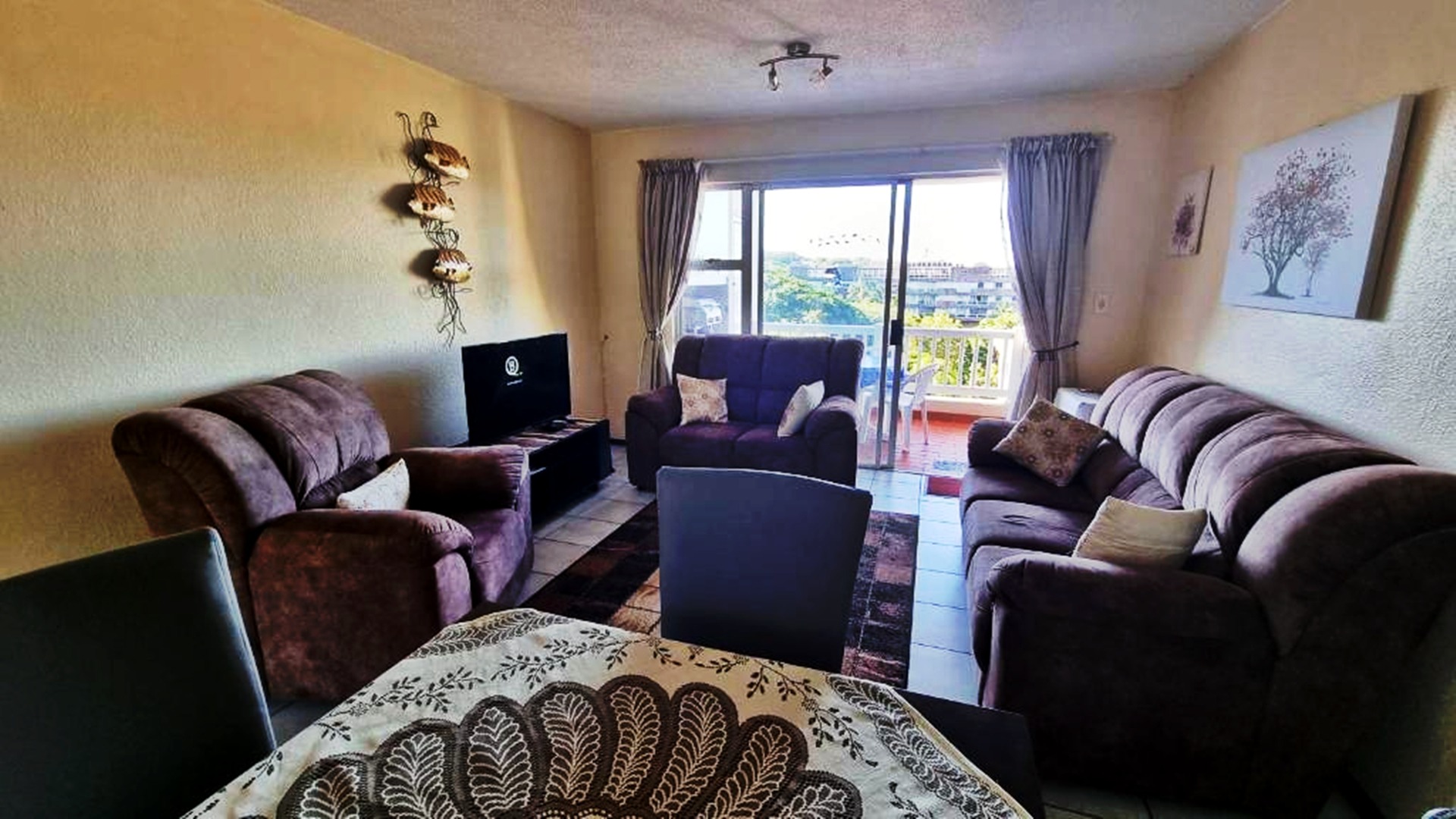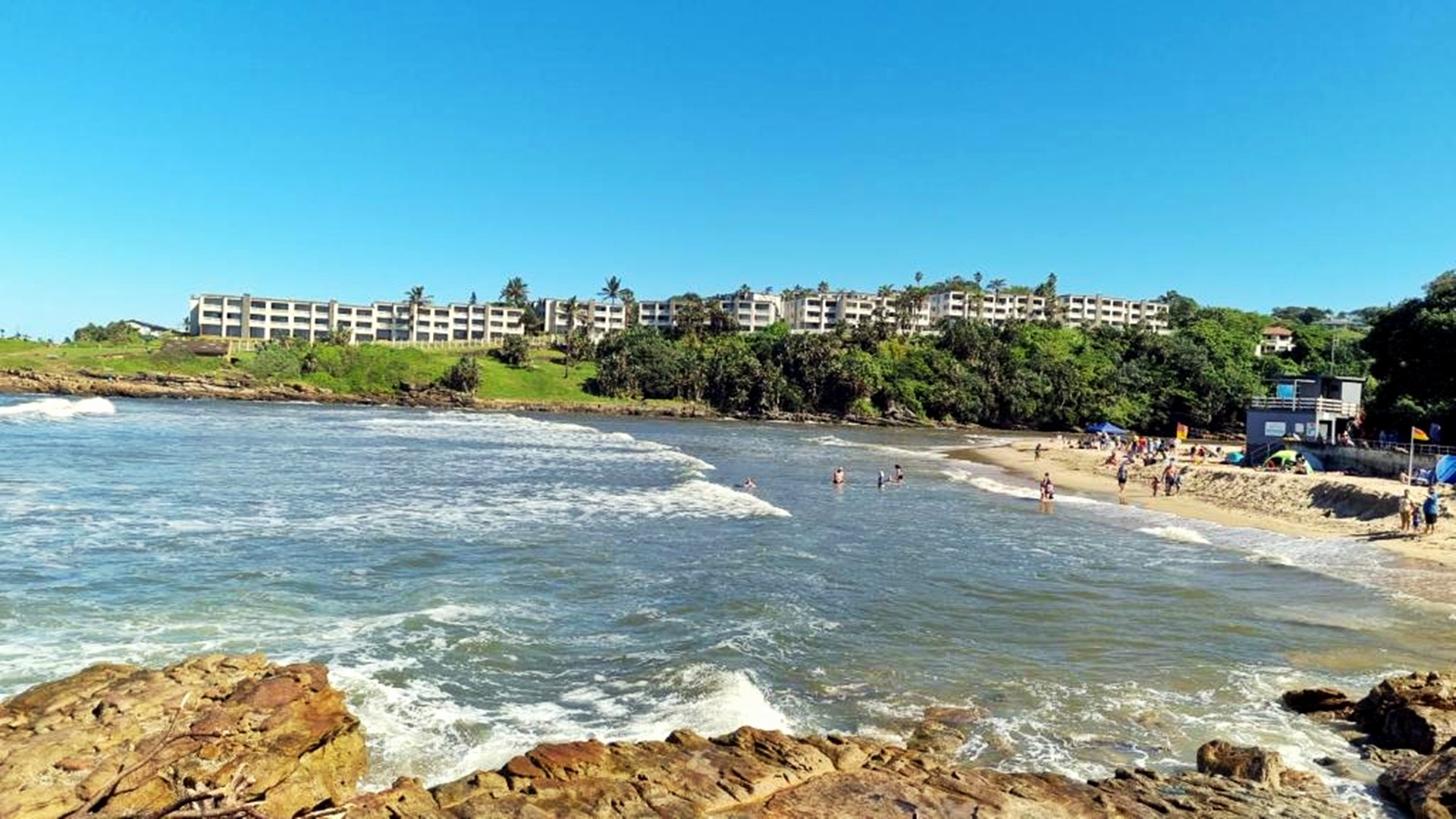 The open plan kitchen and lounge flow onto a private balcony. You overlook established gardens and the swimming pool. The setting feels calm and secure, with the beach only steps away.