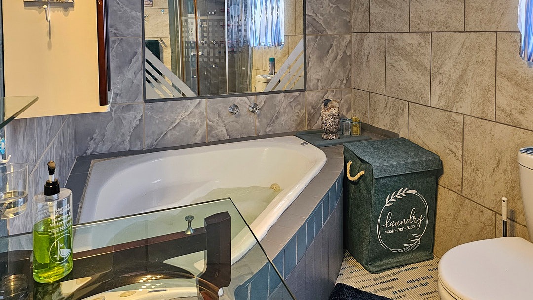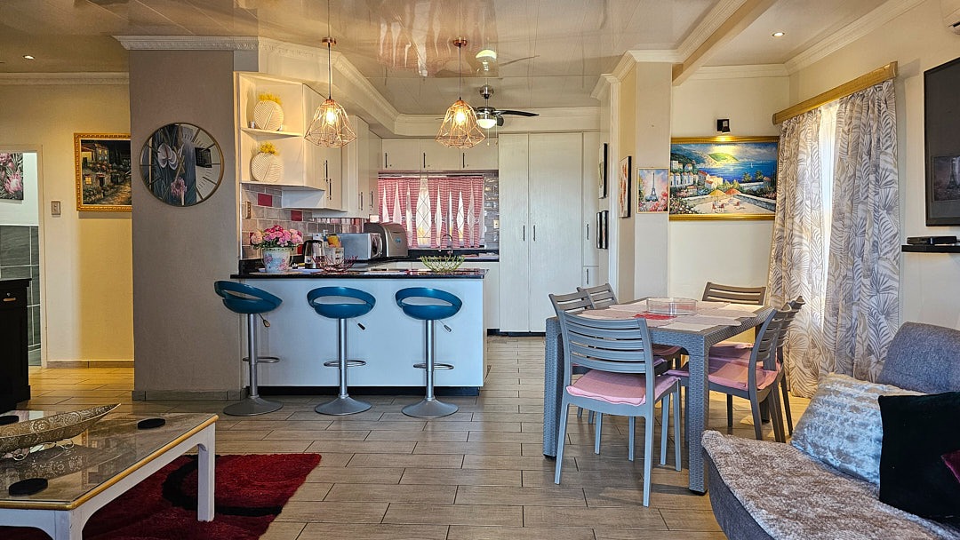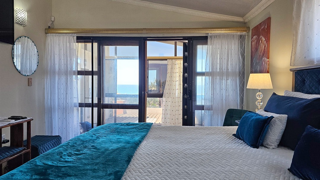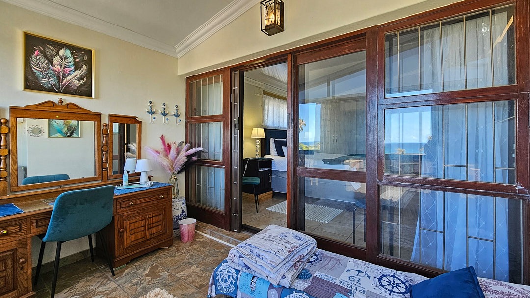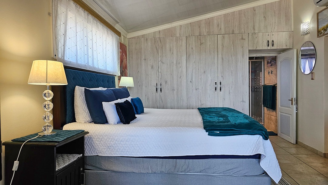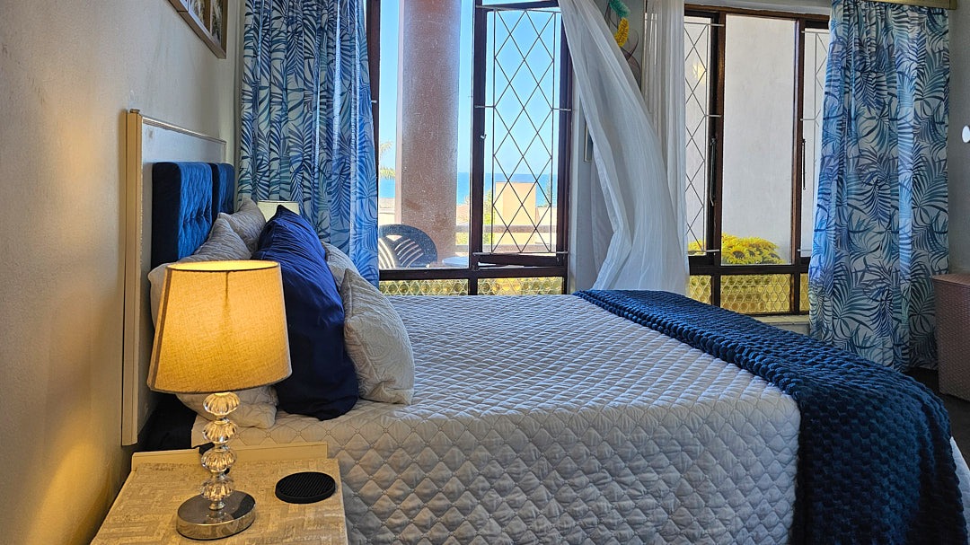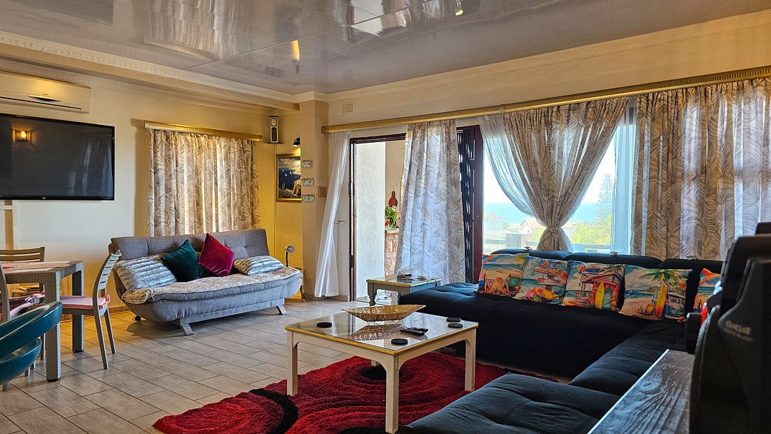 The 3 bedrooms are all spacious with the main bedroom and the 2nd bedroom being spoilt by the ocean views. The main bedroom is en-suite to a beautiful, spacious and modern full bathroom. No luxury has been spared, even a spa-bath! The bedroom has lots of stunning built-in cupboards and opens to a enclosed balcony. This can be ideal if you have a small child or a home office. Work away whilst peeking at the ocean!! The other 2 bedrooms are also super spacious and share another full, modern bathroom. Sheer luxury... The cherry on top is the solar system: no darkness for this house!!! Not with 17 panels! The sale includes all the curtains. This house has one lock-up garage and a double, covered parking behind another gate. Speaking of which, the security in this house is top-notch. An alarm with 8 cameras and a connection to a security company. There is a large back-up water tank as well. Ticking all the boxes....GIVE ME A CALL!