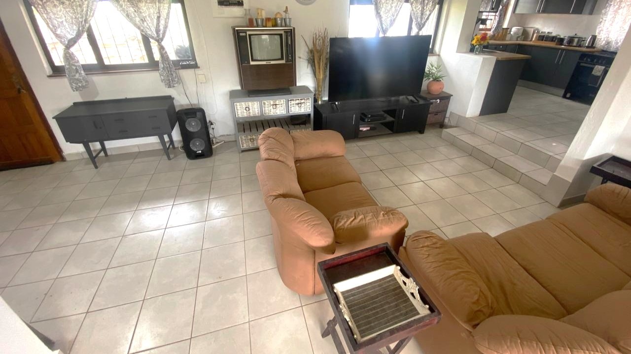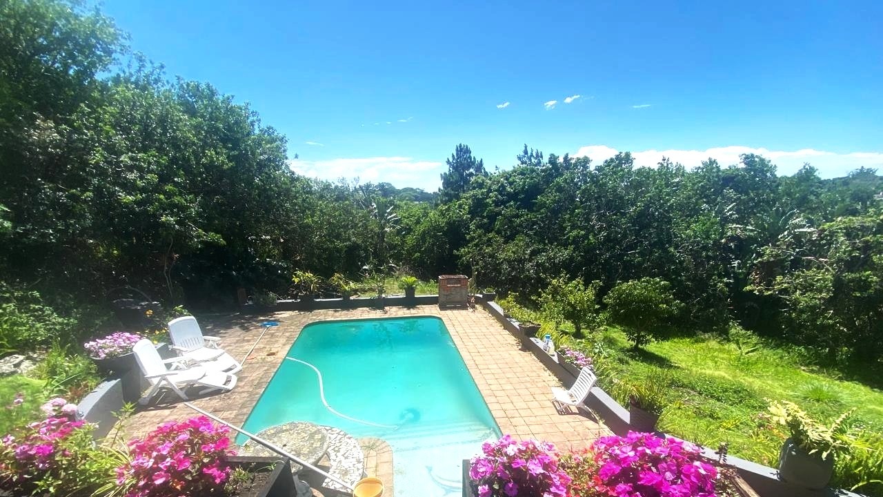 Discover this inviting 4-bedroom, 2-bathroom residence nestled in the desirable coastal suburb of Uvongo. This property offers a blend of comfortable living and outdoor enjoyment, perfect for a family home or a holiday retreat. The interior features an open-plan layout, seamlessly connecting the living spaces, including a dedicated lounge and family TV room, all adorned with practical tiled flooring. Large windows throughout ensure ample natural light and offer pleasant views of the surrounding greenery.