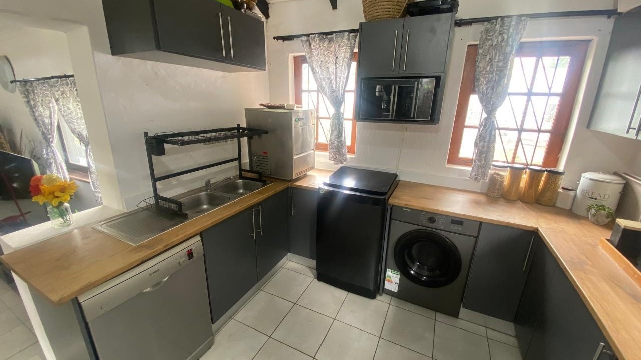 Step outside to a private oasis designed for relaxation and entertainment. The property features a refreshing swimming pool, a spacious wooden deck with flower boxes, and a patio area, ideal for outdoor gatherings. An established garden with mature trees and lush greenery provides a serene backdrop and scenic views, complemented by a dedicated braai area. With two open parking spaces, an access gate, and a fenced perimeter, this pet-friendly home offers both convenience and security.