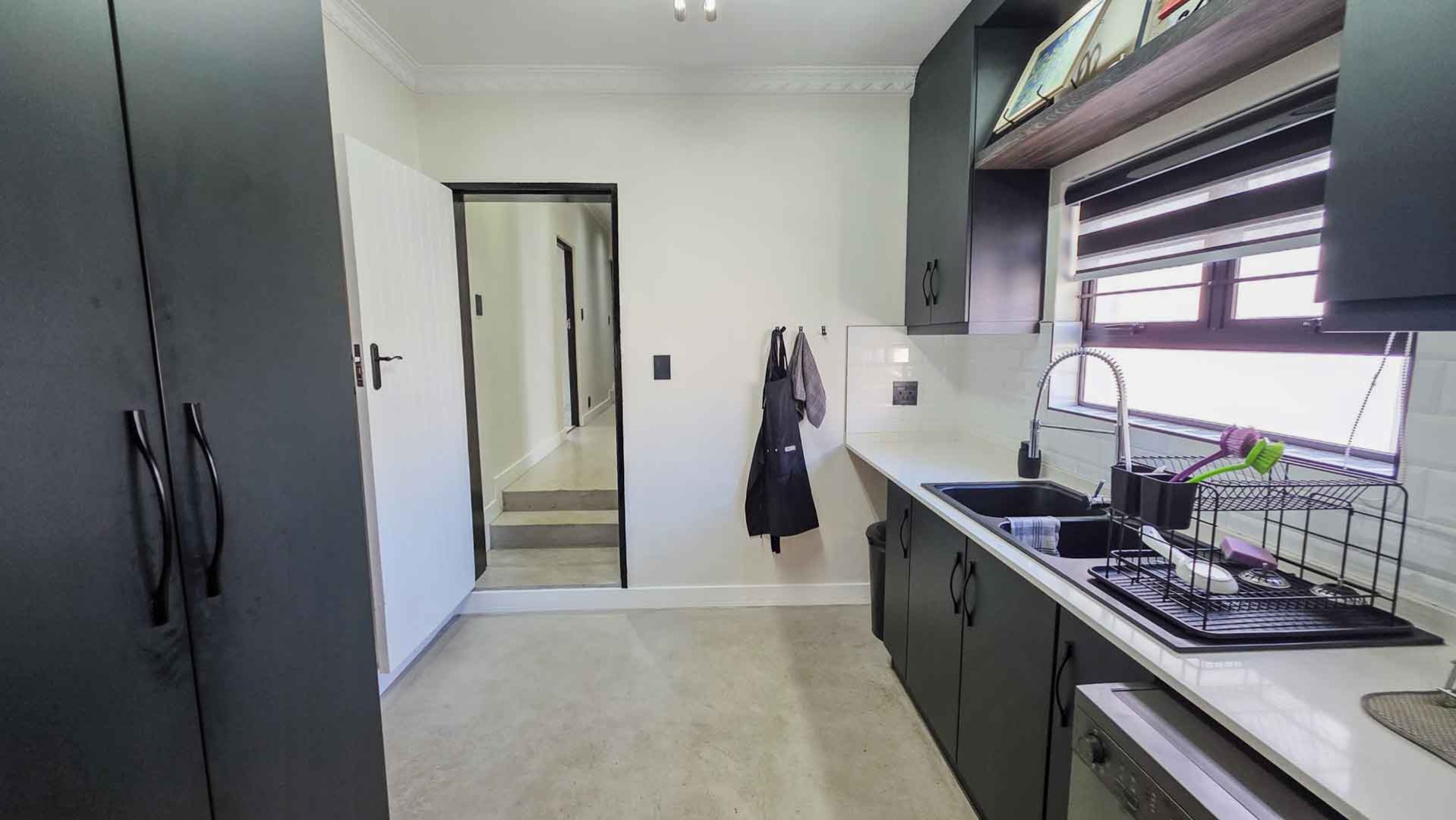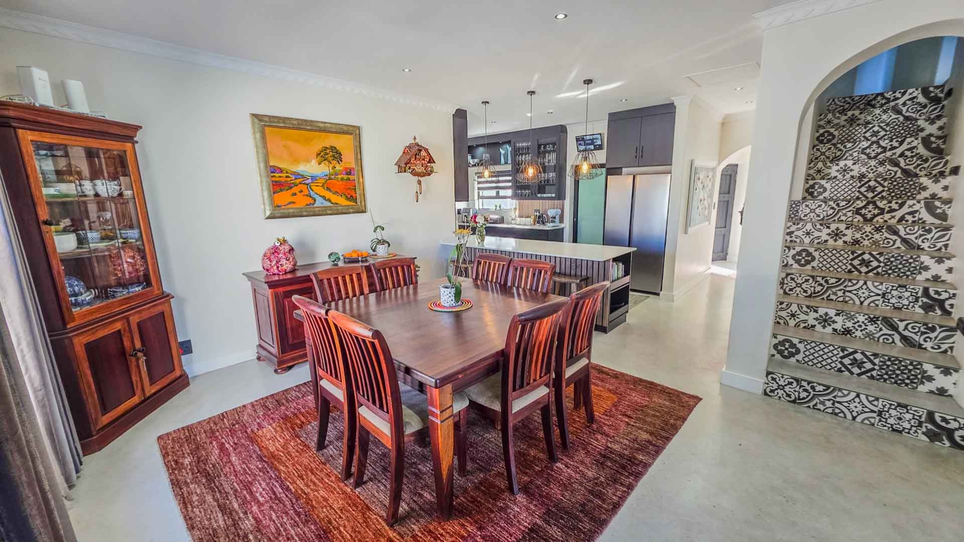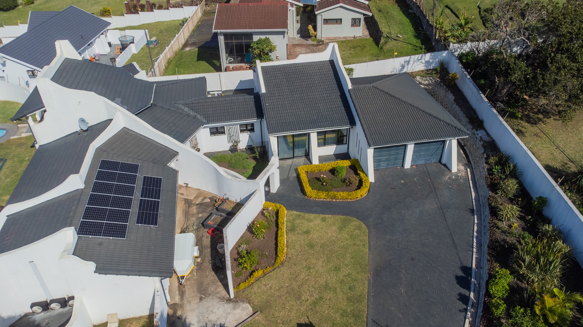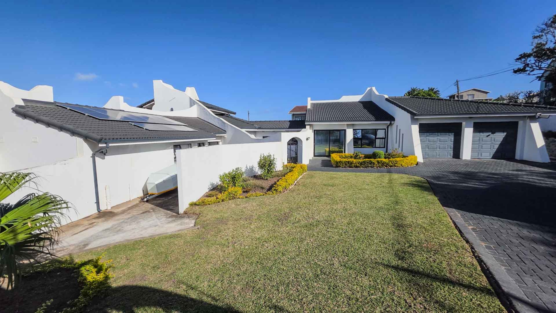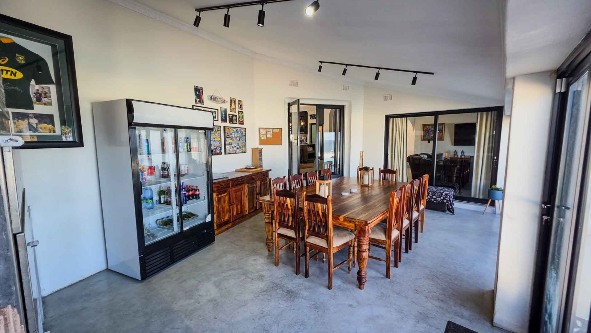 Every bathroom is fully tiled to the ceiling with a combination of bath and shower options to suit all preferences. The living areas are spacious and light-filled – the lounge has big picture windows framing the lush garden and sparkling pool, and the dining room connects to both the kitchen and an enclosed entertainment/sunroom via sliding doors. It’s the kind of space that invites long summer braais and lazy afternoons with friends and family. The kitchen is a chef’s dream – modern, sleek, and functional with a separate scullery and pantry. Upstairs, there’s a fantastic bonus: a games room or bar area (currently used as a gym/home office) – perfect for entertaining, and its own private balcony with amazing sea views. There’s also a separate flatlet that links the kitchen and garages, as well as a dedicated outside laundry space. The home boasts a double, extra-spacious, automated garage. But what truly sets this property apart are the thoughtful eco-friendly features. It’s equipped with a solar power system and a generous 14kW battery backup, as well as a 5,200L water tank – giving you peace of mind and long-term sustainability.