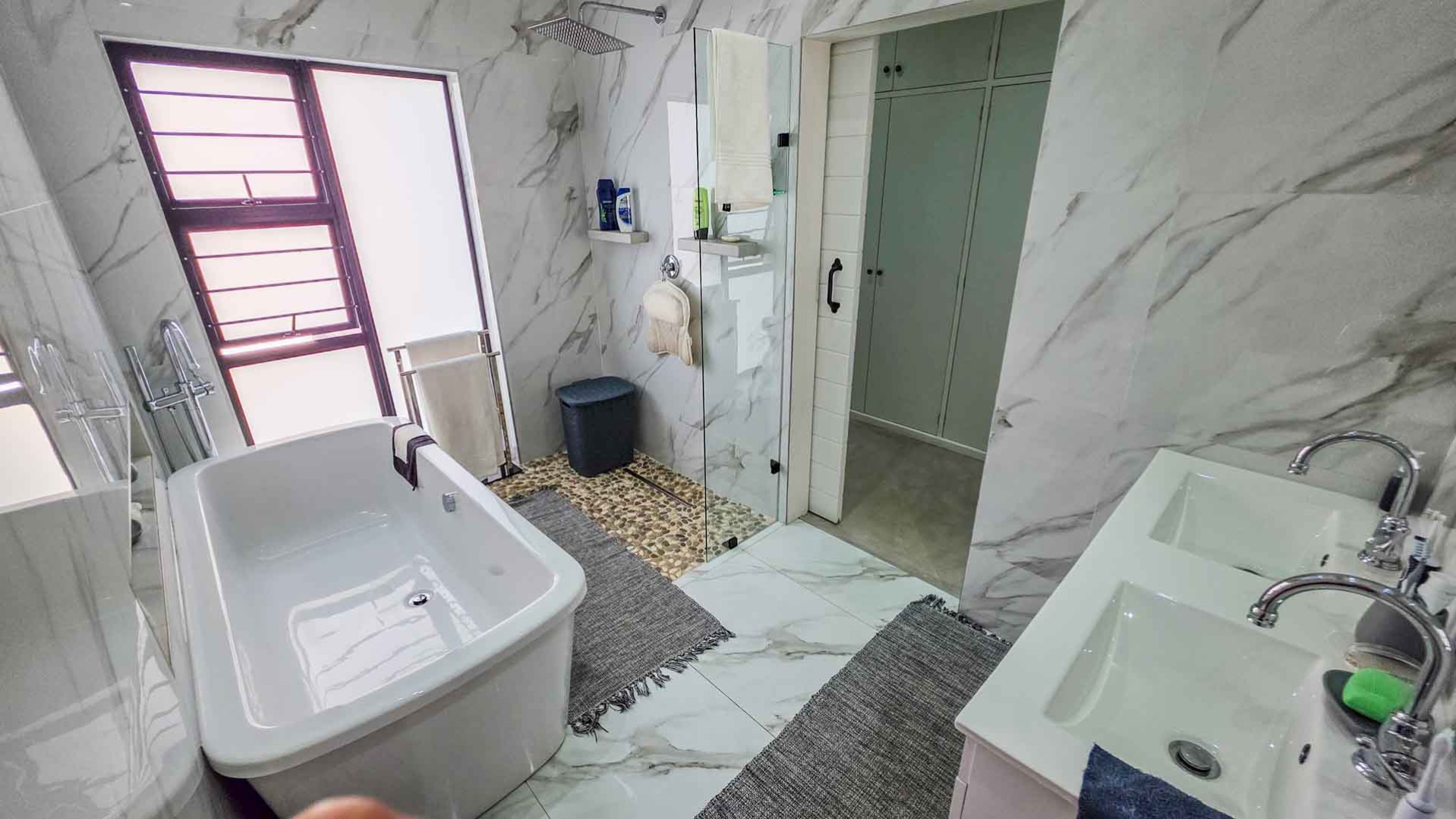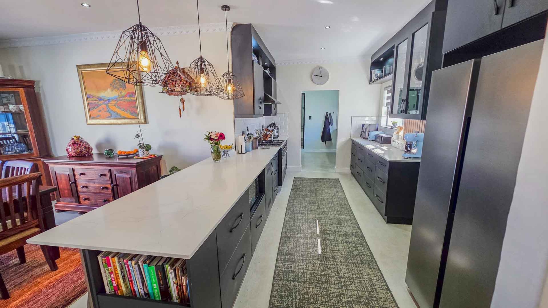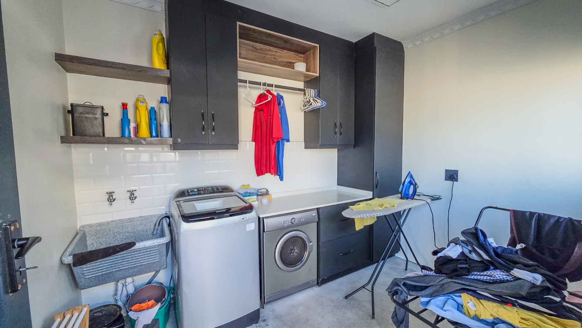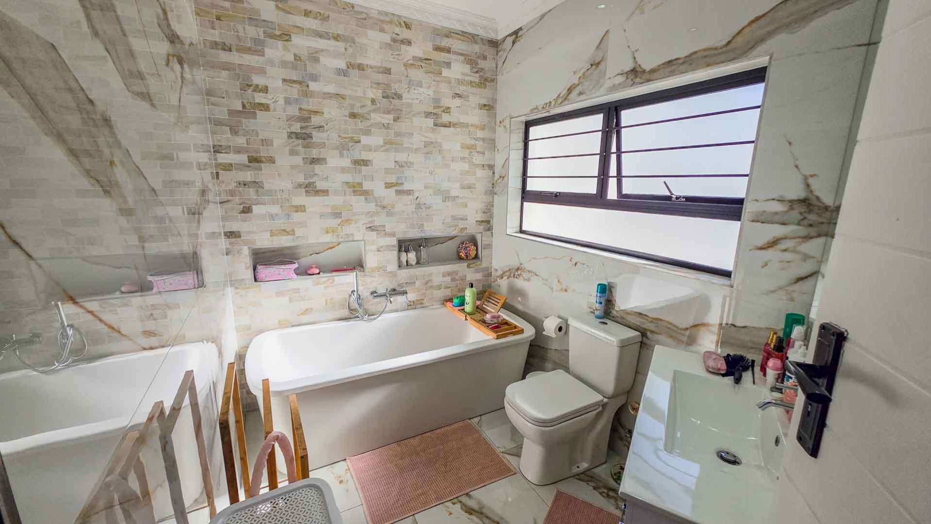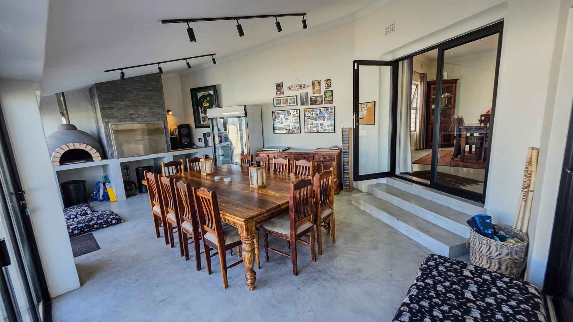 Every bathroom is fully tiled to the ceiling with a combination of bath and shower options to suit all preferences. The living areas are spacious and light-filled – the lounge has big picture windows framing the lush garden and sparkling pool, and the dining room connects to both the kitchen and an enclosed entertainment/sunroom via sliding doors. It’s the kind of space that invites long summer braais and lazy afternoons with friends and family. The kitchen is a chef’s dream – modern, sleek, and functional with a separate scullery and pantry. Upstairs, there’s a fantastic bonus: a games room or bar area (currently used as a gym/home office) – perfect for entertaining, and its own private balcony with amazing sea views. There’s also a separate flatlet that links the kitchen and garages, as well as a dedicated outside laundry space. The home boasts a double, extra-spacious, automated garage. But what truly sets this property apart are the thoughtful eco-friendly features. It’s equipped with a solar power system and a generous 14kW battery backup, as well as a 5,200L water tank – giving you peace of mind and long-term sustainability.