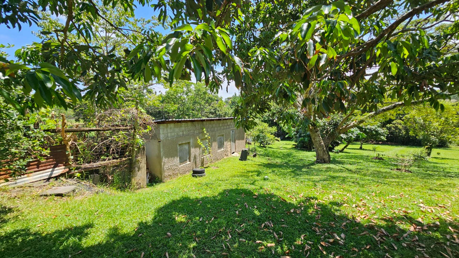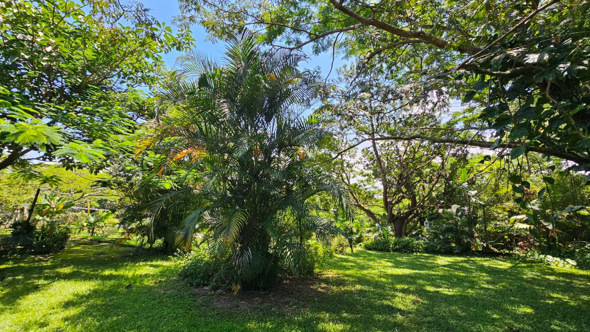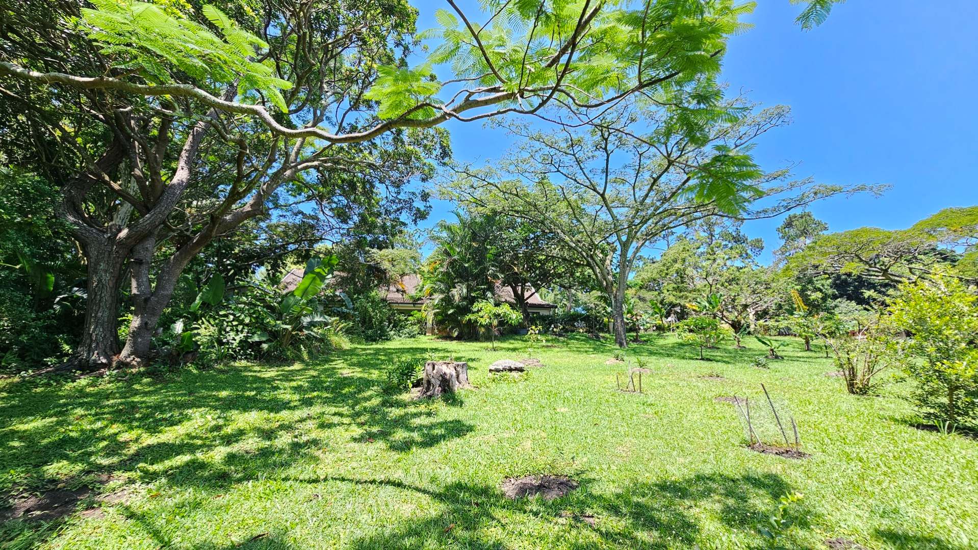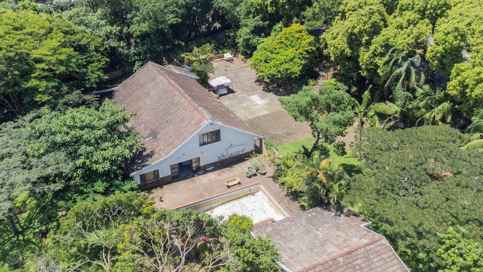 Just beyond the patio to the left of the house is the pool and entertainment area, featuring a large swimming pool (in need of repair)