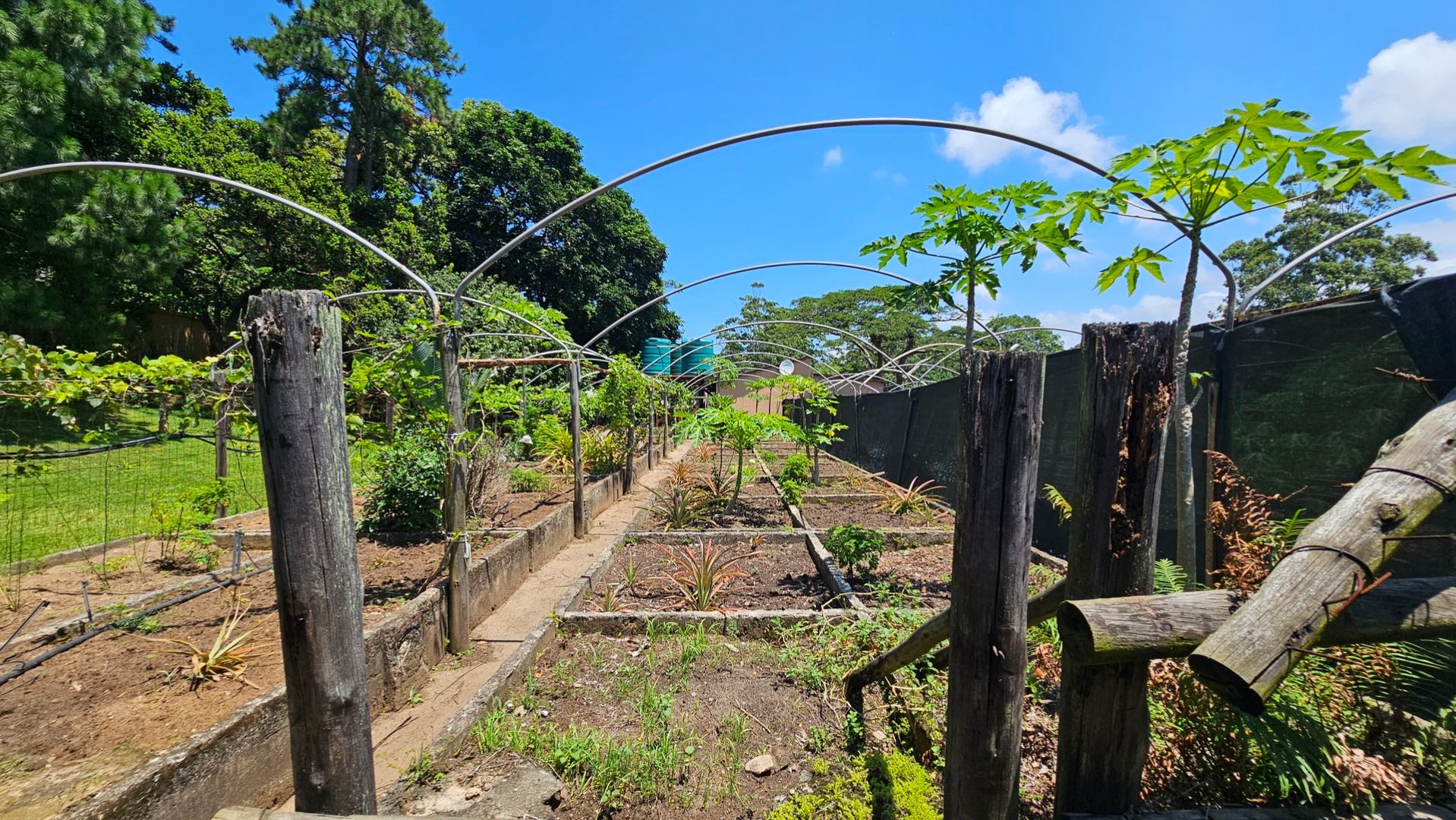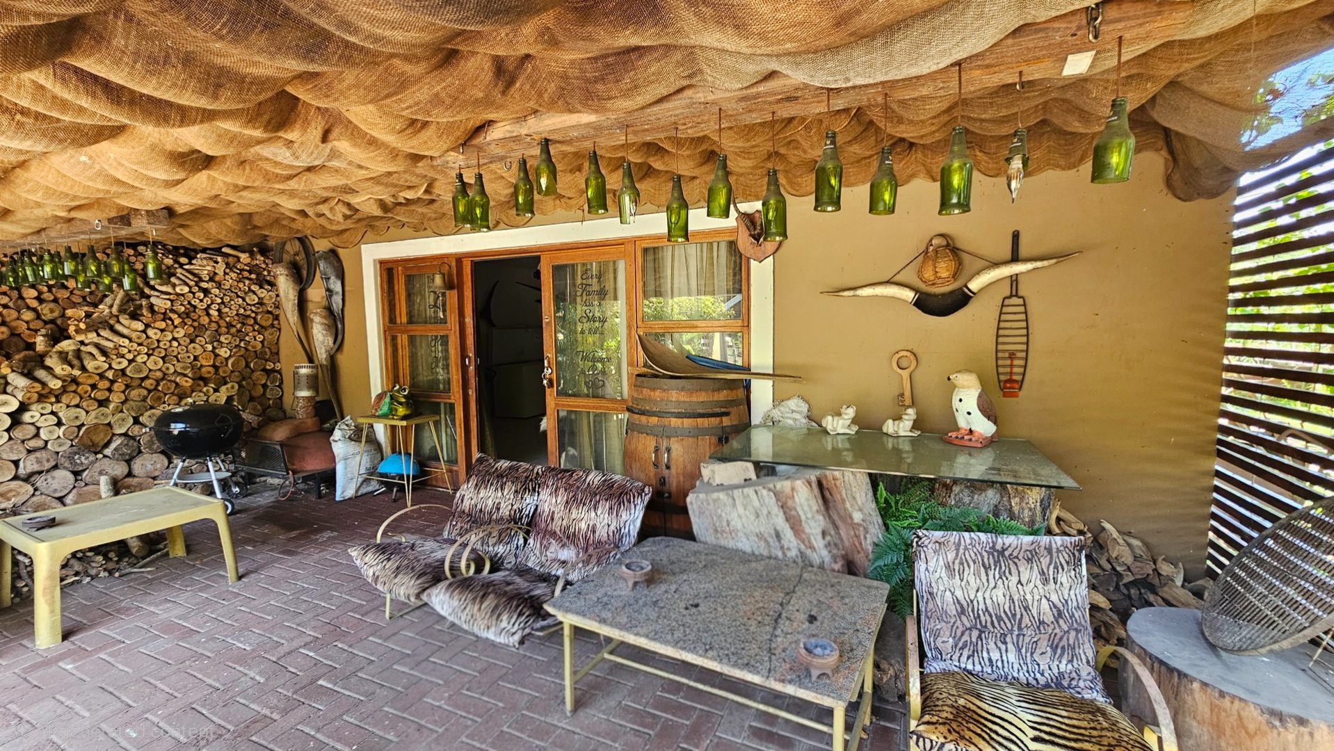 and a spacious enclosed entertainment room, offering excellent potential for hosting family and friends. There is ample parking available, making this home ideal for entertaining on a larger scale. Water security is exceptional, with a borehole, three spring-fed ponds, and four water tanks feeding the entire property.