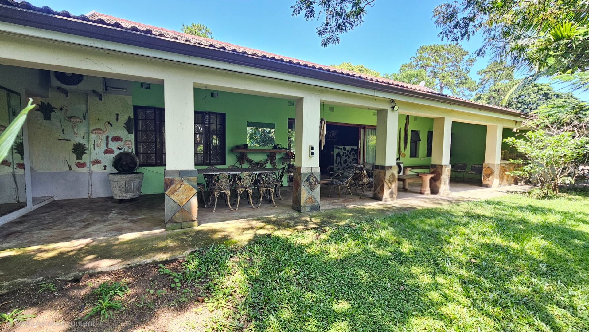 peaceful farm-style atmosphere. Accommodation includes three en-suite bedrooms in the main house, a separate two-bedroom flatlet with en-suite bathrooms, kitchenette, and small lounge.