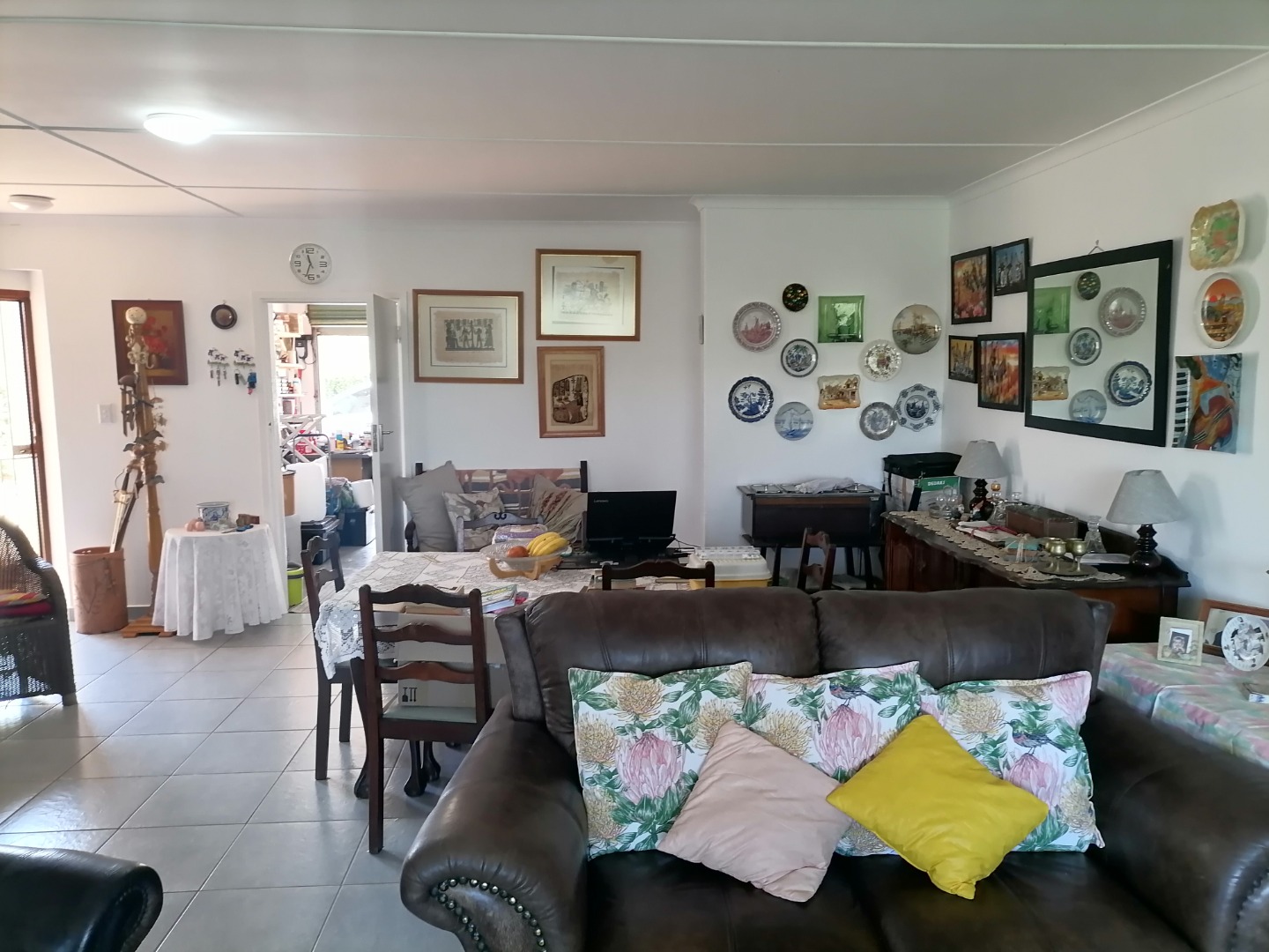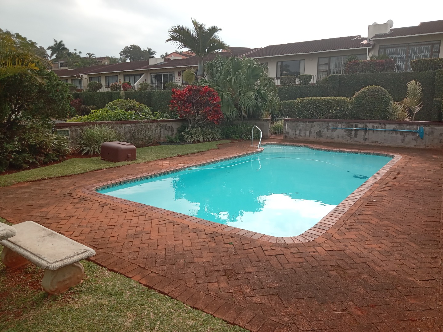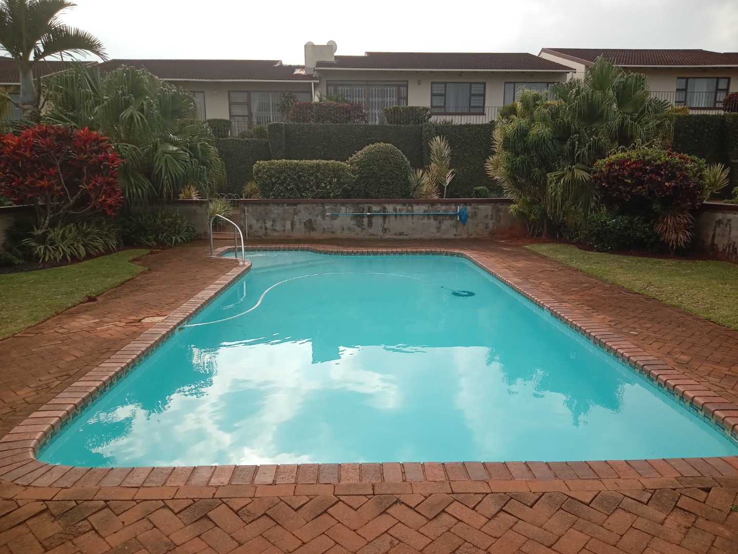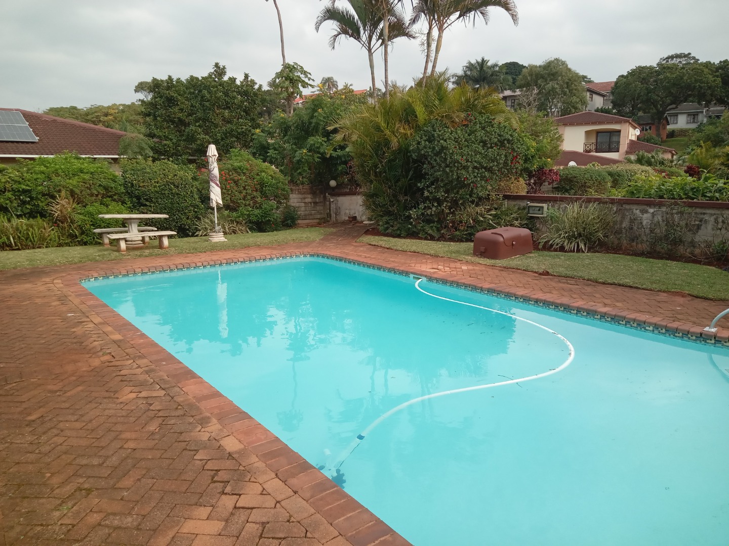 The expansive 6783 sqm erf is a true highlight, featuring a beautifully landscaped garden with vibrant plants, flowering bushes, and tranquil water features that add to the serene ambiance. Enjoy the South African sunshine from the inviting patio, perfect for outdoor relaxation and entertaining. A built-in braai is available for social gatherings, complemented by a refreshing communal pool for leisure. A single automated garage provides secure parking, and the property is pet-friendly.