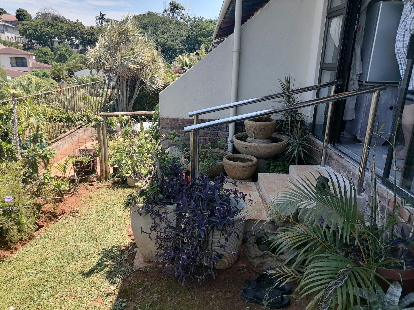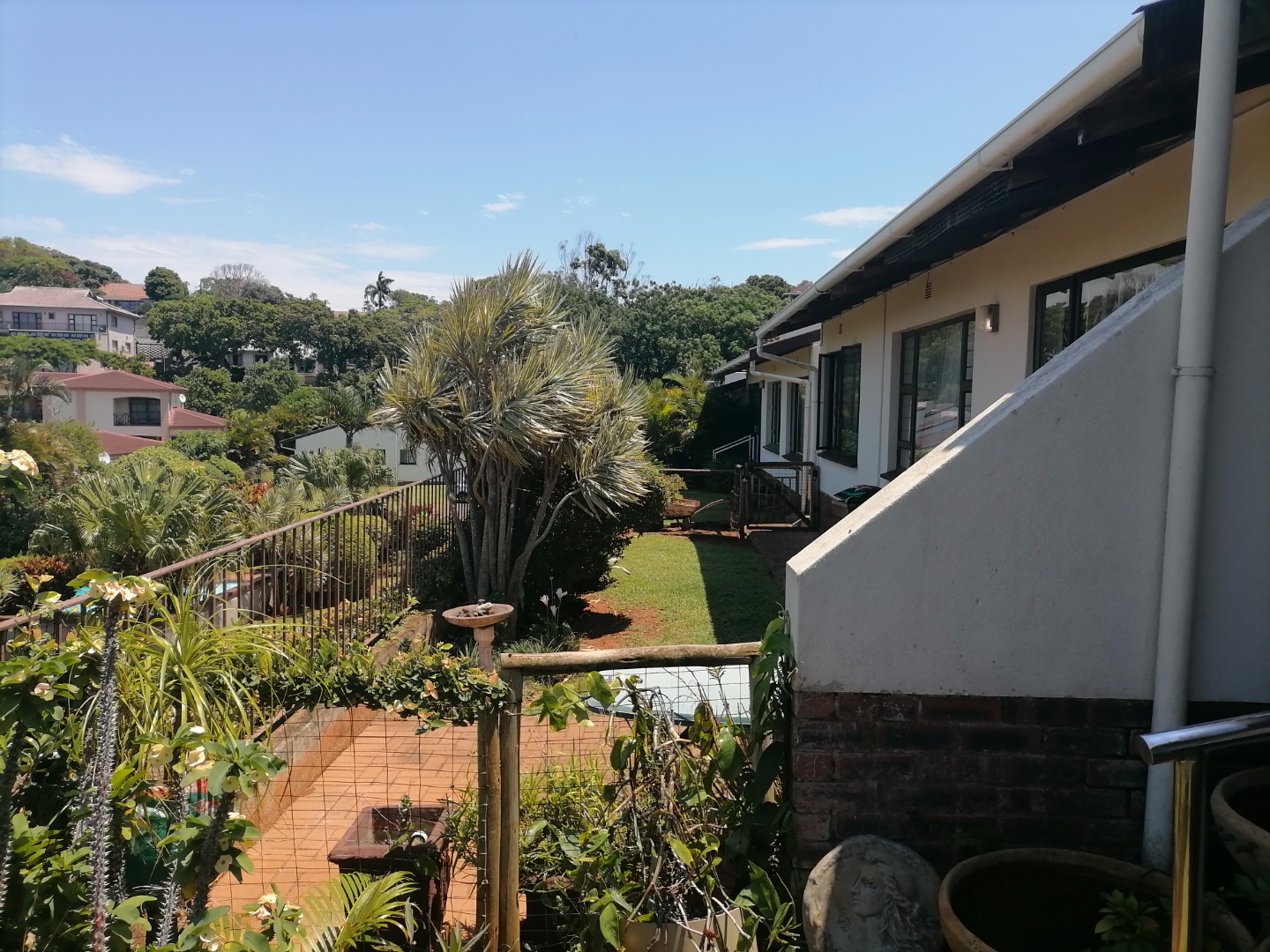 Nestled in the picturesque coastal town of Uvongo, Margate, this charming residential property offers an exceptional opportunity for seaside living. Boasting an elevated position, the home presents a welcoming kerb appeal with its lush, well-maintained tropical garden, diverse plants, and a paved driveway. Distant ocean views are visible from various points, enhancing the tranquil atmosphere and connecting the property to its coastal beach setting.