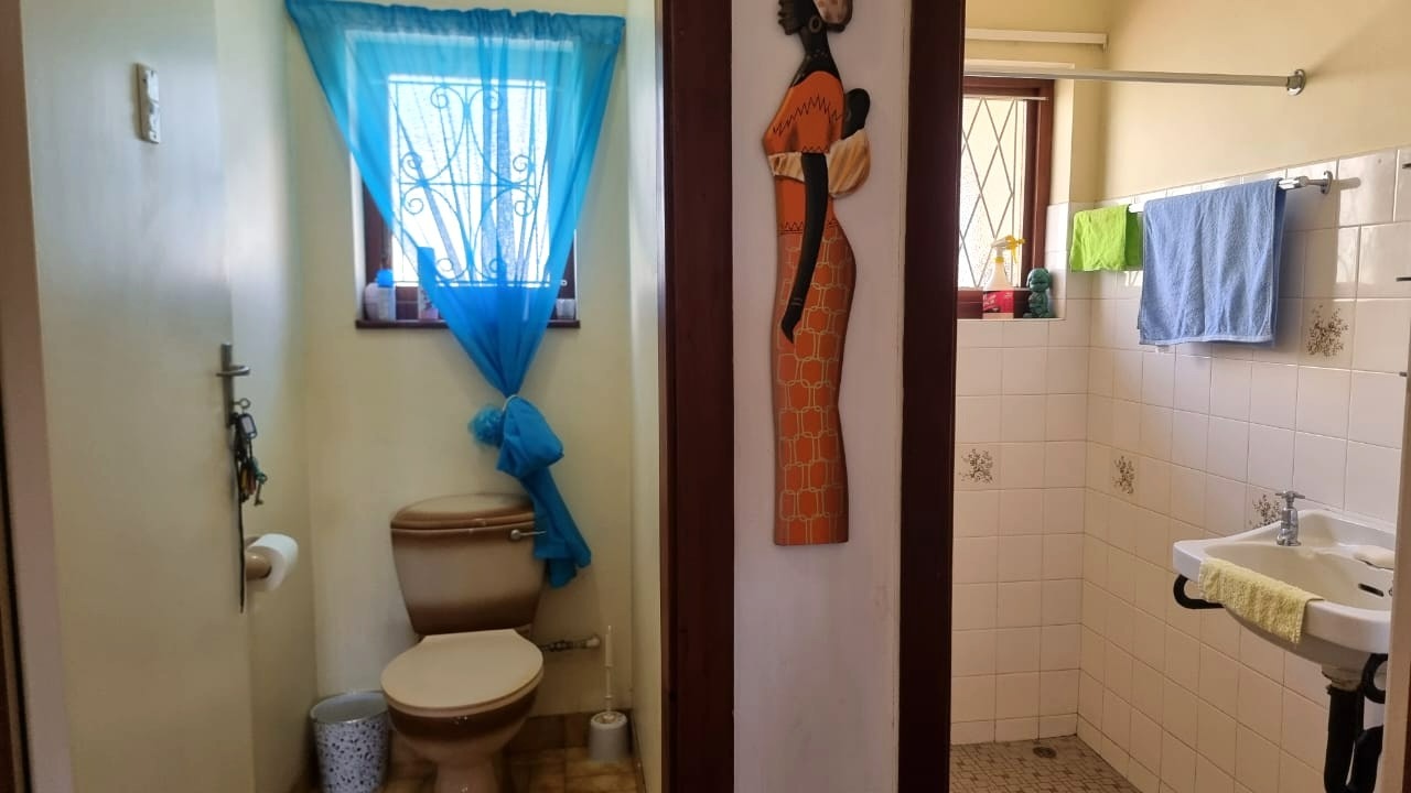 The home offers three comfortable bedrooms and two bathrooms, alongside a convenient guest toilet. Each space benefits from natural light, providing a cozy ambiance. Wooden door frames and flooring add character throughout. Outside, the generous 1119 sqm erf includes a garden and an outdoor area, ideal to put your braai. Complemented by two dedicated parking bays.Security features include burglar bars, a security gate, and an access gate, ensuring peace of mind. Located in the desirable coastal suburb of Uvongo, this property offers direct access to the vibrant beach lifestyle and all the amenities this popular South African destination has to offer.