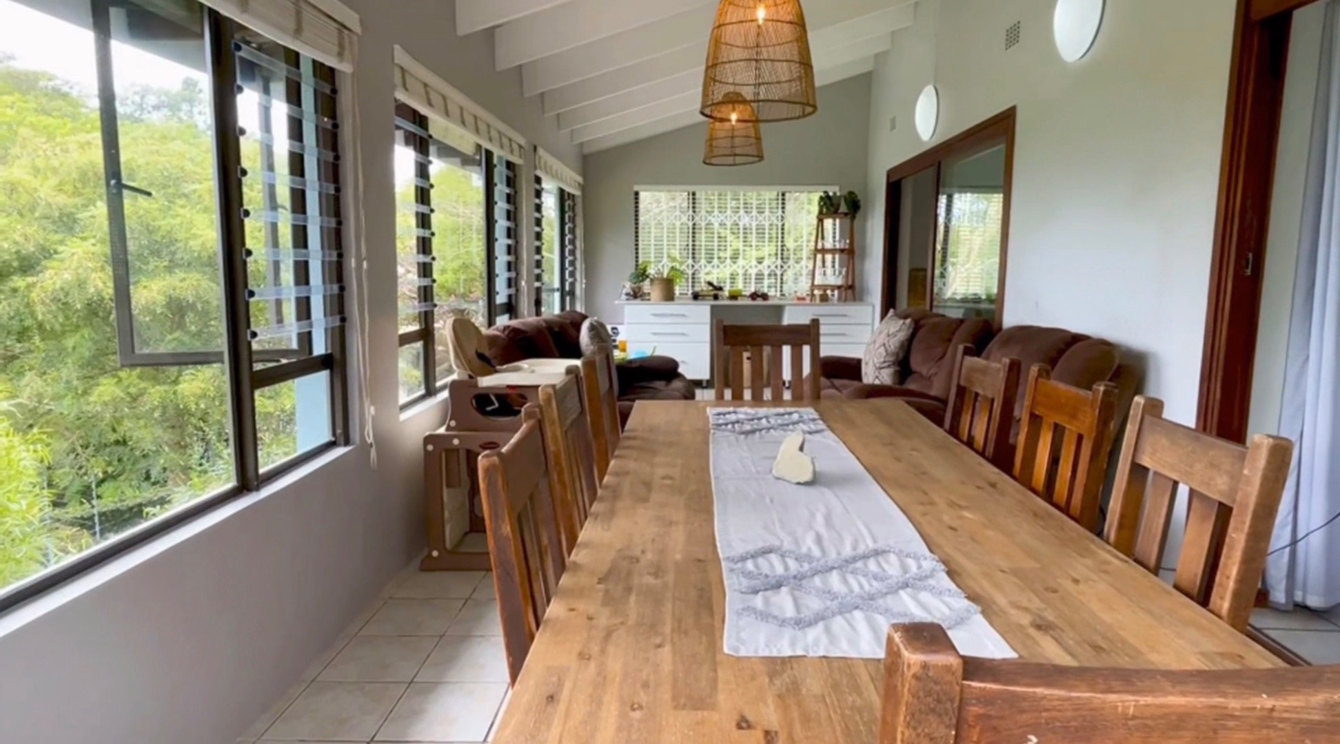The residence comprises three comfortable bedrooms and two well-appointed bathrooms, providing ample space for family living. This home can also be used as one bedroom, one bathroom home upstairs and a two bedroom, one bathroom flatlet at the bottom.