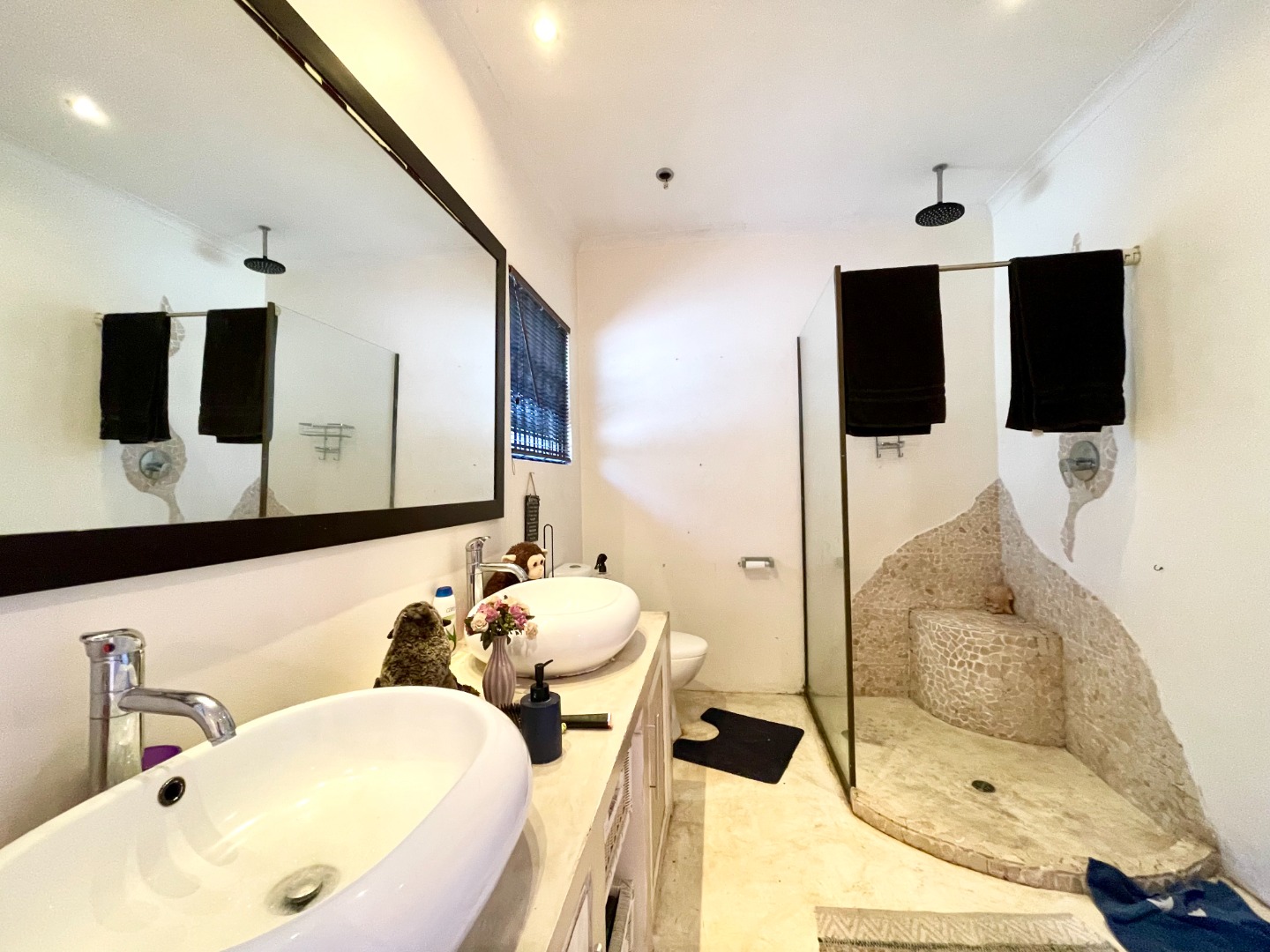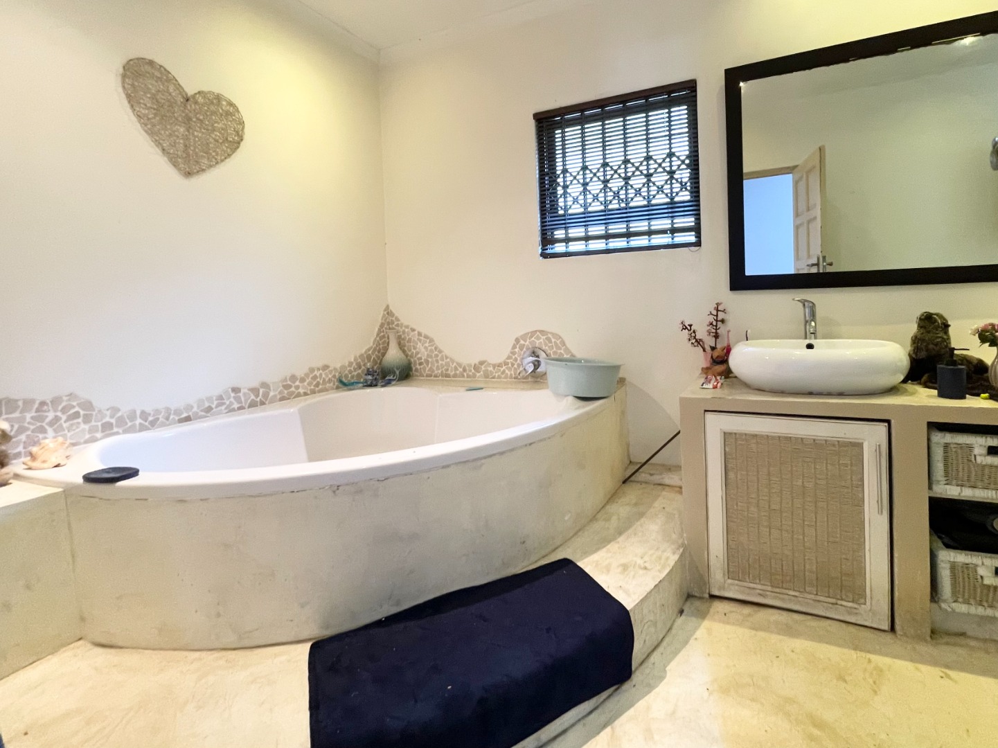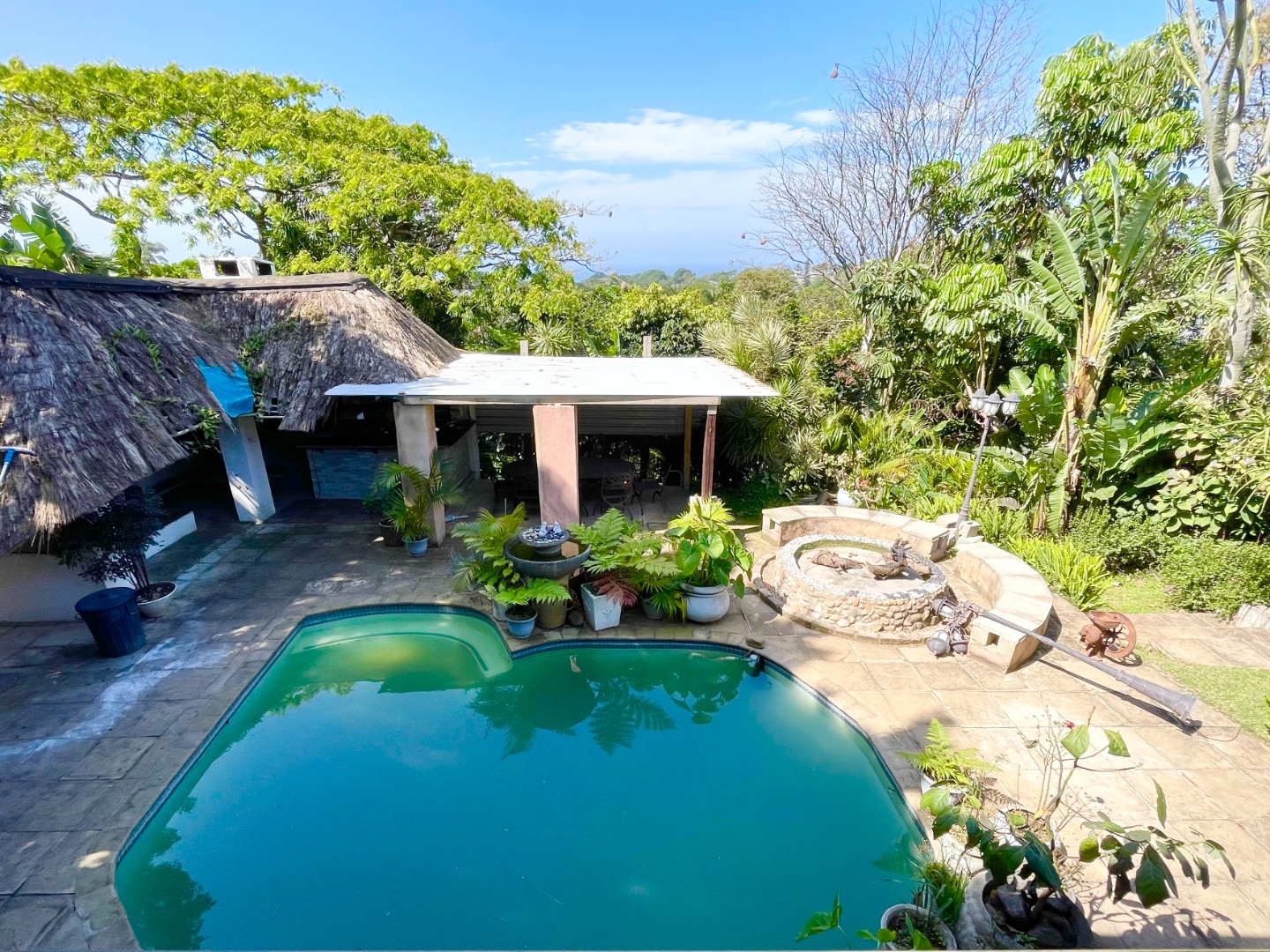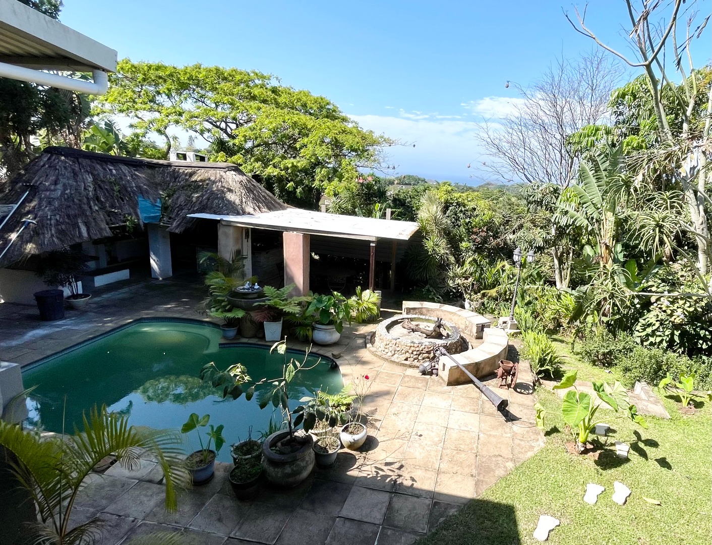 Nestled in the lovely coastal town of Margate, this Uvongo gem offers a fantastic lifestyle. You'll love the relaxed vibe and beautiful surroundings, perfect for enjoying the South African sunshine and those stunning distant ocean views. Step inside this unique 4-bedroom, 2-bathroom home where comfort meets creativity. You'll find a spacious lounge, a dedicated dining room, and even a family TV room, giving everyone space to relax. The kitchen is ready for your culinary adventures, complete with a pantry and a separate laundry area. The bathrooms are truly one-of-a-kind, featuring artistic designs, large custom-built tubs, and cool concrete-look finishes, including a double vanity in one. The open-plan layout adds to the spacious feel, making it easy to move around and enjoy. Outside is where the magic truly happens! Imagine spending your days by the private swimming pool, soaking up the sun, or entertaining friends under the lapa with its distinctive thatch roof. There's a built-in braai and a built-in bar, perfect for those South African get-togethers. The lush, terraced tropical garden is a real oasis, complete with a charming water feature and plenty of space to unwind. Plus, you get to enjoy those lovely distant ocean views from various spots. The property also includes a balcony, patio, staff quarters, domestic rooms, and even a flatlet, offering loads of flexibility. Your peace of mind is sorted with an alarm system, electric fencing, and burglar bars, all within a totally walled and fenced property. Plus, it's wheelchair friendly, making it accessible for everyone. Water tanks are also on site, adding a touch of sustainability. This home boasts great kerb appeal with its modern architectural design and lush tropical landscaping, creating a welcoming first impression. Key Features: * 4 Bedrooms, 2 Bathrooms (1 ensuite) * Private Swimming Pool & Lapa * Lush Tropical Garden with Water Feature * Distant Ocean Views * Balcony & Patio * Built-in Braai & Bar * Staff Quarters & Flatlet * Alarm, Electric Fencing & Burglar Bars * Wheelchair Friendly