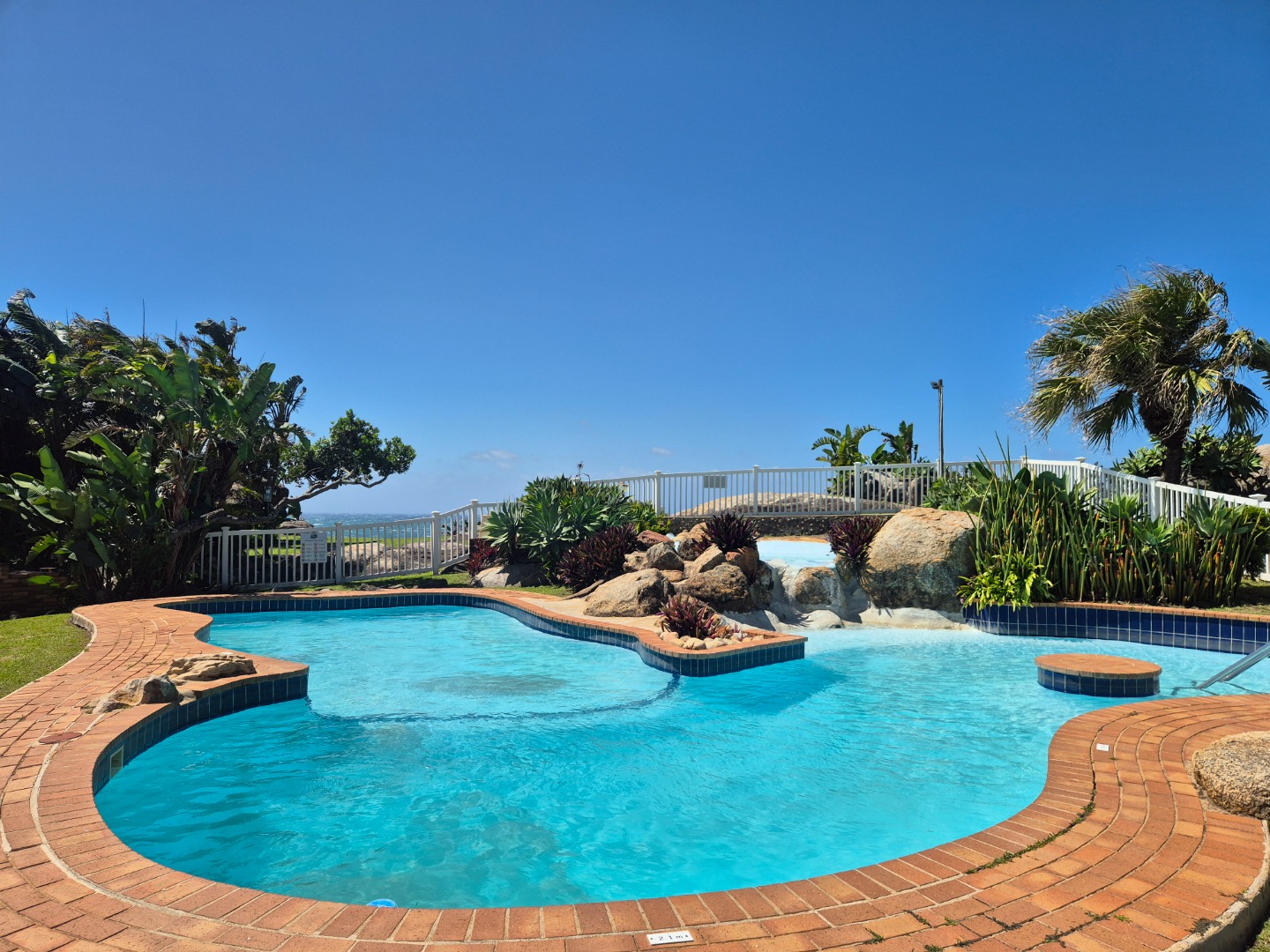 - Large private balcony with sea views across the Glenmore Beach strip and distinctive boulder rock formations