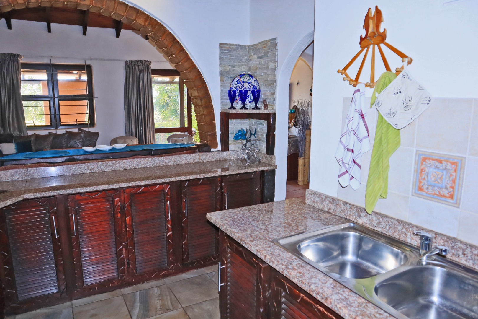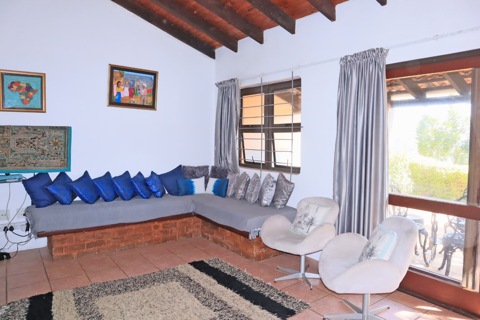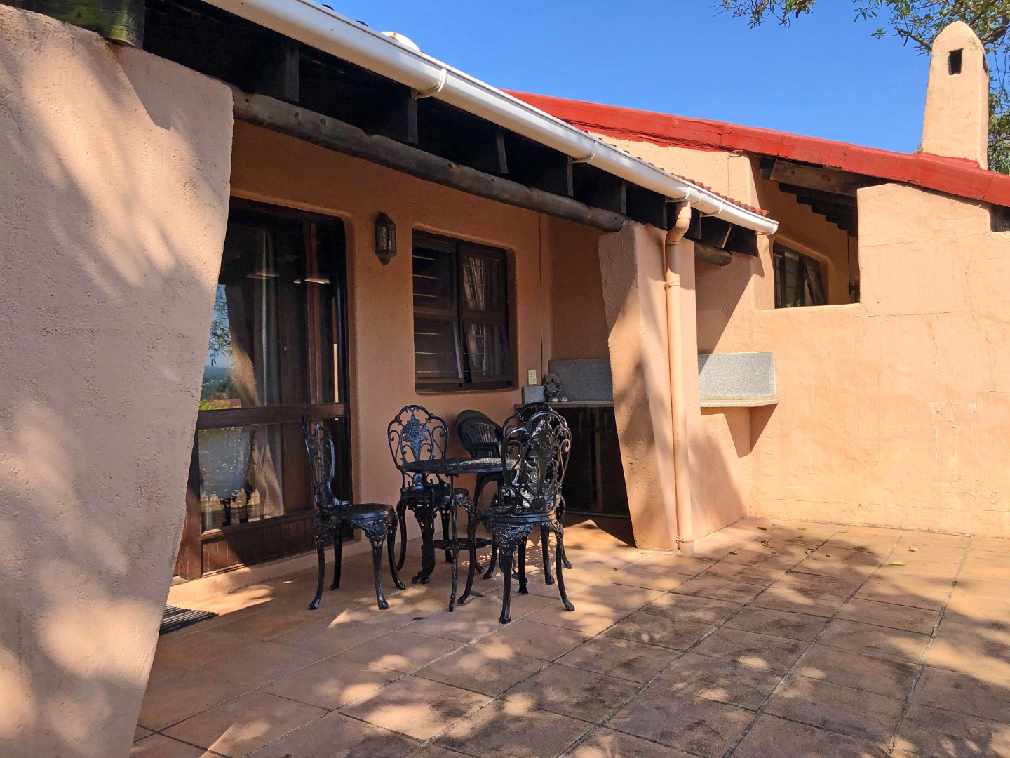 Discover a unique coastal retreat nestled within a secure complex in Glenmore, Port Edward. This charming 2-bedroom, 1-bathroom residence offers a comfortable 75 sqm of living space on an expansive 55922 sqm erf, providing a sense of country living with suburban convenience. The interior boasts a distinctive character, featuring a kitchen and bar area with durable granite countertops, rustic carved wooden cabinetry, and eye-catching brick archways that create an open flow to the lounge. The kitchen is well-equipped with a double sink, hob, and integrated washing machine, while the lounge impresses with exposed wooden ceiling beams, built-in L-shaped seating, and ample natural light. The property comes fully furnished, ready for immediate enjoyment. The two bedrooms are designed for comfort, each benefiting from natural light and the rustic charm of exposed wooden beams, complemented by security bars for peace of mind. The single bathroom is functionally appointed. Step outside to a private garden and patio area, perfect for relaxation or entertaining, all while enjoying the panoramic views of distant hills and orchards. Residents also benefit from access to a communal pool and clubhouse, enhancing the lifestyle offerings. With one dedicated parking space and a paved driveway, convenience is assured. The property is secured within a security complex and estate, featuring a security post and fencing, and includes water tanks for sustainability. Fibre connectivity is available, ensuring modern communication needs are met. Glenmore, situated in Port Edward, South Africa, offers an appealing blend of coastal beach access, aquatic activities, and marina proximity, making it ideal for those seeking a tranquil yet engaging lifestyle. This property presents an excellent opportunity to embrace secure, scenic living. Key Features: * 2 Bedrooms, 1 Bathroom * 75 sqm Floor Size on 55922 sqm Erf * Unique Rustic Kitchen with Granite Countertops * Lounge with Exposed Wooden Beams * Private Garden and Patio * Access to Communal Pool and Clubhouse * Panoramic Views * Fibre Connectivity * Secure Complex Living * Coastal Beach and Marina Proximity