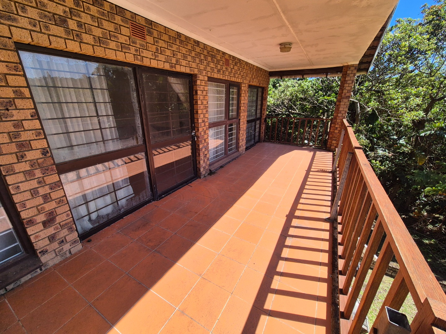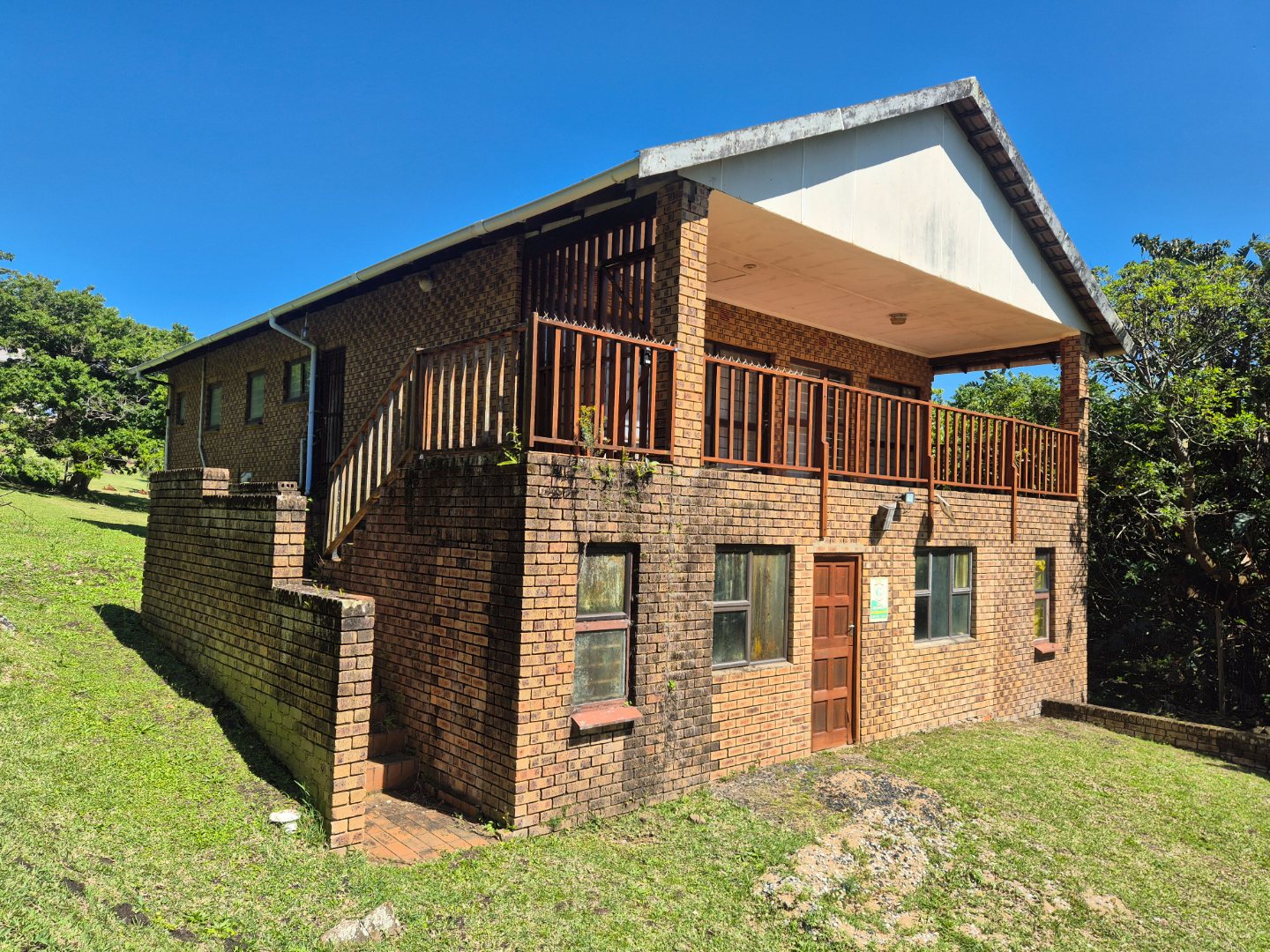 Built from low-maintenance face brick, the home features an open-plan living area that flows onto a sunny covered balcony overlooking the lush coastal forest. The compact kitchen provides the perfect base to expand and modernize to your taste.