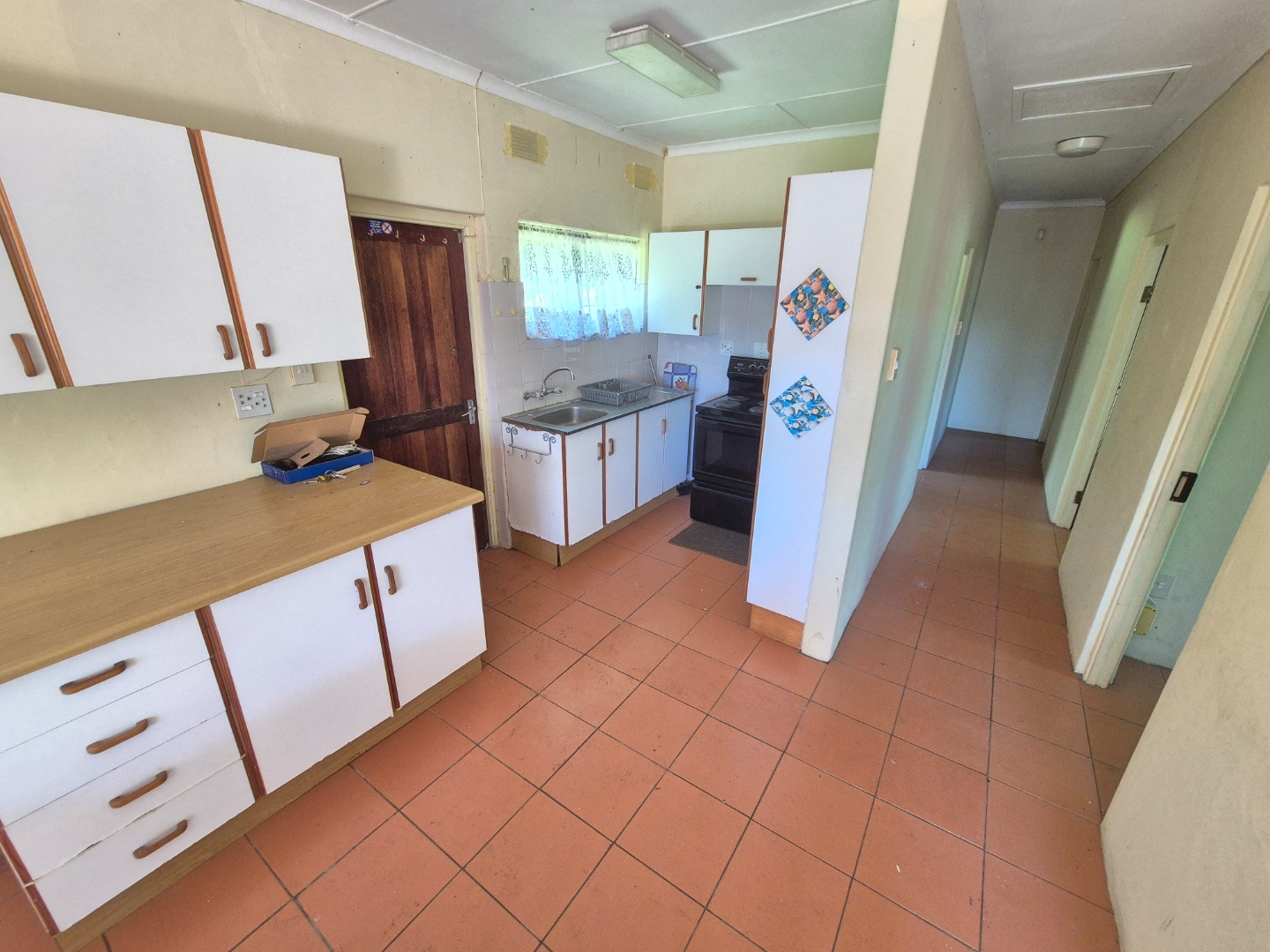 This solid 3-bedroom, 2-bathroom home is brimming with opportunity for the buyer with vision and creativity. The main bedroom features an en-suite bathroom, and all bedrooms include built-in cupboards.