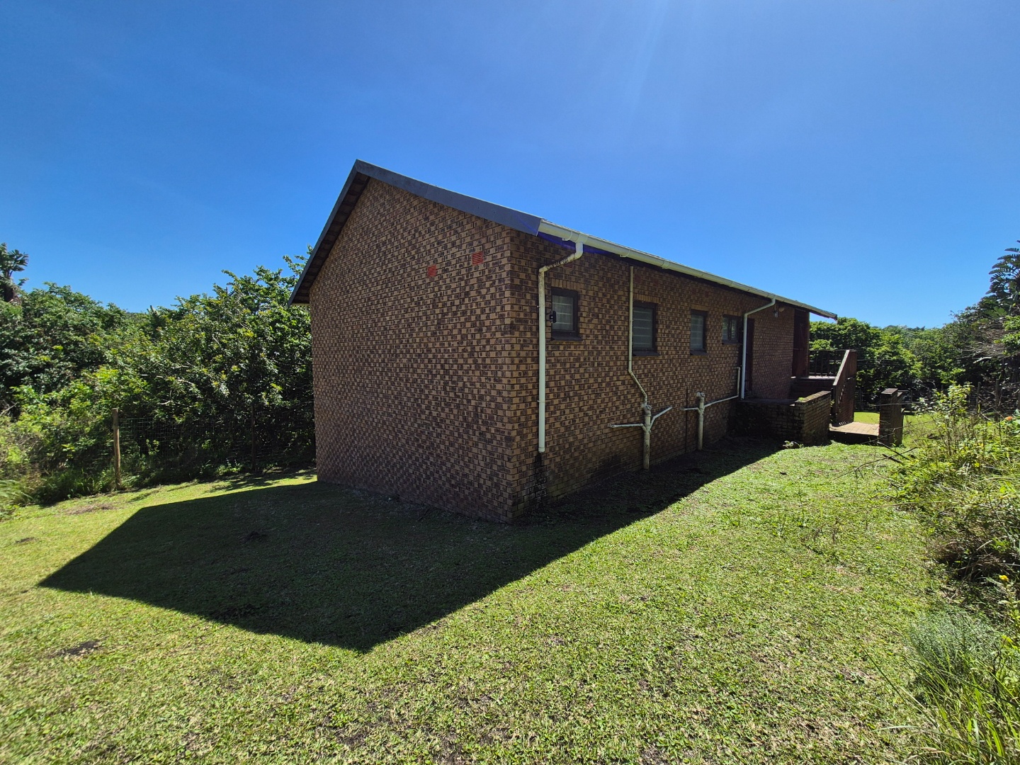 Built from low-maintenance face brick, the home features an open-plan living area that flows onto a sunny covered balcony overlooking the lush coastal forest. The compact kitchen provides the perfect base to expand and modernize to your taste.