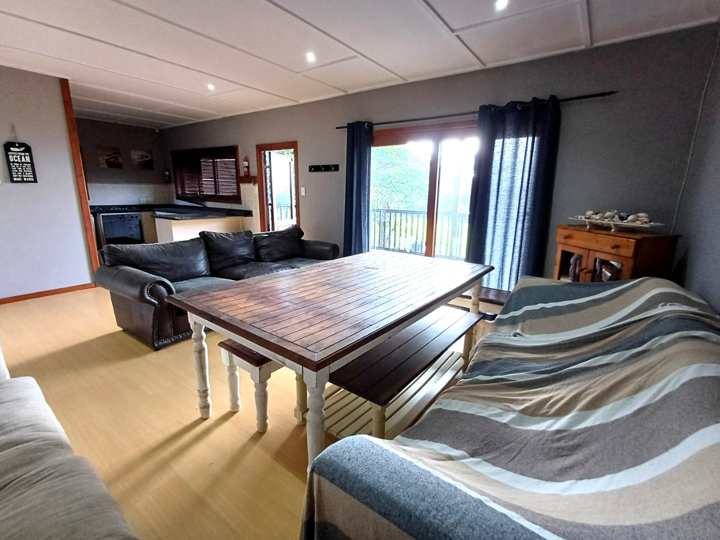 A bonus is the two-bedroom, one-bathroom separate flatlet with open plan living area and a private entrance. Ideal for guests, extended family, or rental income. Additionally, this property has an alarm system with indoor and outdoor beams and is linked to a 24-hour armed response company, and 2 x 5 000 litre back up water tanks which are fitted to the mains of the home. Situated close to the ocean, this home allows you to enjoy beachside living every day. Whether you’re relaxing on the deck, hosting friends, or strolling to the shore, this property delivers a lifestyle that’s hard to match. Don’t miss your chance to own a piece of paradise! Call me to arrange your viewing.