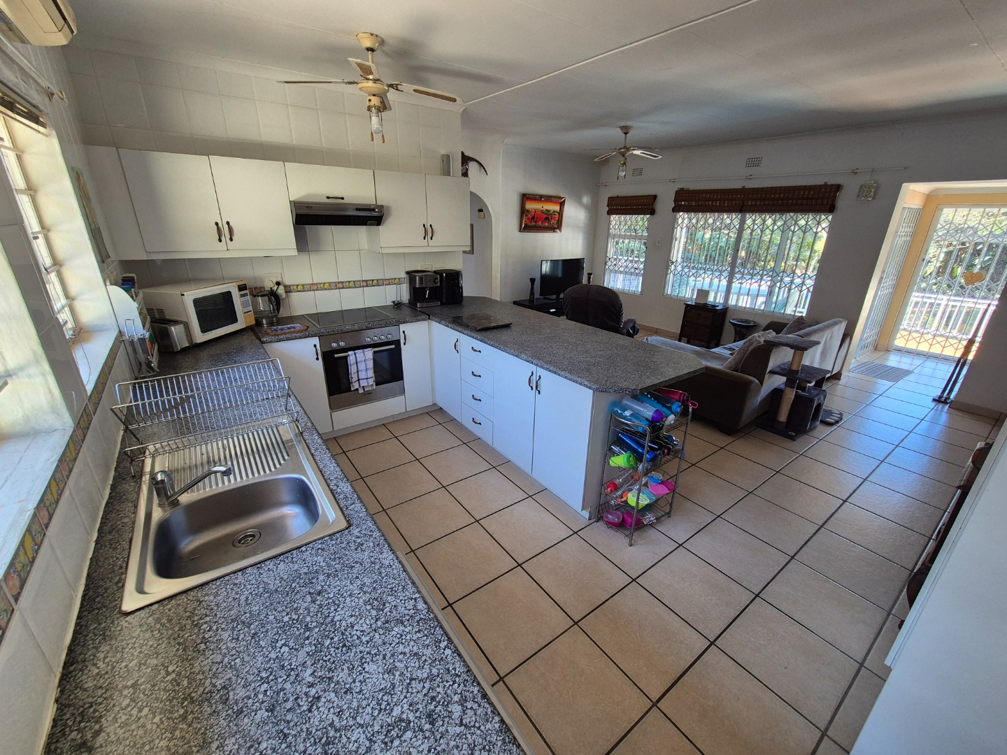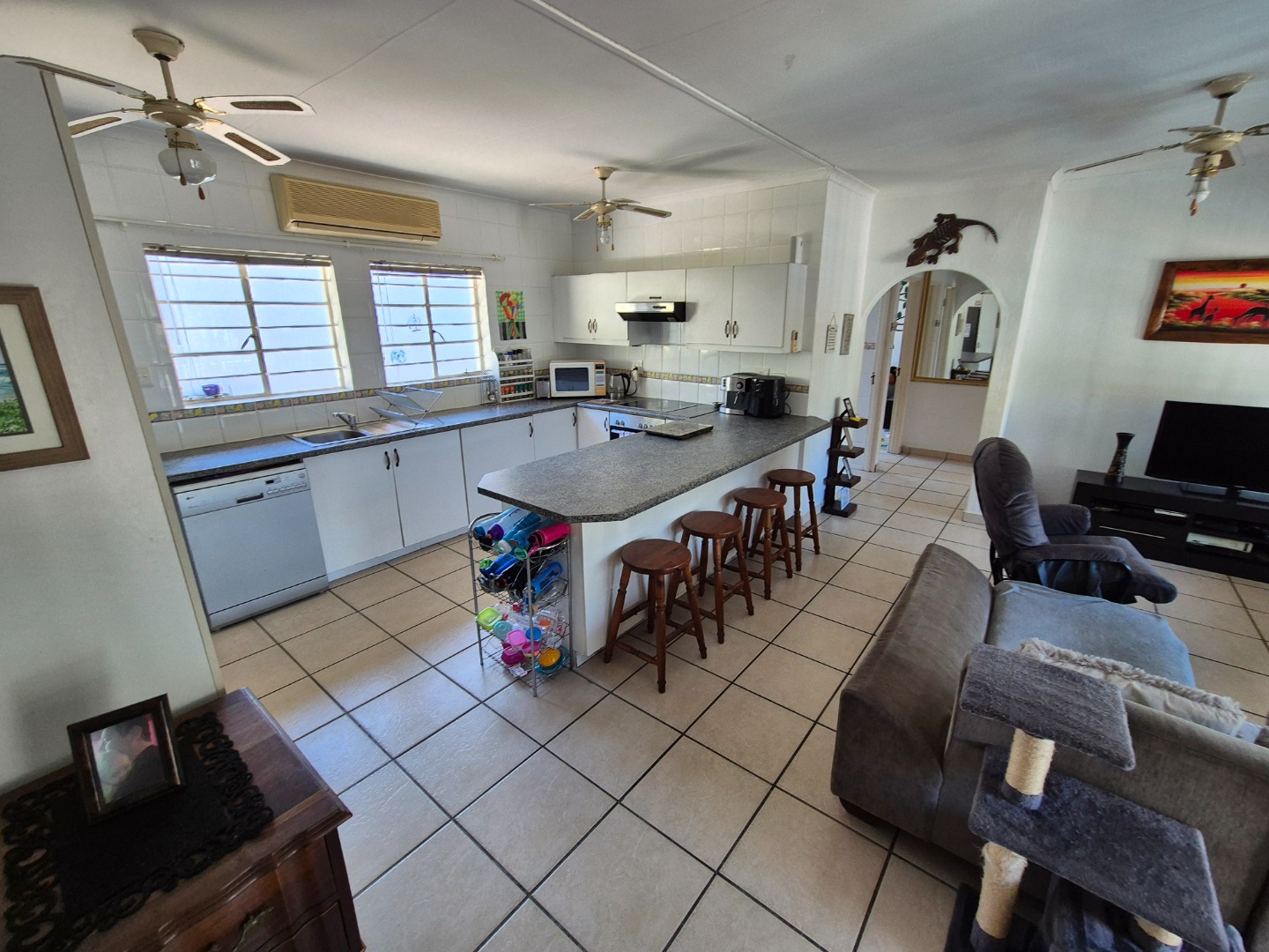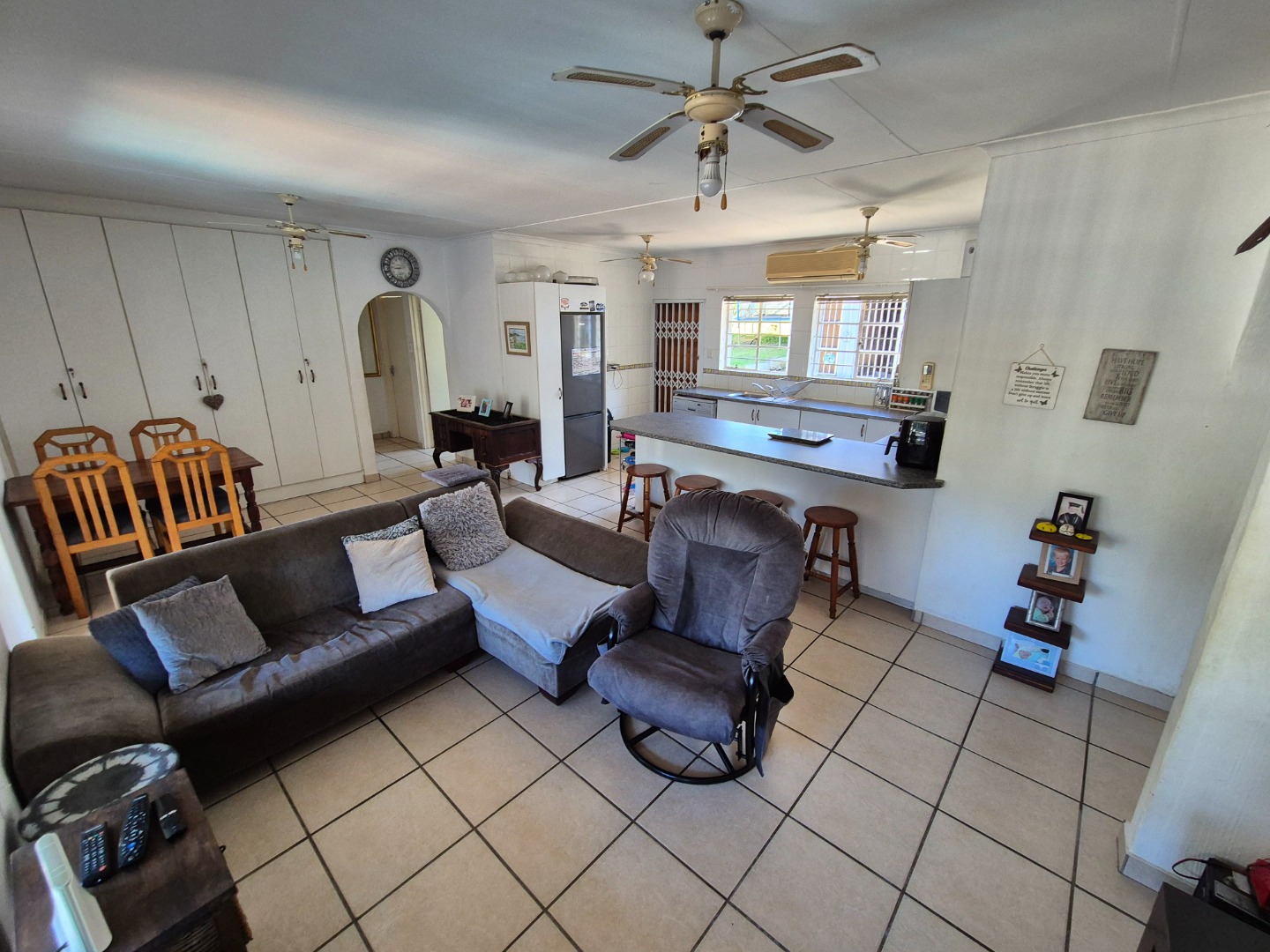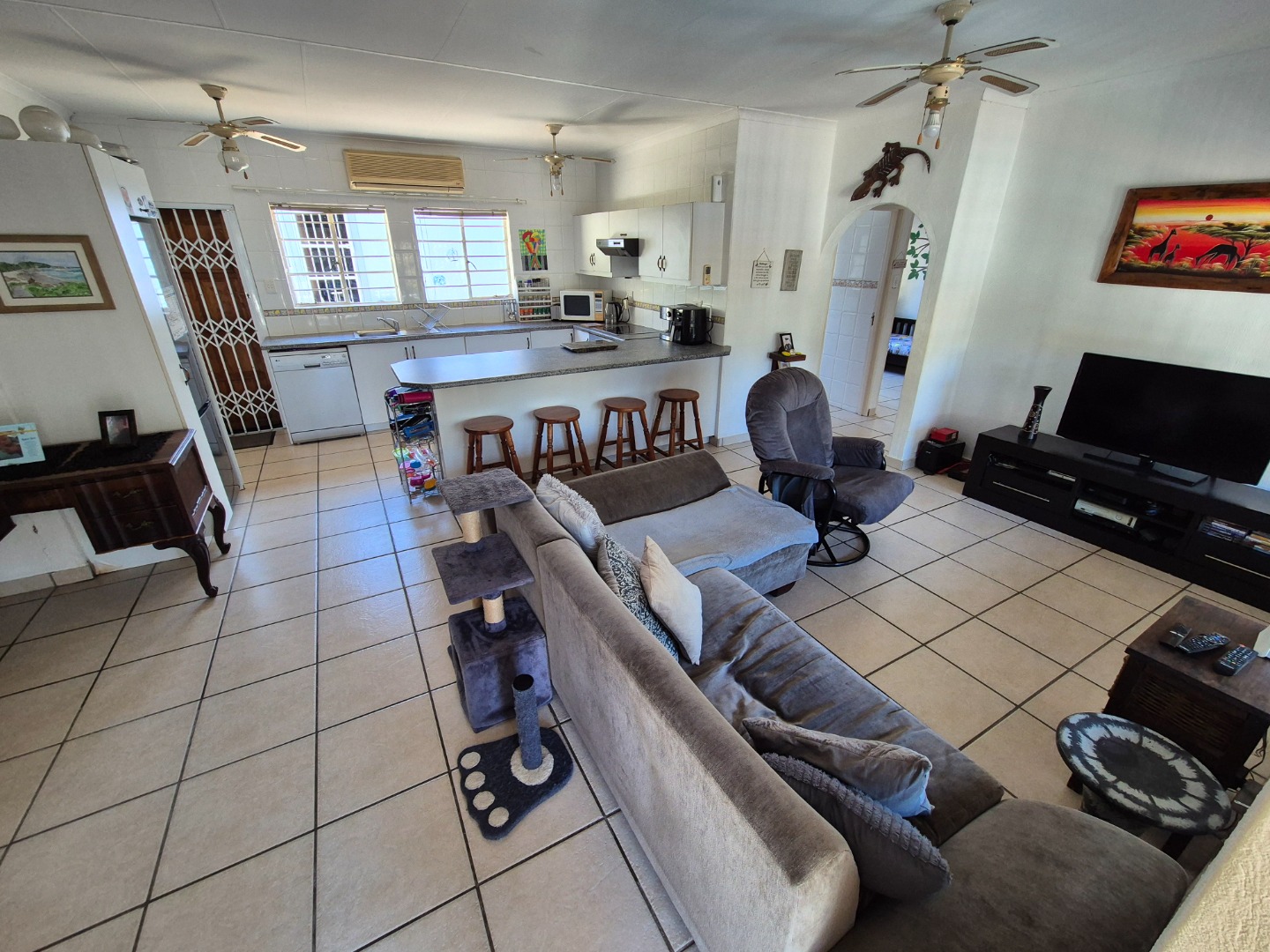Set on a generous 1120 sqm erf, the home features a welcoming open-plan layout with a comfortable lounge and well-equipped kitchen, creating an easy flow for everyday living and entertaining. There’s no formal dining room — just a light, airy living space designed for laid-back coastal living and quality time with family and friends.