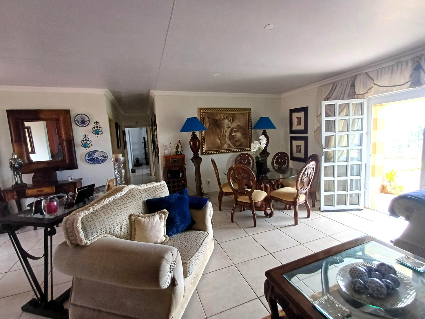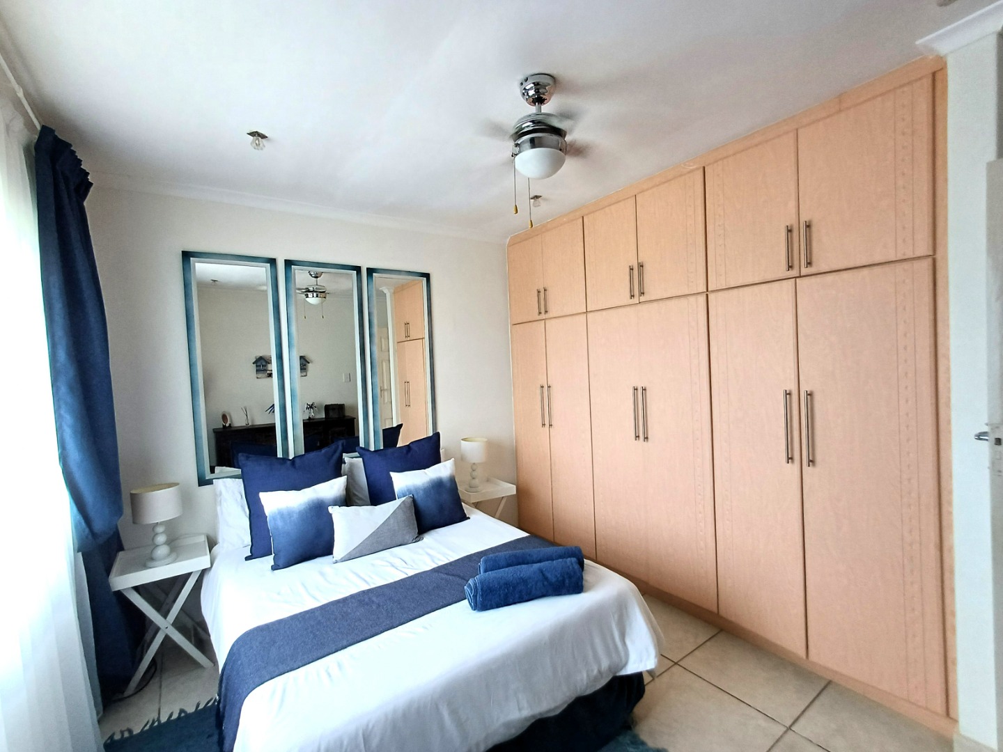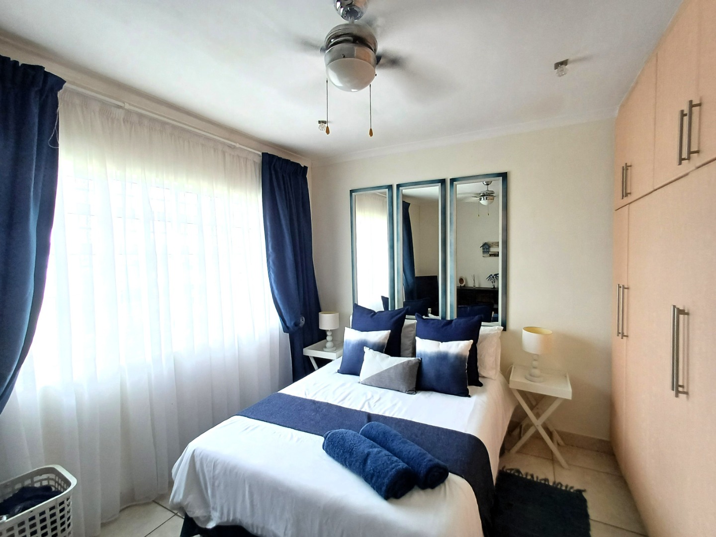 Step into luxury with this immaculate four-bedroom, three-bathroom double-storey home, perfectly positioned to offer uninterrupted 180° ocean views in the sought-after Palm Beach area. Tastefully furnished with elegant open plan living spaces, this home seamlessly blends comfort and sophistication. Downstairs are three generously sized bedrooms, of which one has an en suite bathroom, while the other two share the guest bathroom. Upstairs you will find the luxurious master suite which includes a seating area, en suite bathroom, a separate dressing area, and a private balcony overlooking the well-manicured, picturesque gardens and out onto the ocean.