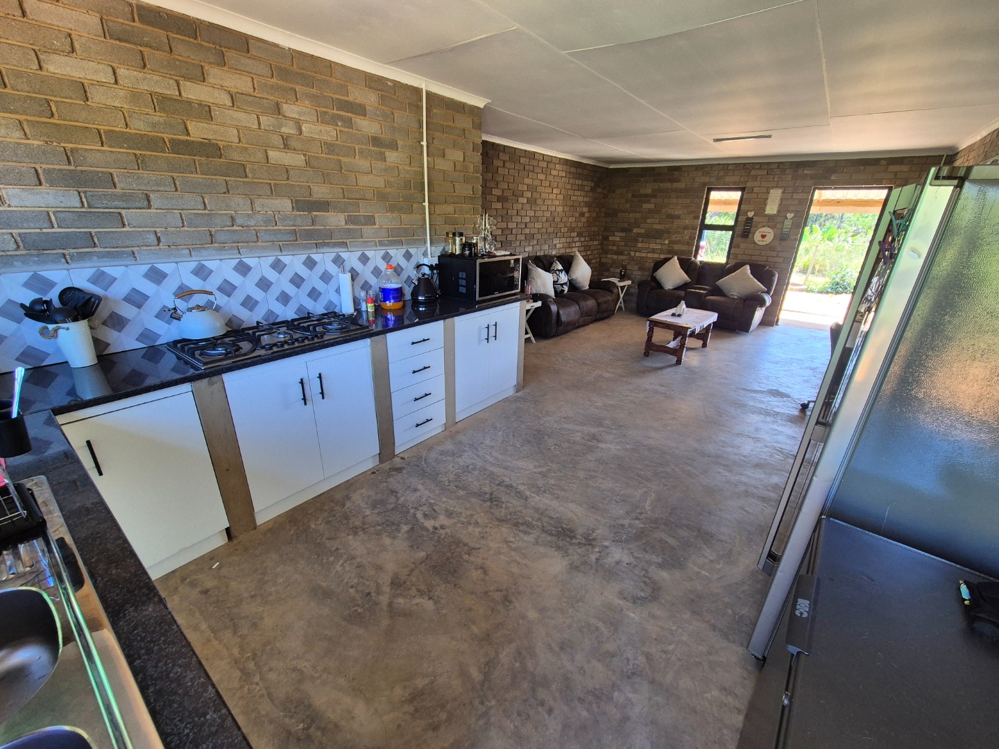 Situated on the quiet western side of the highway, the home was built with distinctive exposed brickwork that gives it a rustic character. A new owner could plaster and paint if preferred, while the screeded interior floors can easily be tiled to suit personal style. The property would benefit from some finishing touches, and the garden and outdoor areas offer a perfect canvas for landscaping and improved curb appeal.