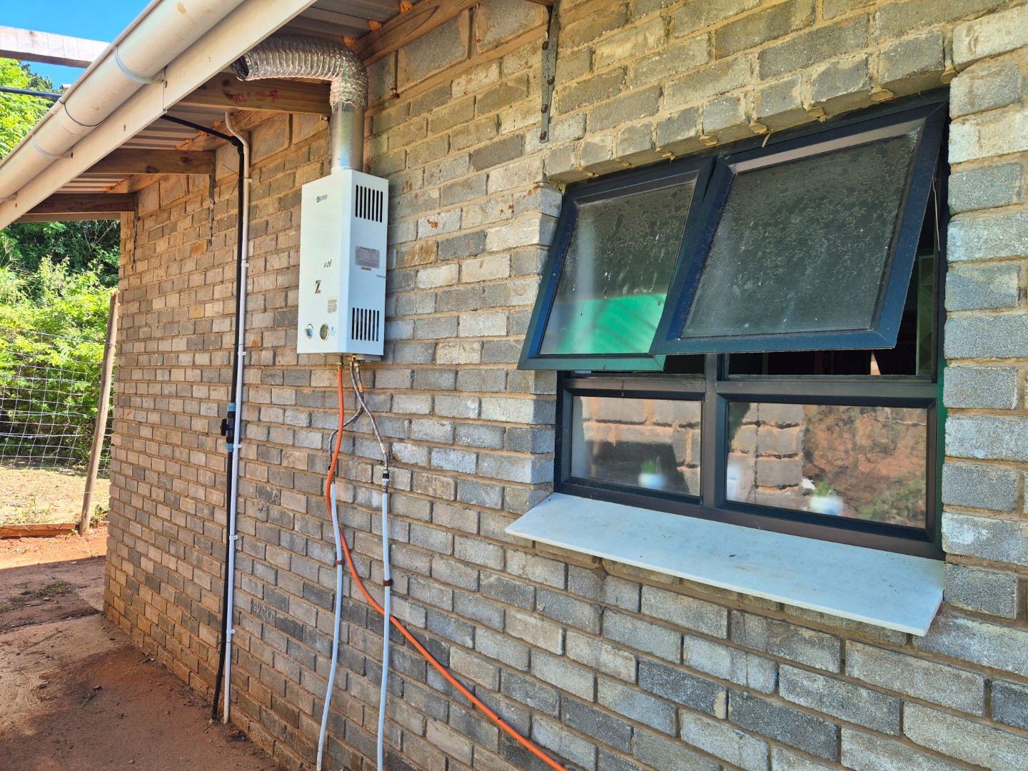 Designed with strong off-grid capability, the property includes a 12kW inverter system, 15kW battery backup and 10 solar panels, allowing independence from Eskom. Four gas geysers and gas cooking hobs further enhance energy efficiency. Three 2,500 litre water tanks with a pump and filtration system provide reliable water security while the property remains connected to municipal supply.