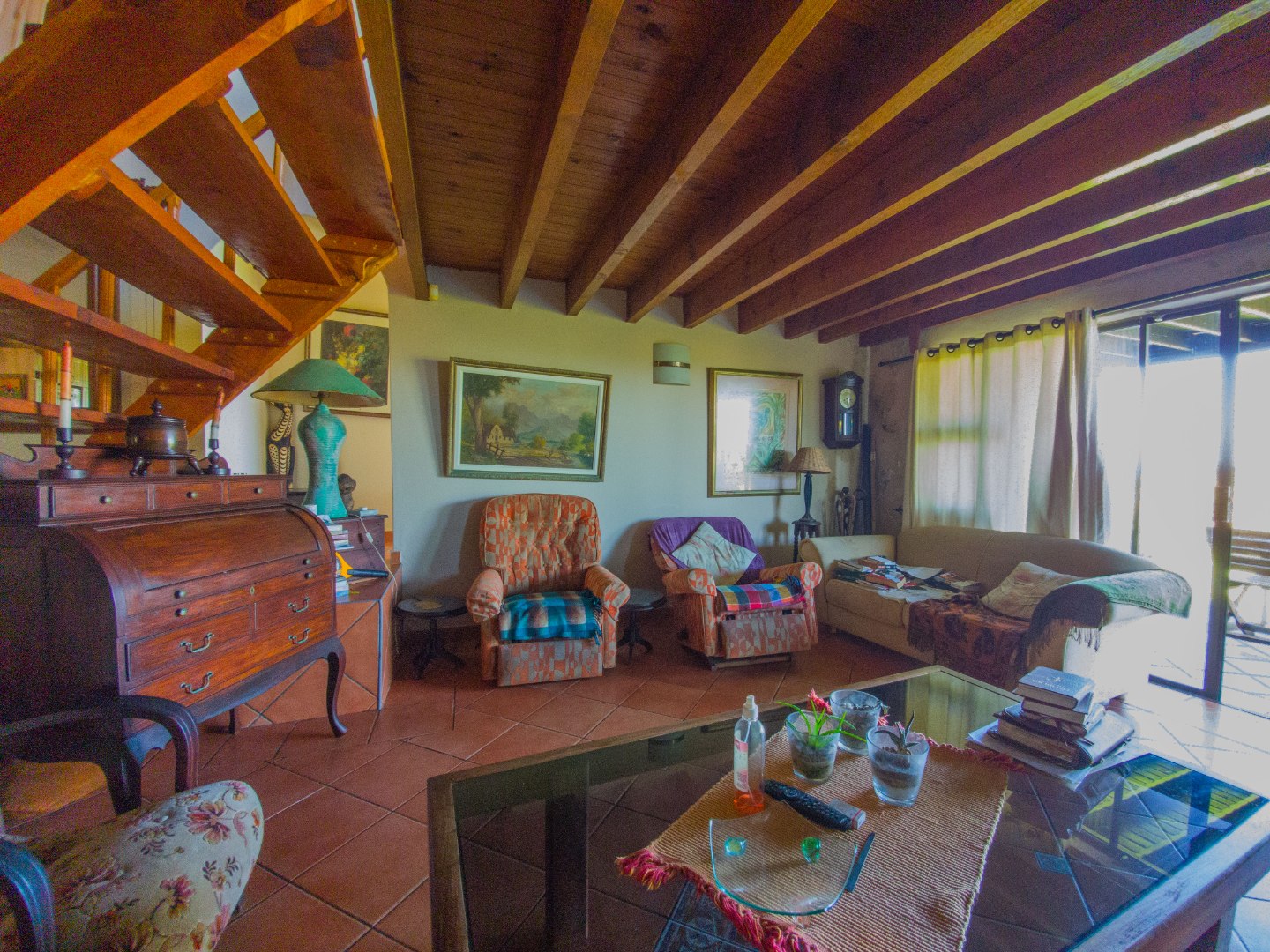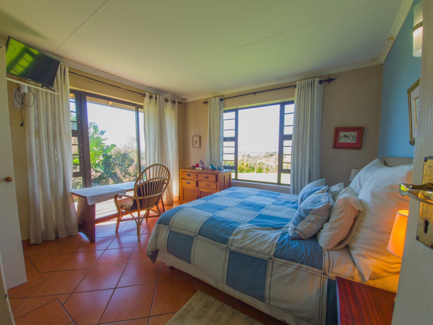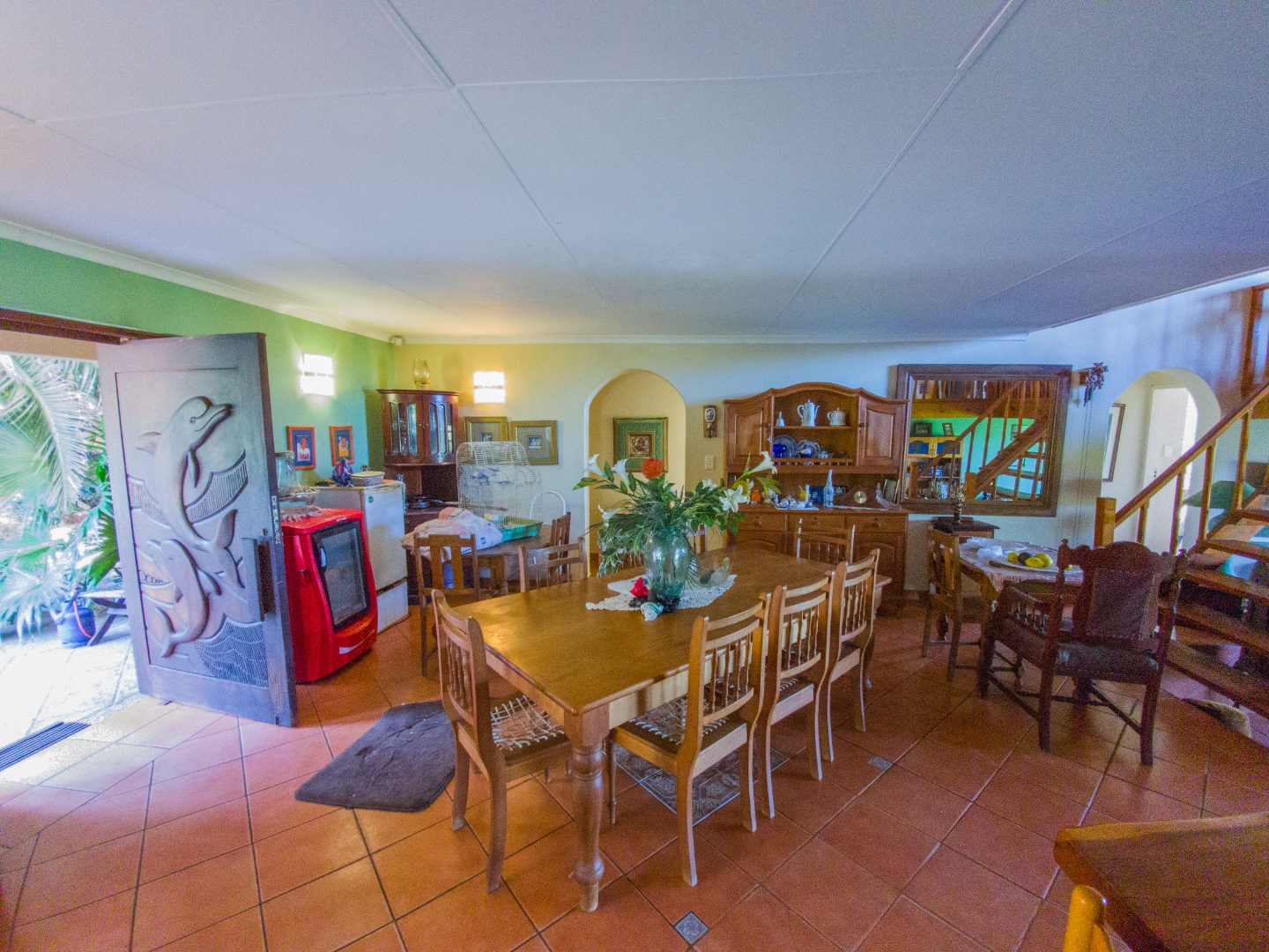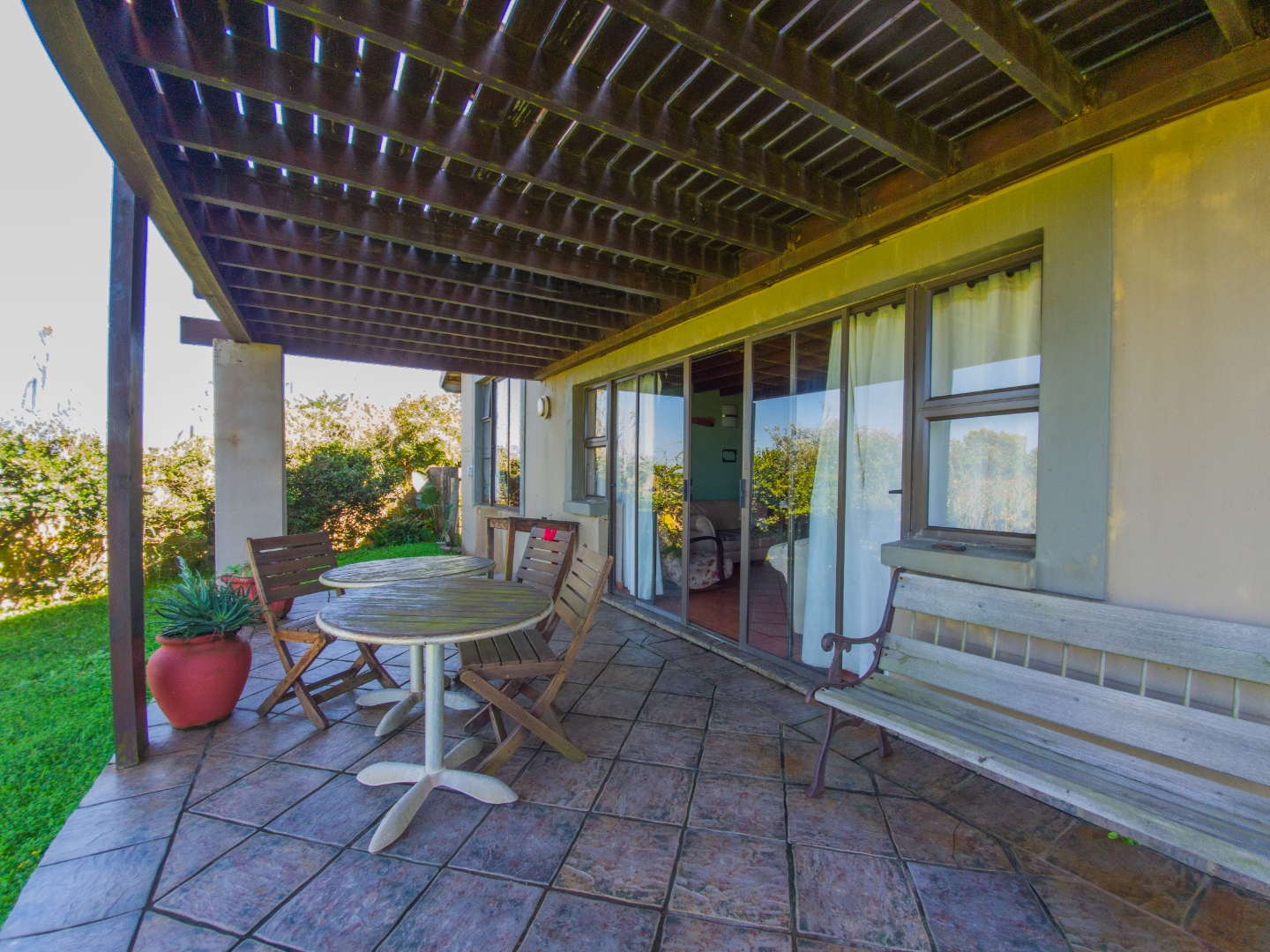 There are three identical guest rooms on the left of the house with own identical bathrooms on-suite, with own entries. Each room has a coffee station, television and sliding doors onto own wooden patio. Lovely braai and seating area under huge trees for guests. Master bedroom is to the right, being very private from guests, and very spacious with walk through cupboards and a lovely full bathroom on-suite with beautiful views onto the gardens. Double garages and lots of secure parking space. 2500L water tank for back up water. Exit through a gate in front and you are on the stunning beach within a few steps. House is in a very quiet safe area of Port Edward so you will feel like you are on your own private beach. Guest house license and furniture for the 3 guest suites are negotiable with the owner. House have an alarm system and automated gates. Port Edward is a lovely town offering everything you need. Wild Coast Sun is only 5 minutes away - with lots of entertainment and restaurants to please all. Best location for the golfing fanatics, as there are plenty award winning golf courses within half an hour drive. Also the perfect spot for outdoor and aquatic activities. Call me for a visit and let me show you the potential of this home - lots of space to dream of more!