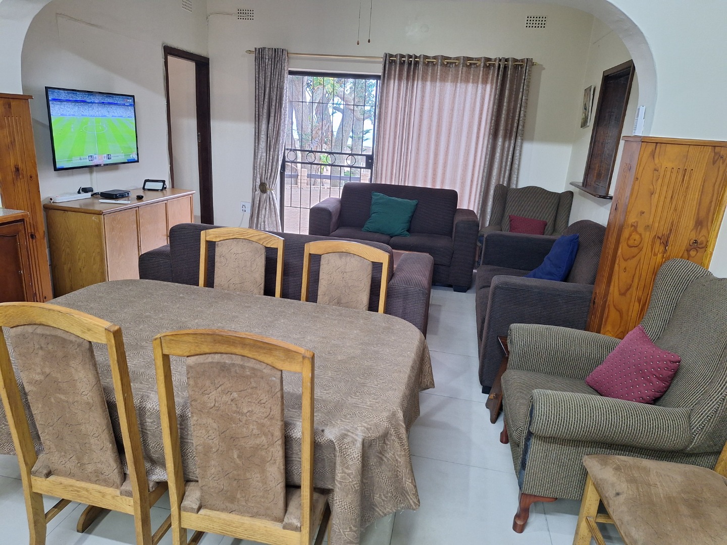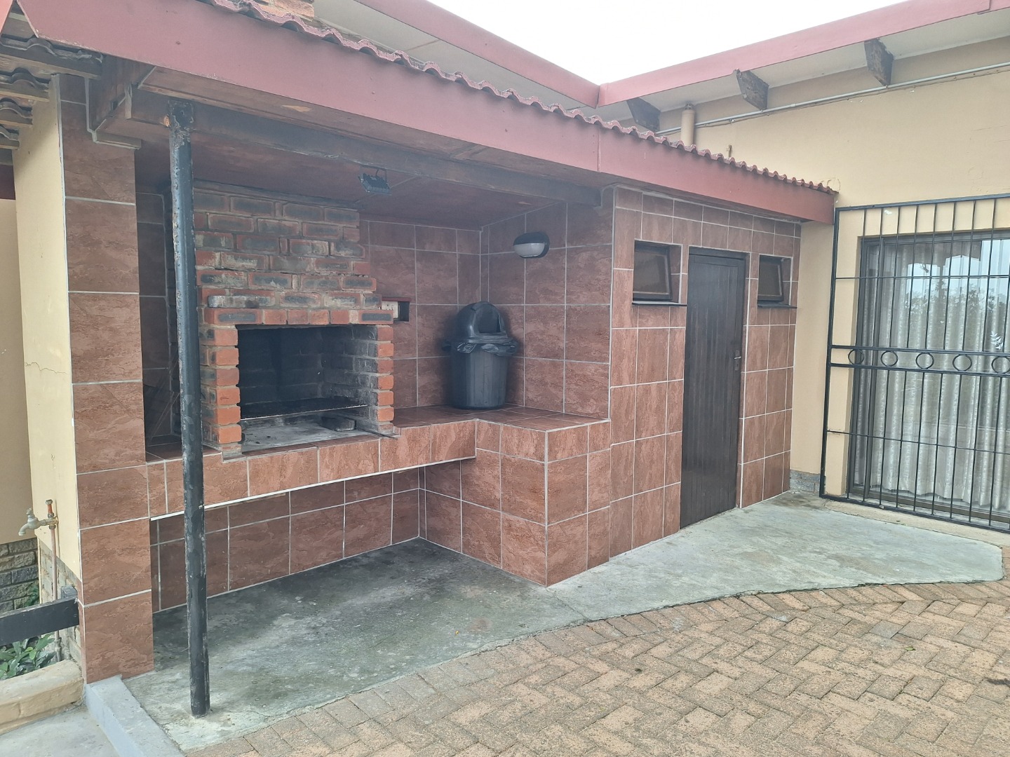 Step outside to embrace the quintessential South African outdoor living. The property includes a communal swimming pool, a private patio, and a built-in braai, ideal for entertaining guests or enjoying quiet evenings. A spacious garden and a dedicated children's play area cater to family enjoyment. Parking is convenient with a single garage and three additional open parking spaces.