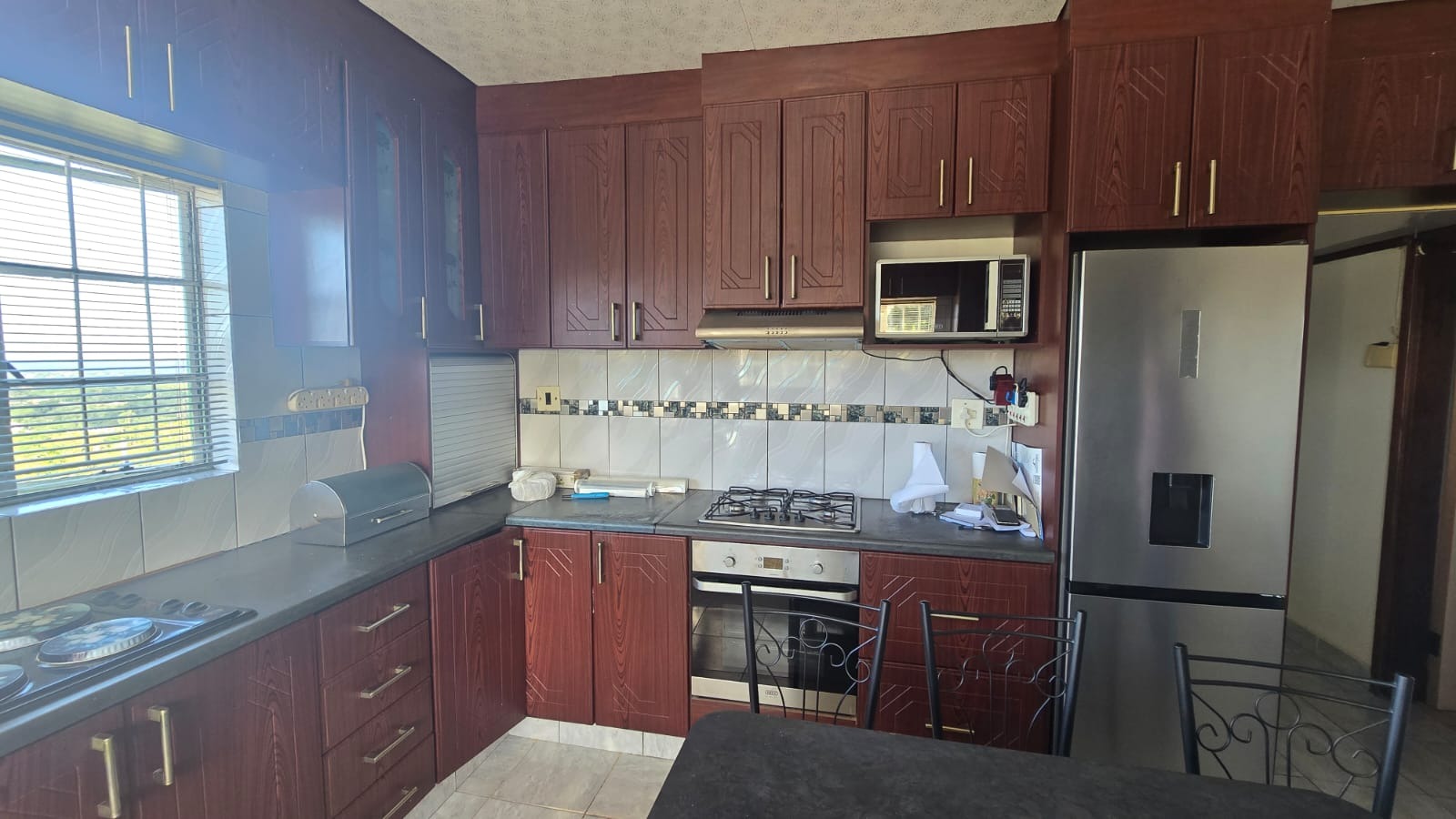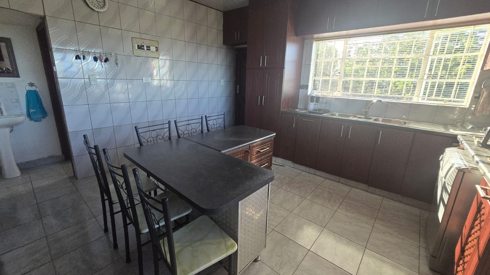 Step inside to find a thoughtfully designed, open-plan layout featuring a spacious lounge and dining area that seamlessly flows into a large, tiled kitchen. The kitchen is the heart of the home, complete with a generous island, built-in appliances, and a cozy eating nook ideal for family meals or entertaining guests.