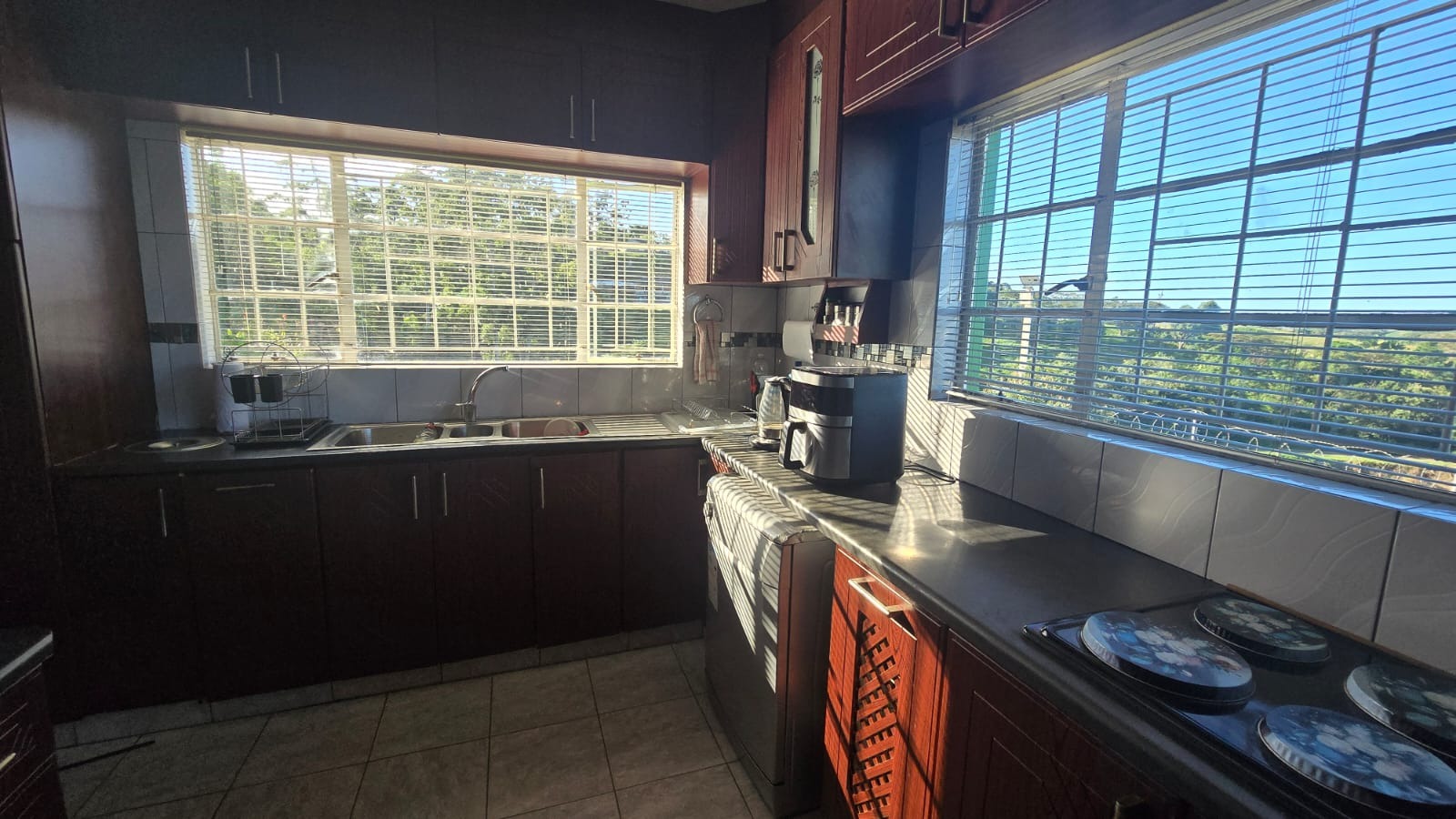 One of the standout features is the elevated lookout point, offering a serene distant sea view perfect for morning coffee or evening relaxation. The home is tiled throughout, providing a clean, low-maintenance surface that enhances the bright and airy feel of every room.