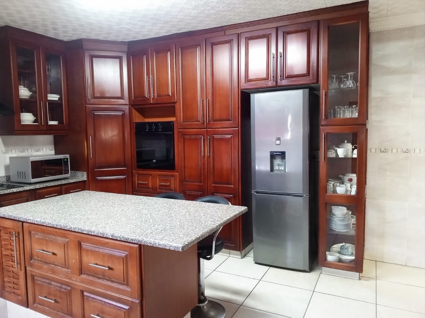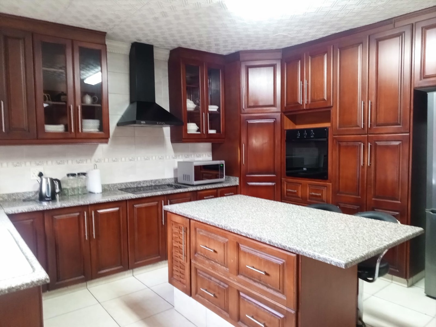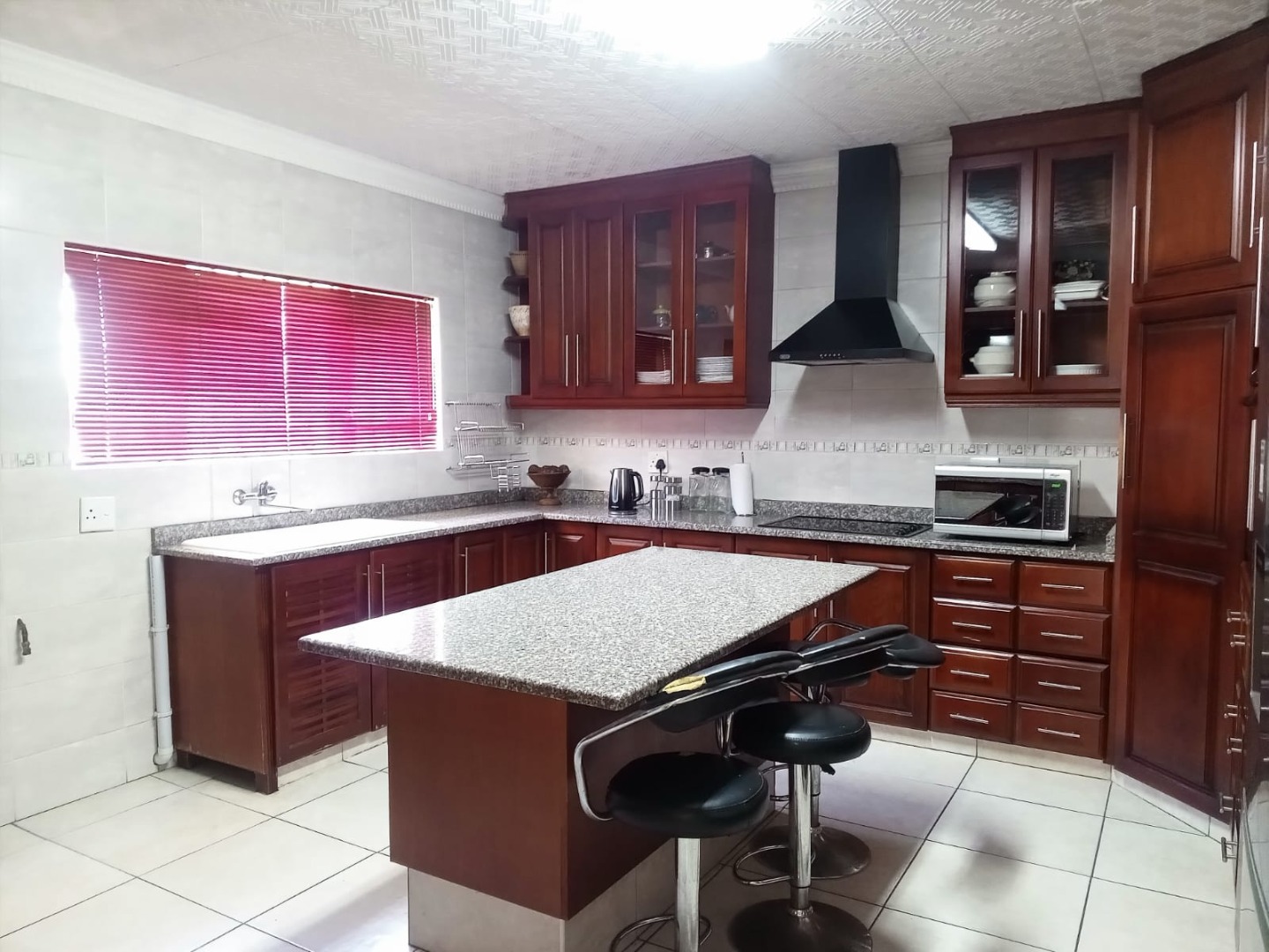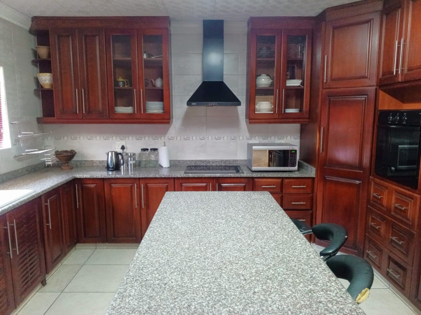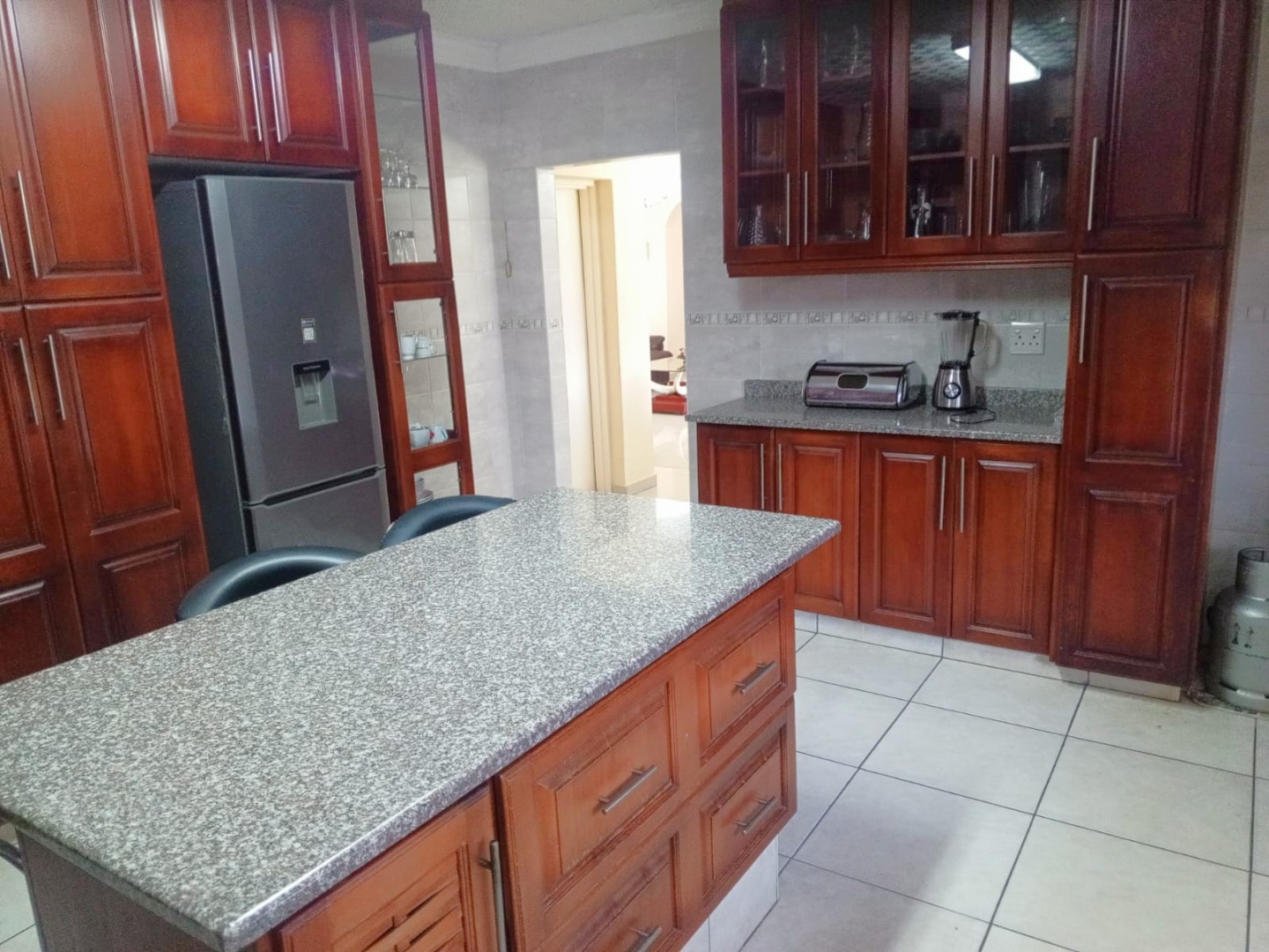 The home comprises four well-proportioned bedrooms, with the main bedroom offering a discreetly concealed en-suite bathroom for added privacy and comfort. A stylish family bathroom and a separate guest toilet further enhance the functionality of the home. The kitchen is a true centrepiece, designed with rich dark mahogany cabinetry, sleek granite countertops, a central island, and ample built-in cupboard space — a dream for any family chef. Additional features include Trellidoors and burglar proofing throughout, a JoJo water tank, and excellent overall security. Ideally located close to schools, shops, malls, and essential amenities, with easy access to major toll routes, this exceptional property offers refined family living in a highly convenient location.