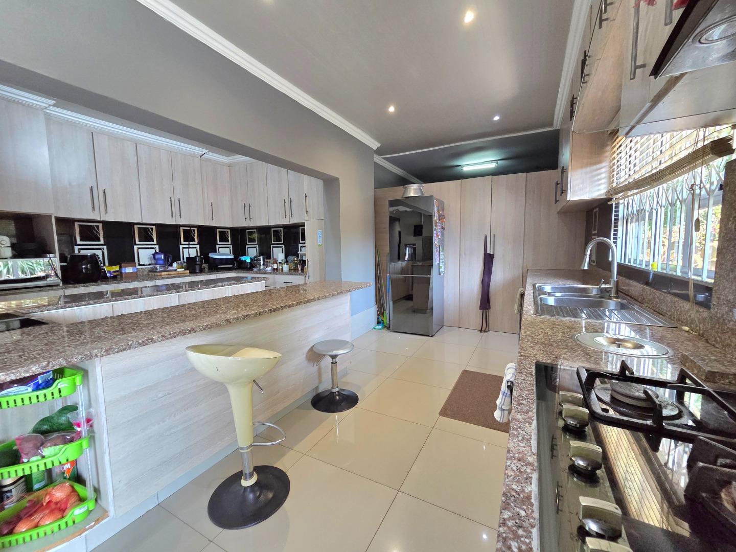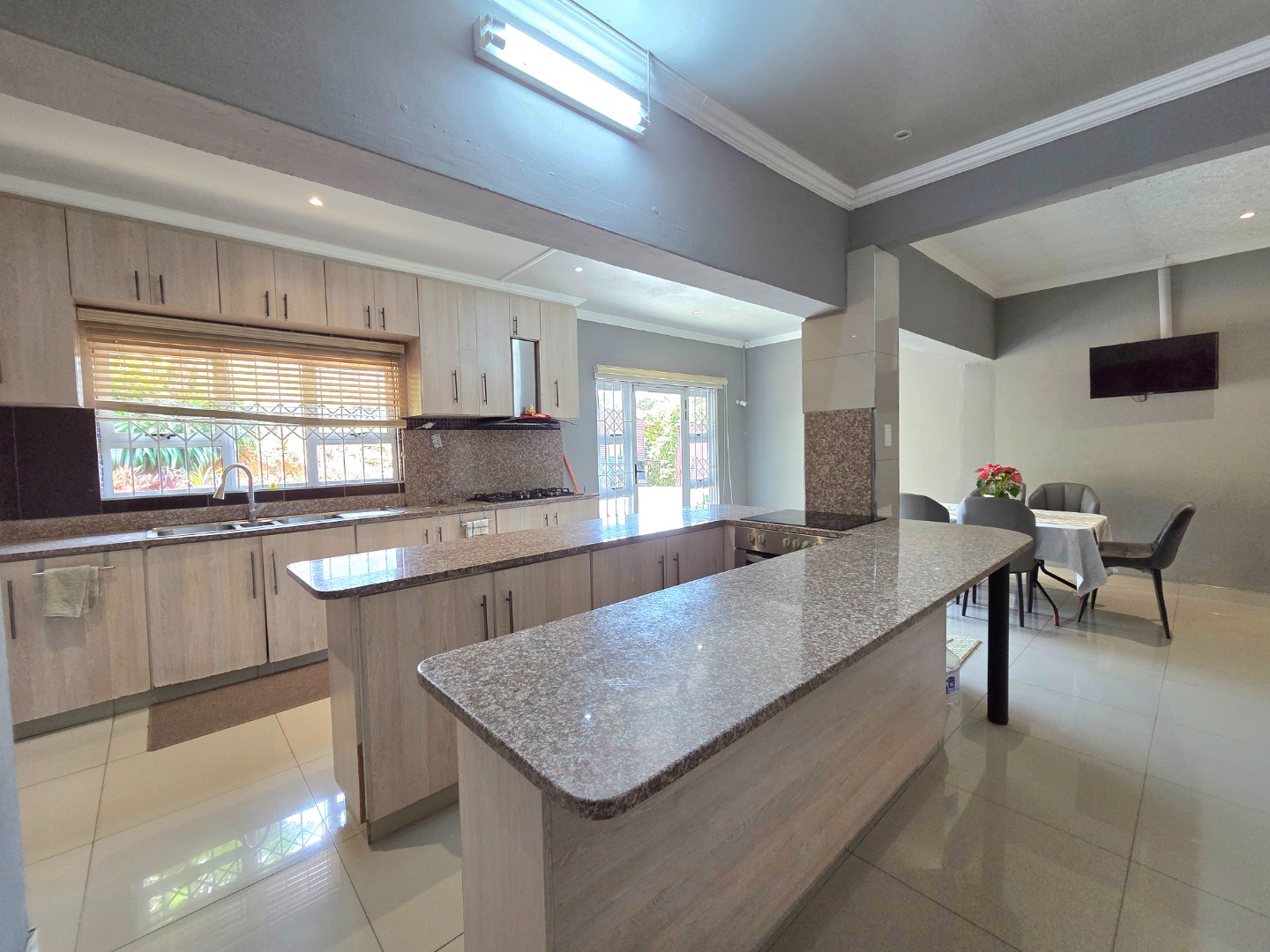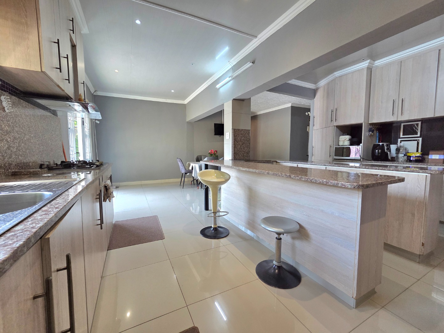 This inviting family home offers 3 spacious bedrooms and 2 well?appointed bathrooms, thoughtfully designed with comfort and practicality in mind. At the heart of the property lies a modern kitchen with abundant counter and cupboard space, fitted with both an electrical and gas hob, perfect for families who love cooking together. The seamless flow into the dining area creates an ideal setting for dinner parties, while a well?sized laundry provides room for extra fridges and kitchen accessories, adding everyday convenience. The master bedroom includes a walk?in closet, and the property sits on a large erf with excellent potential for future expansion, giving buyers the opportunity to grow and adapt the home to their needs.