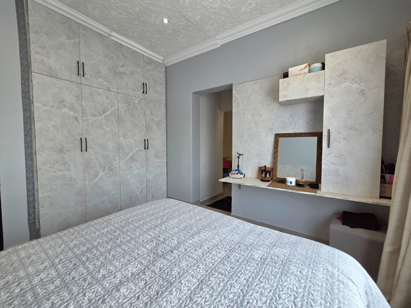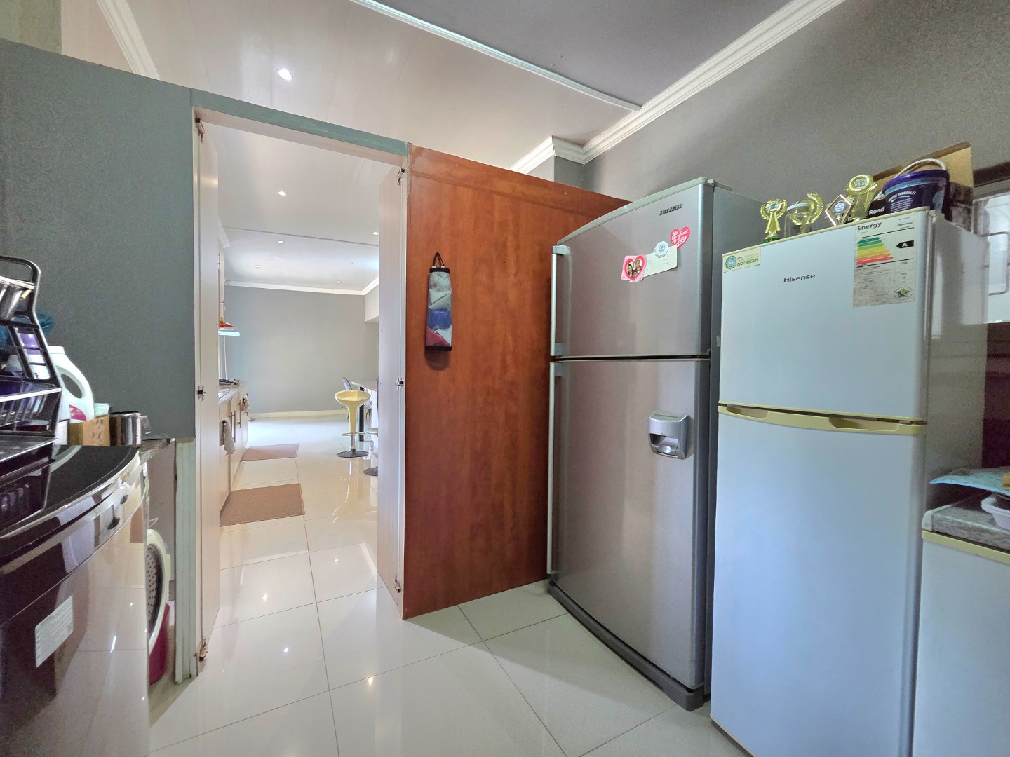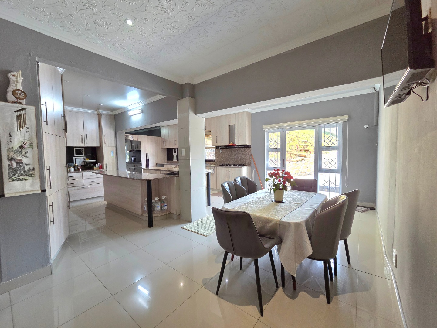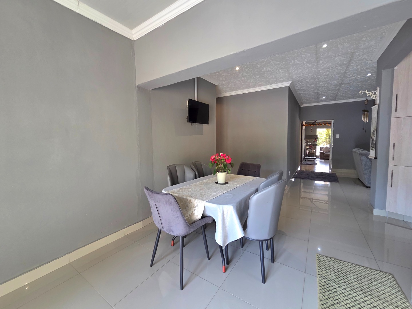 This inviting family home offers 3 spacious bedrooms and 2 well?appointed bathrooms, thoughtfully designed with comfort and practicality in mind. At the heart of the property lies a modern kitchen with abundant counter and cupboard space, fitted with both an electrical and gas hob, perfect for families who love cooking together. The seamless flow into the dining area creates an ideal setting for dinner parties, while a well?sized laundry provides room for extra fridges and kitchen accessories, adding everyday convenience. The master bedroom includes a walk?in closet, and the property sits on a large erf with excellent potential for future expansion, giving buyers the opportunity to grow and adapt the home to their needs.