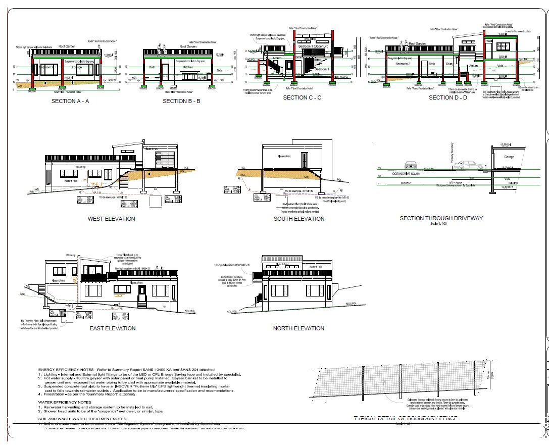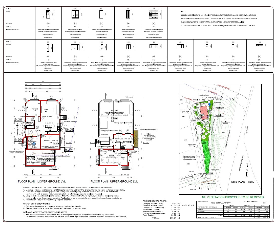 Approved plans, all permissions have been done. There is a water reticulation system that has been started and the property borders the river and the ocean.