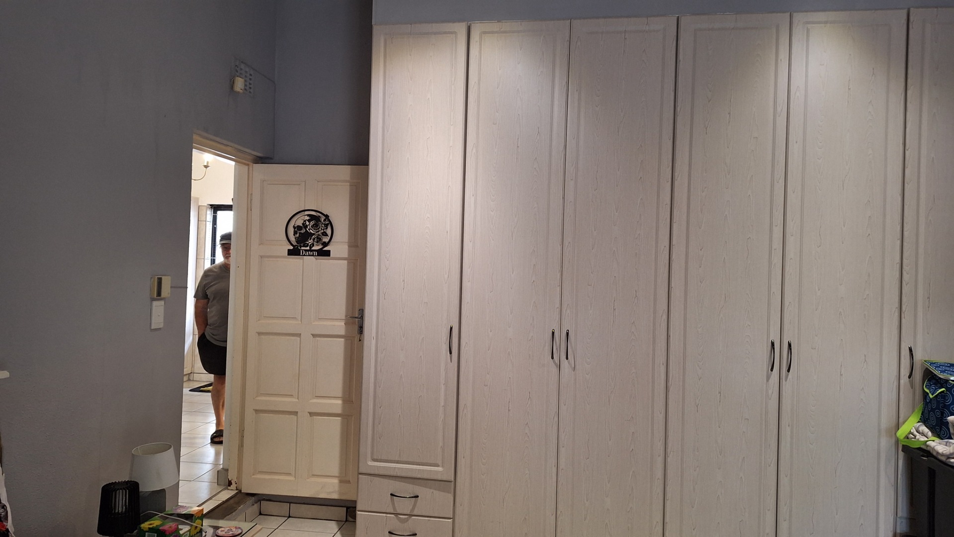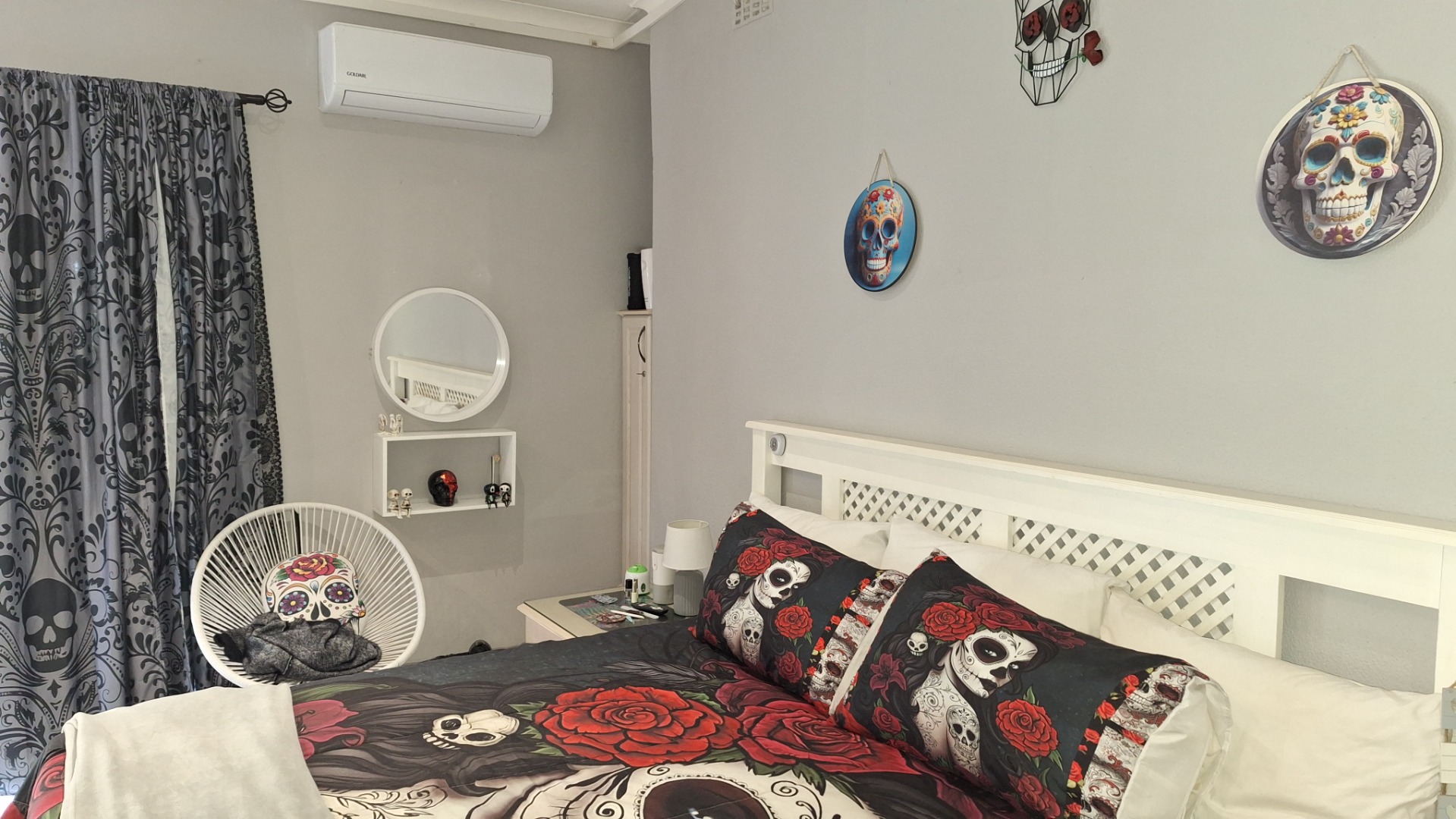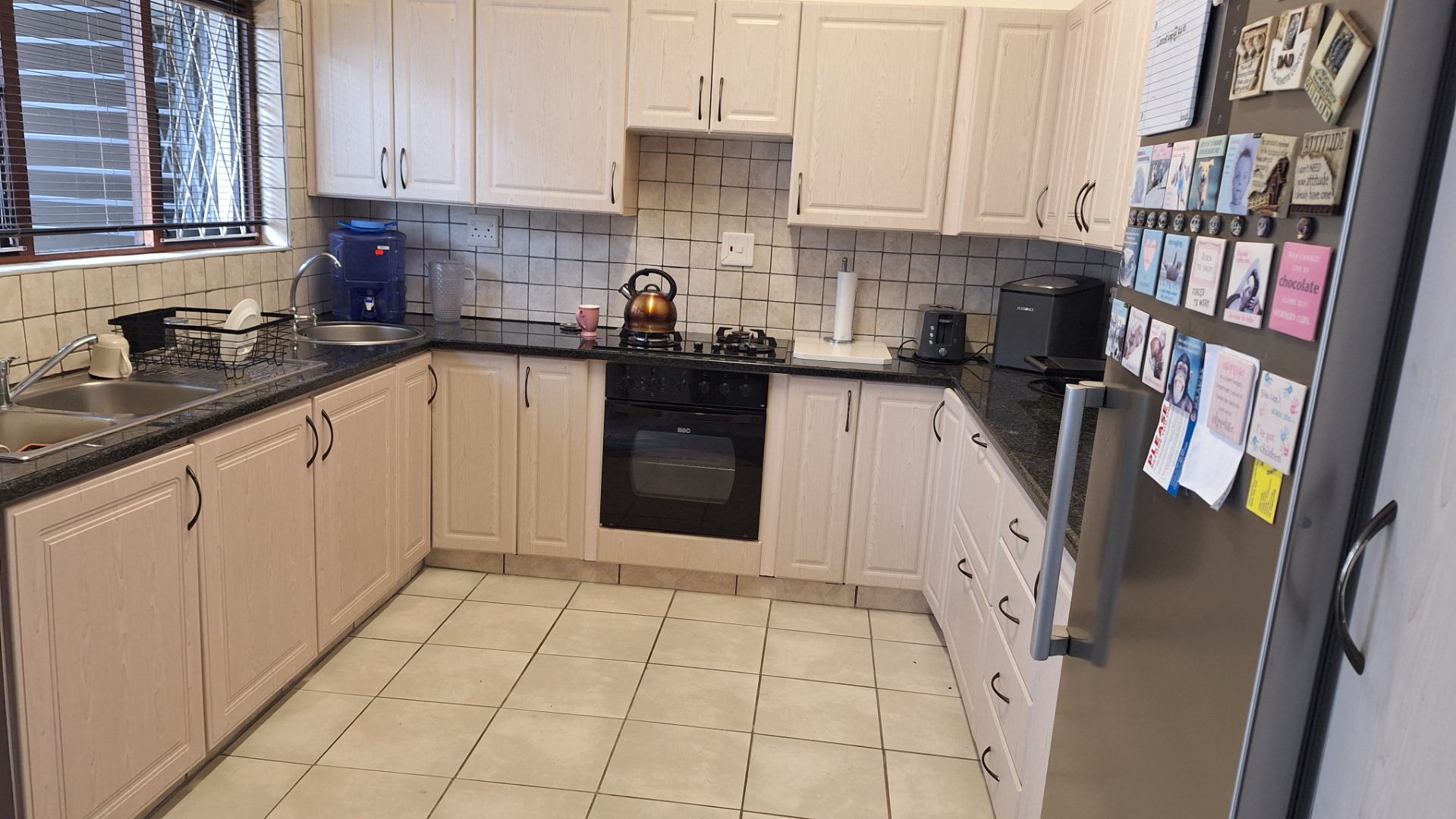 This exceptional, modern home offers the perfect blend of luxury, comfort and practical living - ideal for a large family or anyone looking to generate additional income from property. Situated in a peaceful and sought after neighborhood, this immaculate property boasts style, space and versatility. Main House Features 4 Spacious bedrooms with modern built-in cupboards throughout. 3 Bedrooms air-conditioned for year round comfort and also ceiling fans. Main bedroom includes a private office, ideal for working from home. Luxurious en-suite bathroom with high end finished. Other bedrooms are stylish and spacious. Separate guest toilet available for convenience. Elegant open plan living. Lounge and dining area with seamless flow. Modern open plan kitchen with granite countertops and plenty of cupboard space. Gas hob and electric oven - energy efficient and great for load shedding. Separate laundry area. Beautiful entertainment area perfect for family gatherings, overlooking a sparkling swimming pool. Wendy house for storage of garden tools or outdoor equipment.. Neat, well maintained garden. Workshop for the DIY enthusiast.