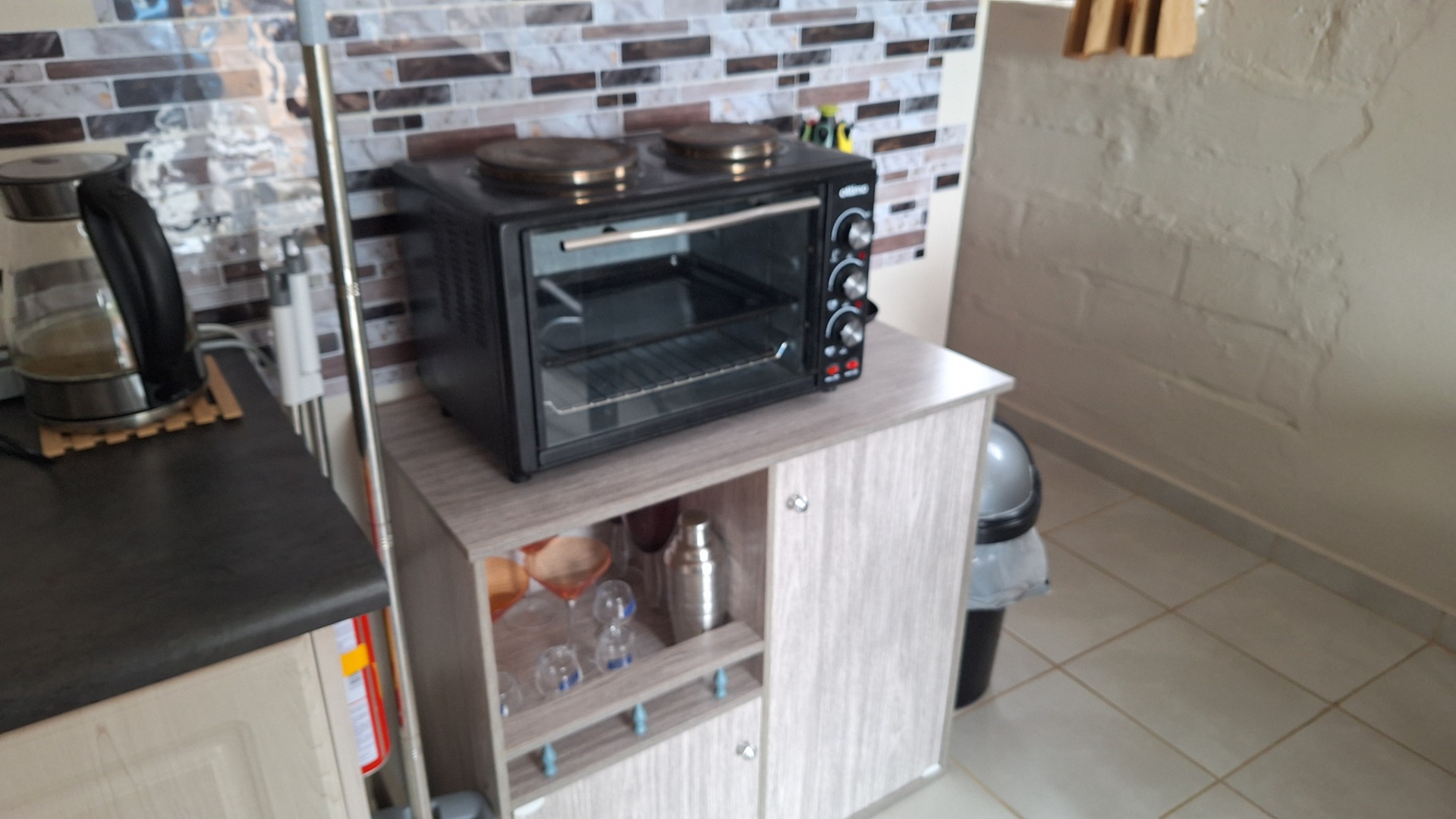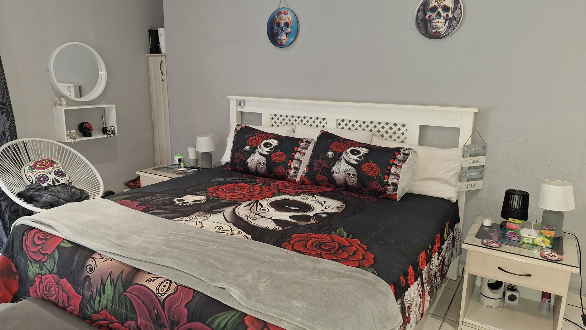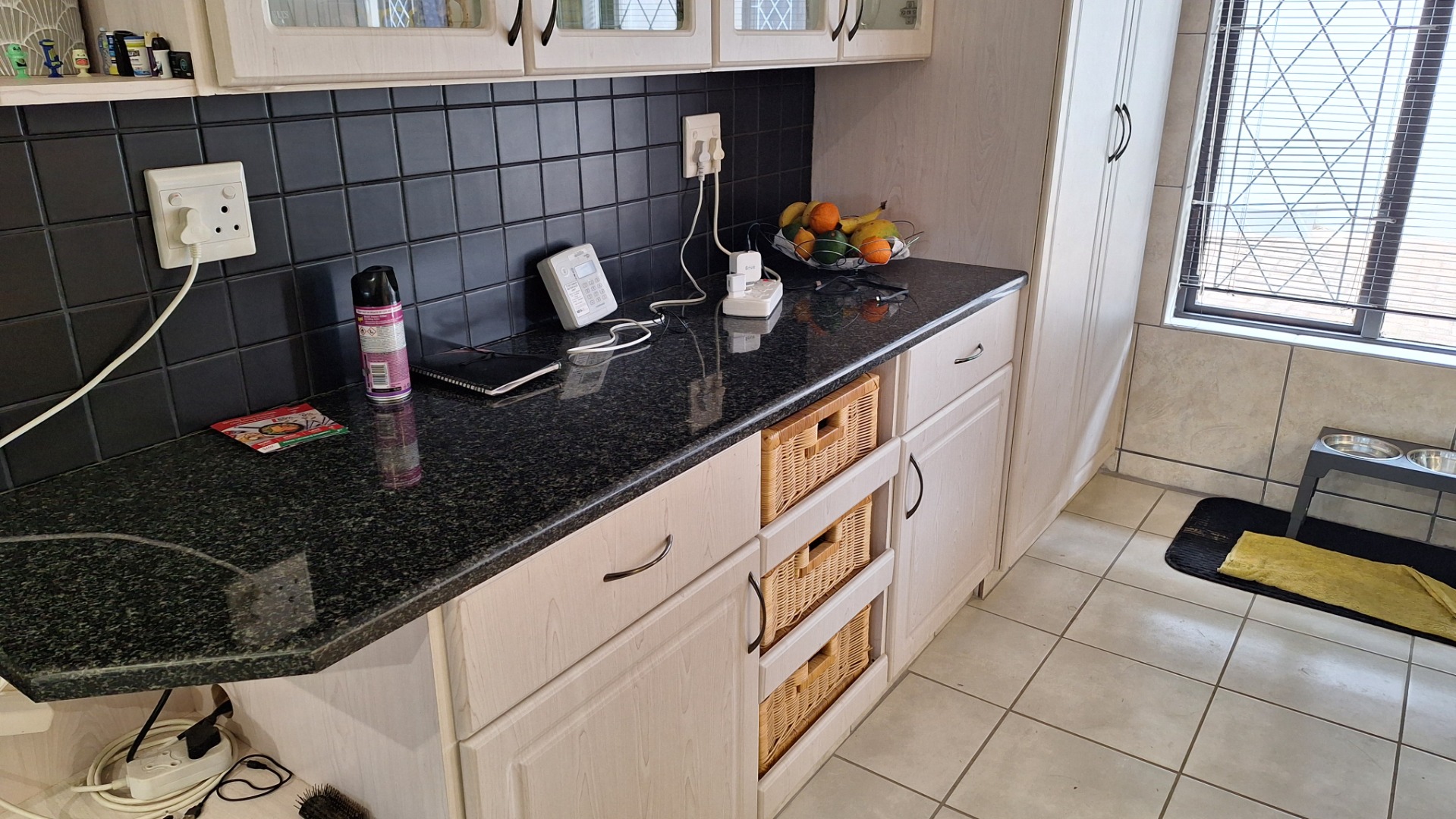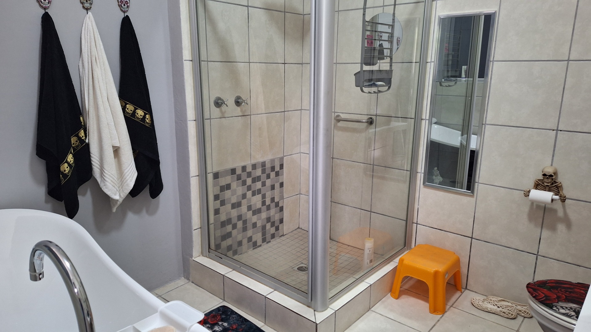 This exceptional, modern home offers the perfect blend of luxury, comfort and practical living - ideal for a large family or anyone looking to generate additional income from property. Situated in a peaceful and sought after neighborhood, this immaculate property boasts style, space and versatility. Main House Features 4 Spacious bedrooms with modern built-in cupboards throughout. 3 Bedrooms air-conditioned for year round comfort and also ceiling fans. Main bedroom includes a private office, ideal for working from home. Luxurious en-suite bathroom with high end finished. Other bedrooms are stylish and spacious. Separate guest toilet available for convenience. Elegant open plan living. Lounge and dining area with seamless flow. Modern open plan kitchen with granite countertops and plenty of cupboard space. Gas hob and electric oven - energy efficient and great for load shedding. Separate laundry area. Beautiful entertainment area perfect for family gatherings, overlooking a sparkling swimming pool. Wendy house for storage of garden tools or outdoor equipment.. Neat, well maintained garden. Workshop for the DIY enthusiast.
