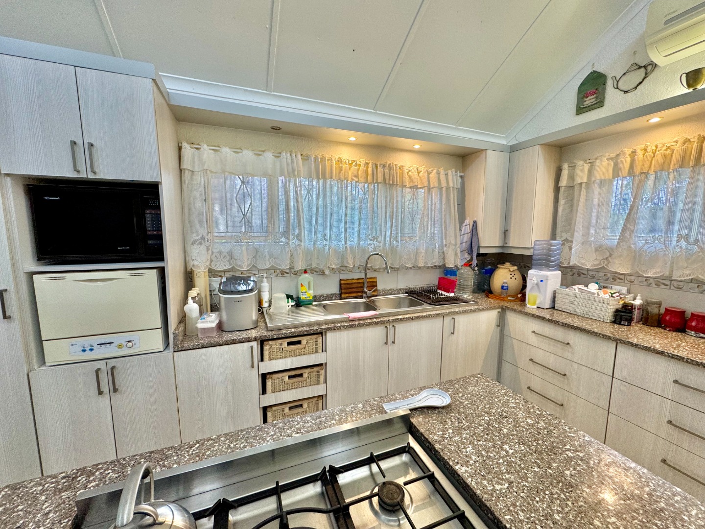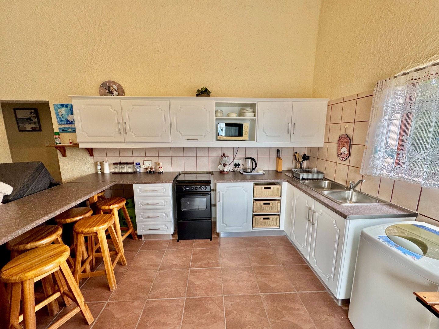 Set on a large, well-maintained piece of land, the property comes with approval to build two more units, offering excellent expansion potential. It is equipped with a borehole, a full water filtration system, backup water tanks, solar panels, and a generator-ensuring self-sufficiency and peace of mind. Security features include perimeter fencing, beams, and surveillance cameras. A sparkling swimming pool, landscaped gardens, and modern finishes throughout complete this rare coastal gem-ideal for investors seeking strong rental returns and a beautiful place to call home.