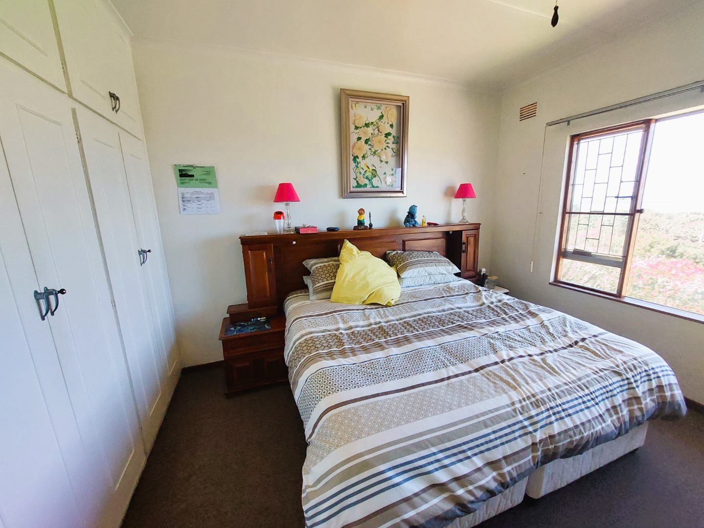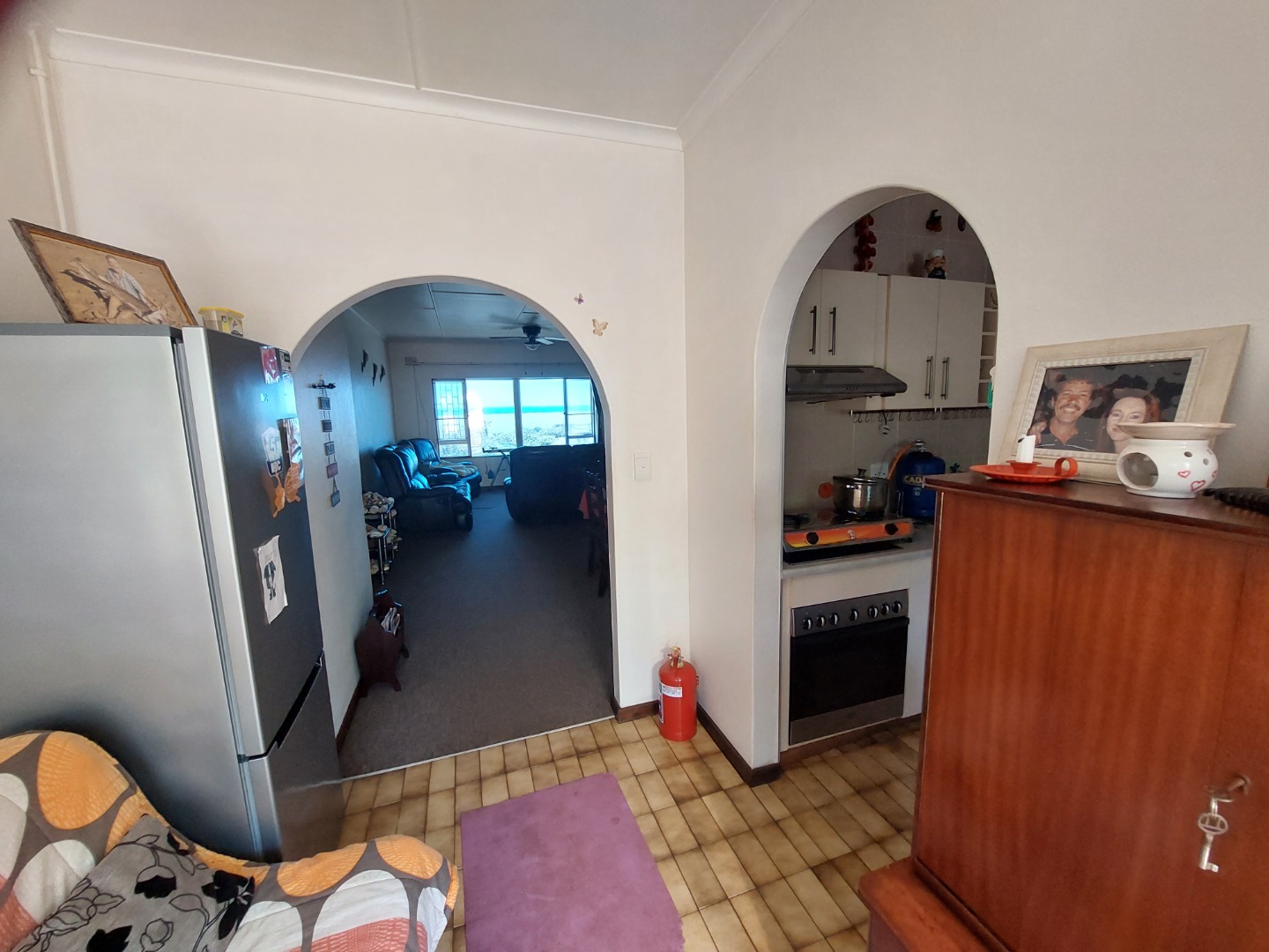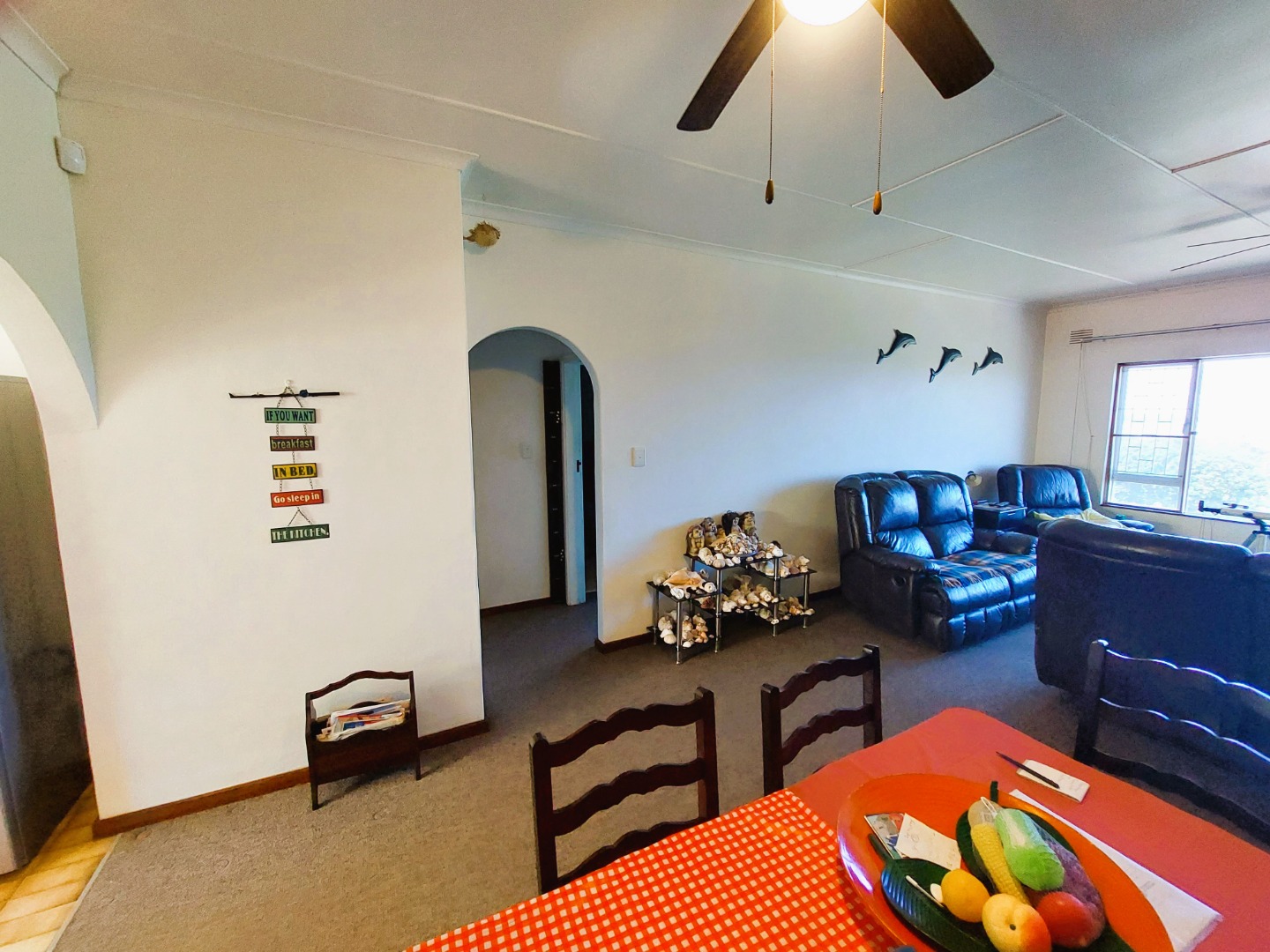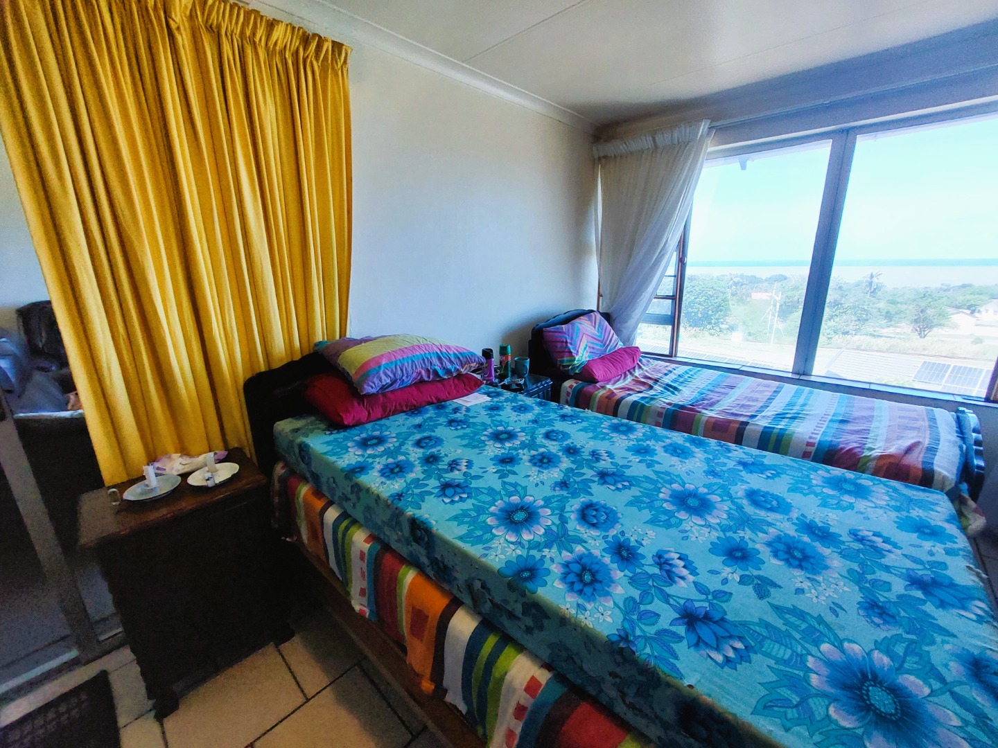 The lounge and dining room is open plan with big windows that take advantage of the lovely sea view. There is an aircon in the lounge which also has carpets. The complex is well maintained and has back water tanks. The flat also has an alarm system. Pets are allowed with permission.