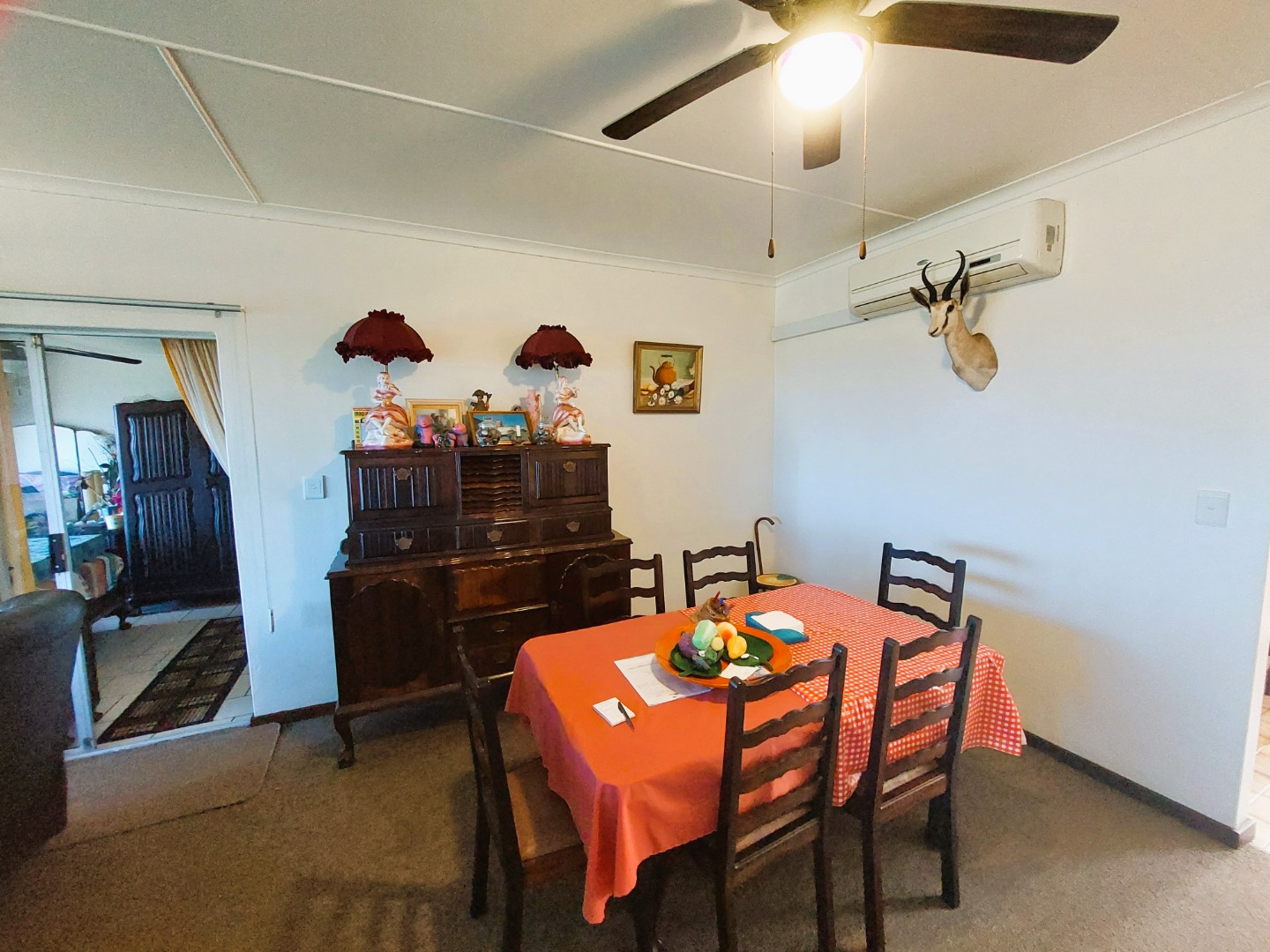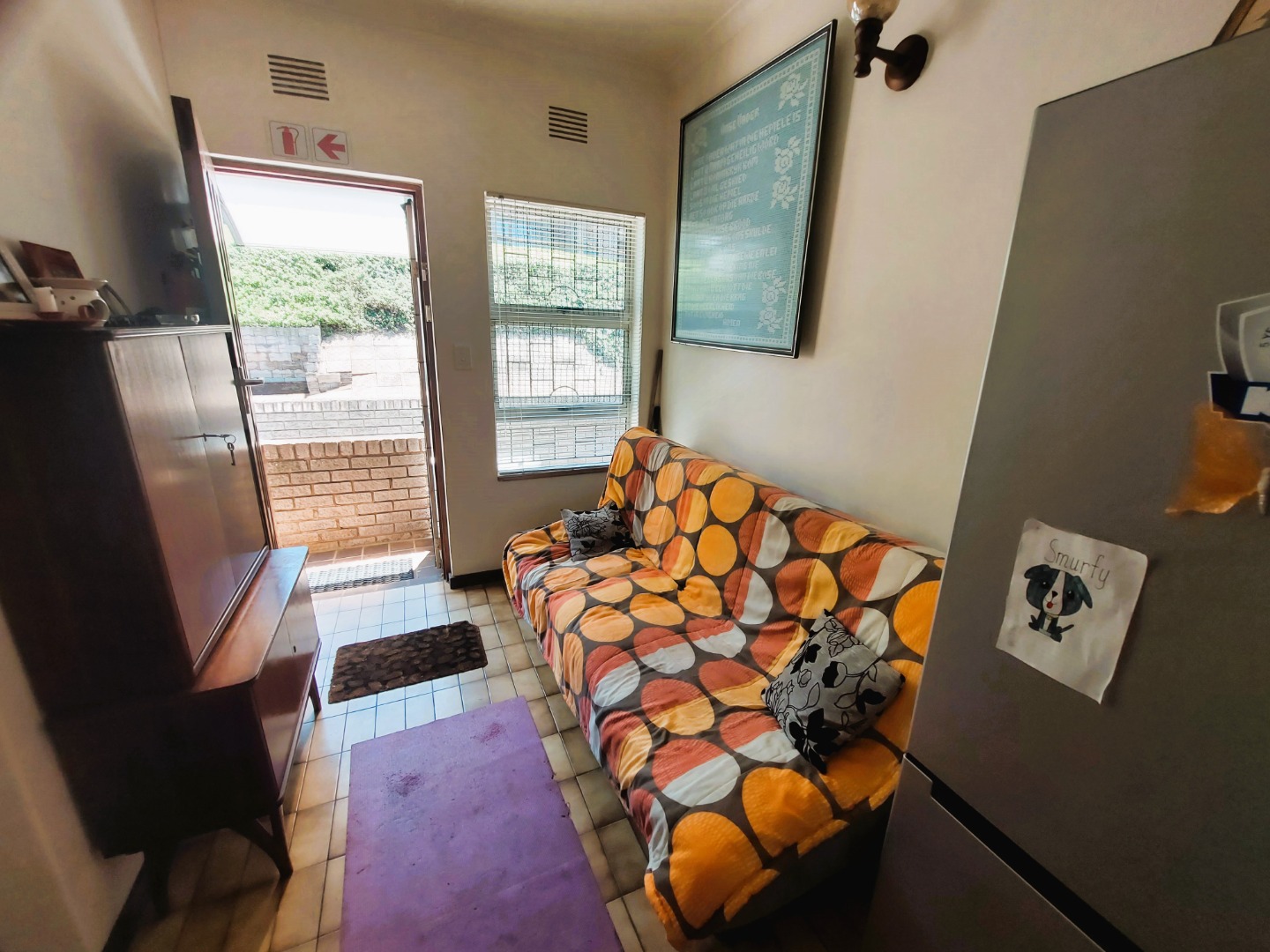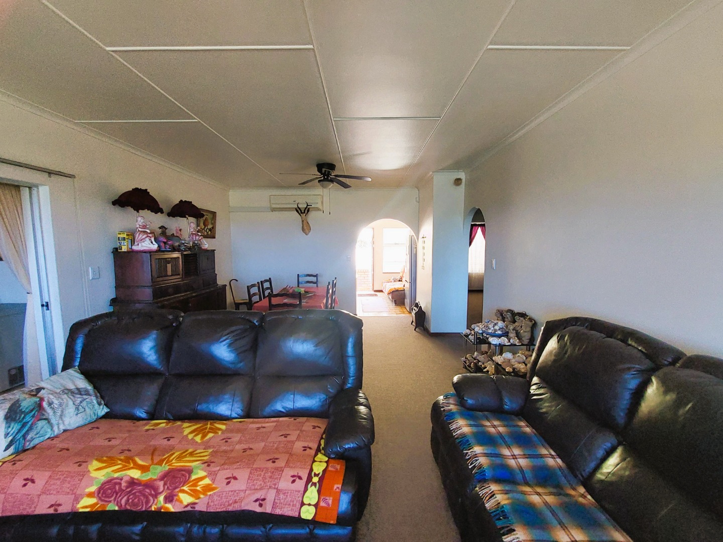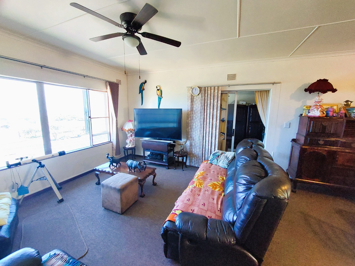 The lounge and dining room is open plan with big windows that take advantage of the lovely sea view. There is an aircon in the lounge which also has carpets. The complex is well maintained and has back water tanks. The flat also has an alarm system. Pets are allowed with permission.