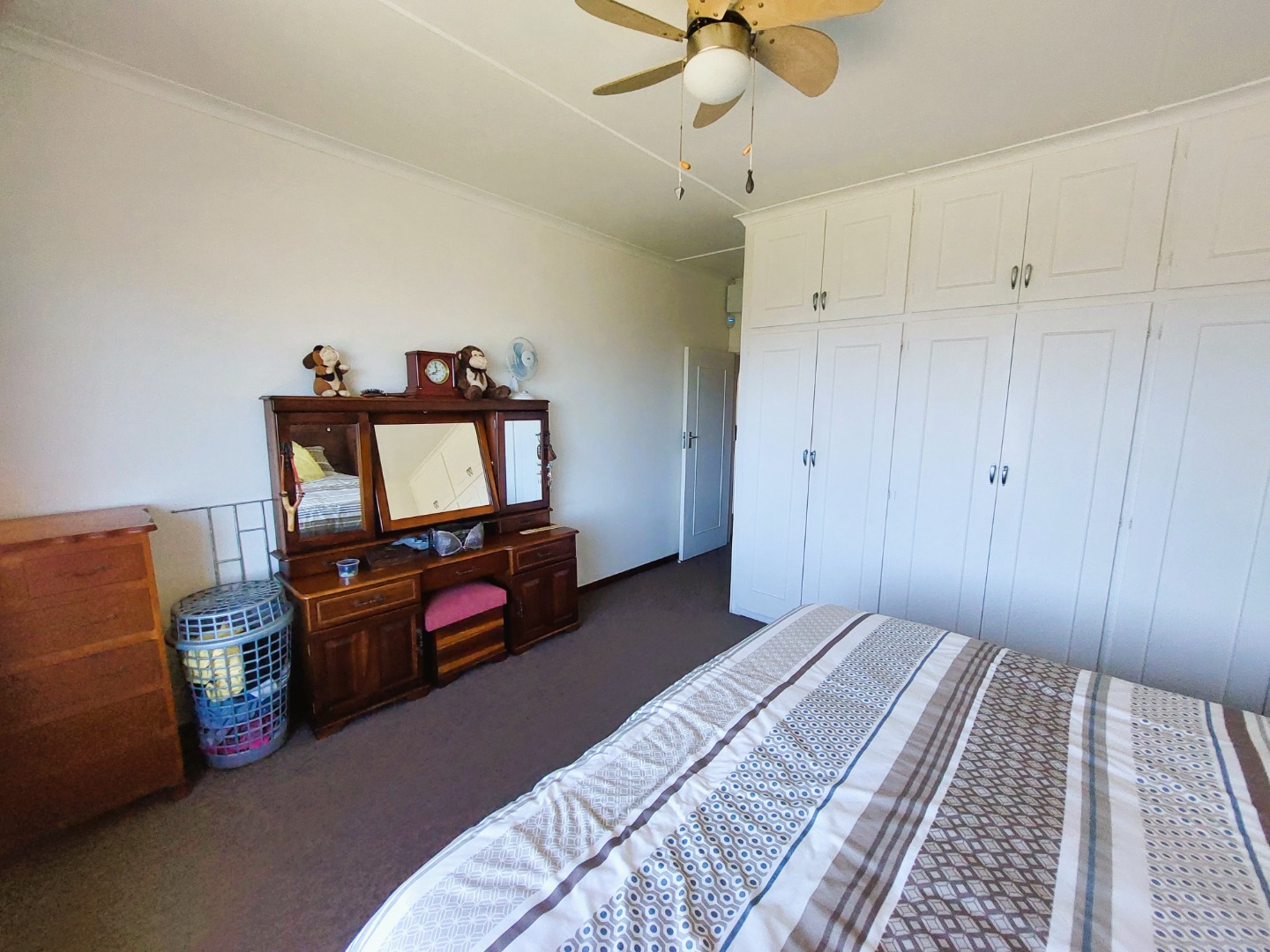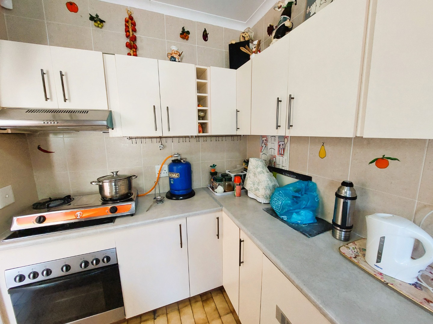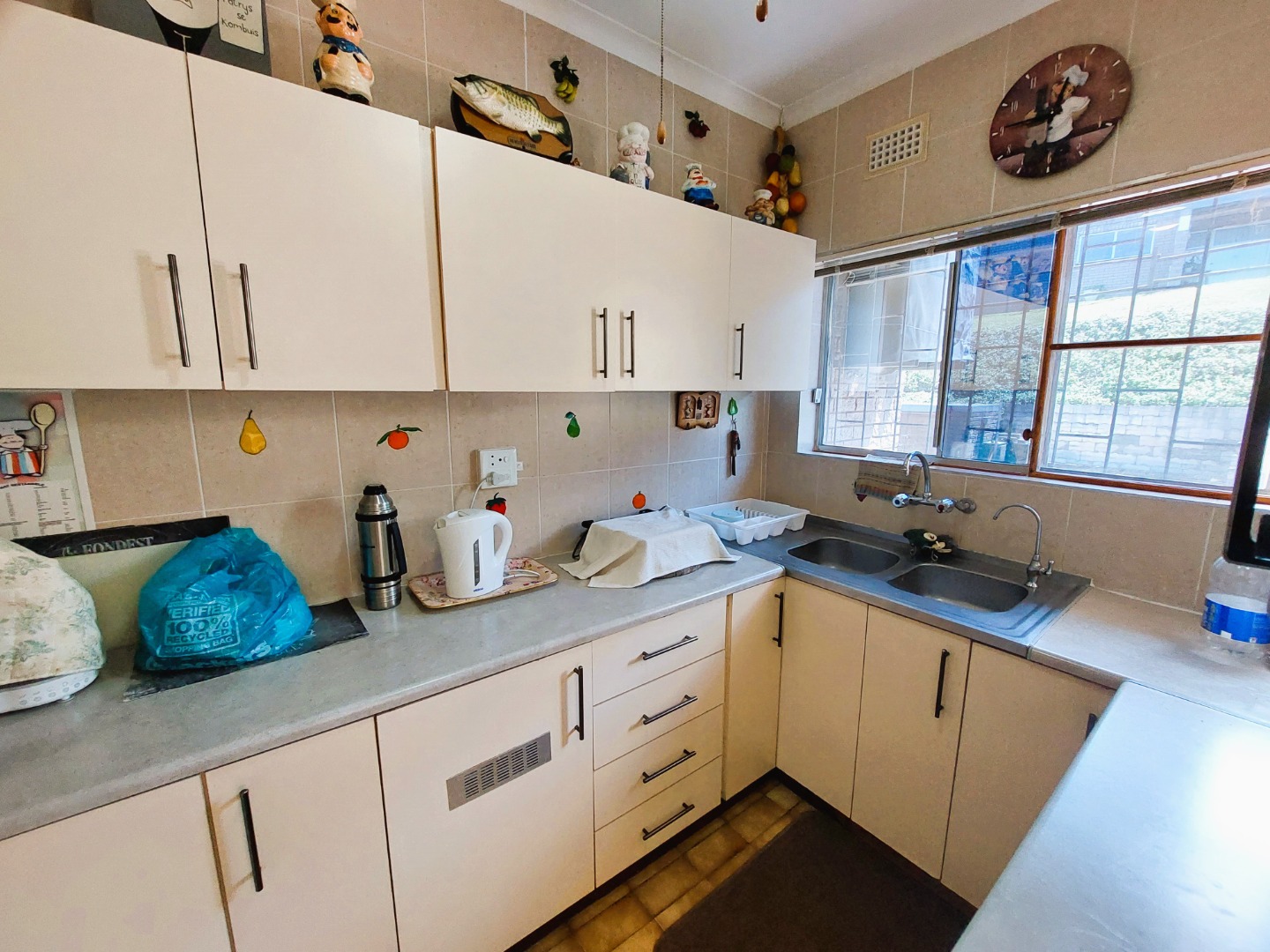 Whether its for holidays or permanent living this 3 bedroom apartment is conveniently located close to shops and the beach. 2 of the bedrooms have carpets and the third is tiled. The main bedroom has an en-suite bathroom and there is a second family bathroom with a bath and both are tiled. All the bedrooms have fans, the third bedroom has direct access into the garage. The kitchen is neat with enough cupboards, an undercounter oven and hob with a double sink.