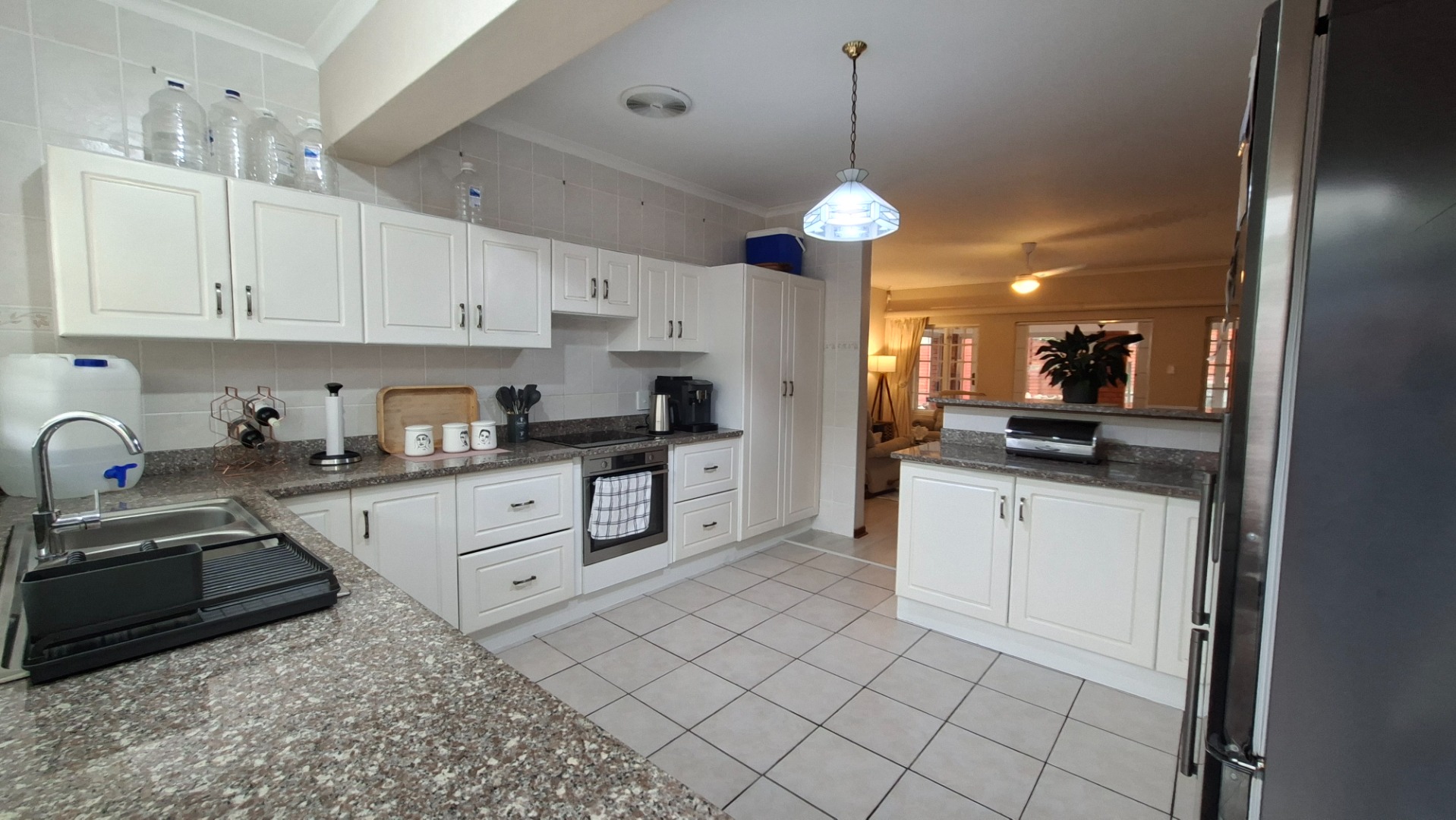 Accommodation comprises three well-appointed bedrooms. The principal suite benefits from an en-suite bathroom and substantial 'his-and-hers' wardrobe provisions, while a comprehensive family bathroom features a shower, toilet, and basin. Modern conveniences include air conditioning, ceiling fans throughout, and high-speed fibre connectivity. Strategically positioned for convenience, the residence offers effortless access to local amenities, retail establishments, and is merely a brief drive from the renowned Tweni Beach. This pet-friendly property is presented in an impeccable condition, requiring no immediate refurbishment, representing a truly compelling acquisition.