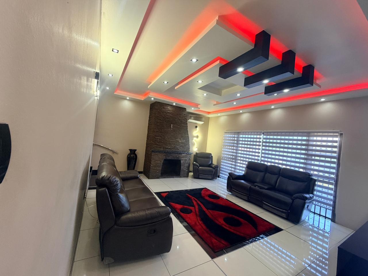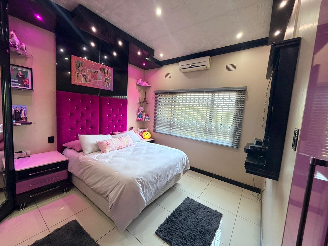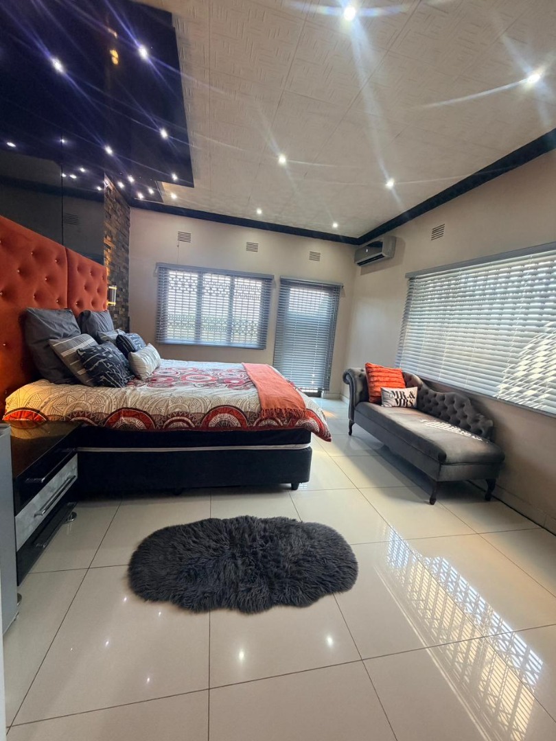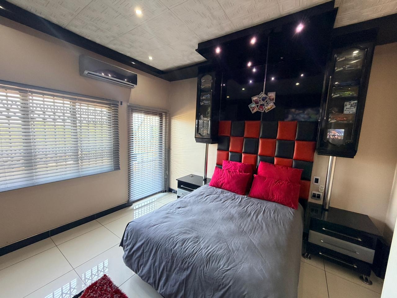 Luxurious, massive main bedroom with air conditioning ,a walk in closet, designer ensuite bathroom with custom shower, Geberit in wall system and a floating toilet. All bedrooms come with air conditioning, built in cupboards and headboards. Fourth bedroom is currently used as a prayer room which can be easily converted into a bedroom. Fully fitted modern kitchen with centre island, glass hob &extractor ,dishwasher connections & air conditioning. Enclosed braai area with awnings. Built in fireplace, gas hob and double sink. Massive double garages, sliding doors opening to entertainment are. Interleading fridge room, separate laundry, wash room, storage room and domestic room. Flatlet under basement is accessible via internal stairs is currently used as an office. opens onto the main driveway and pool are. Separate double storey cottage perfect for Airbnb, rental or extended family. Main house has 18 solar panels, two lithium batteries, borehole and a 5000L Jo Jo tank. High boundary walls & electric fencing all around makes it very safe and secure. This property is fully off-grid, move in ready and very secure and private.