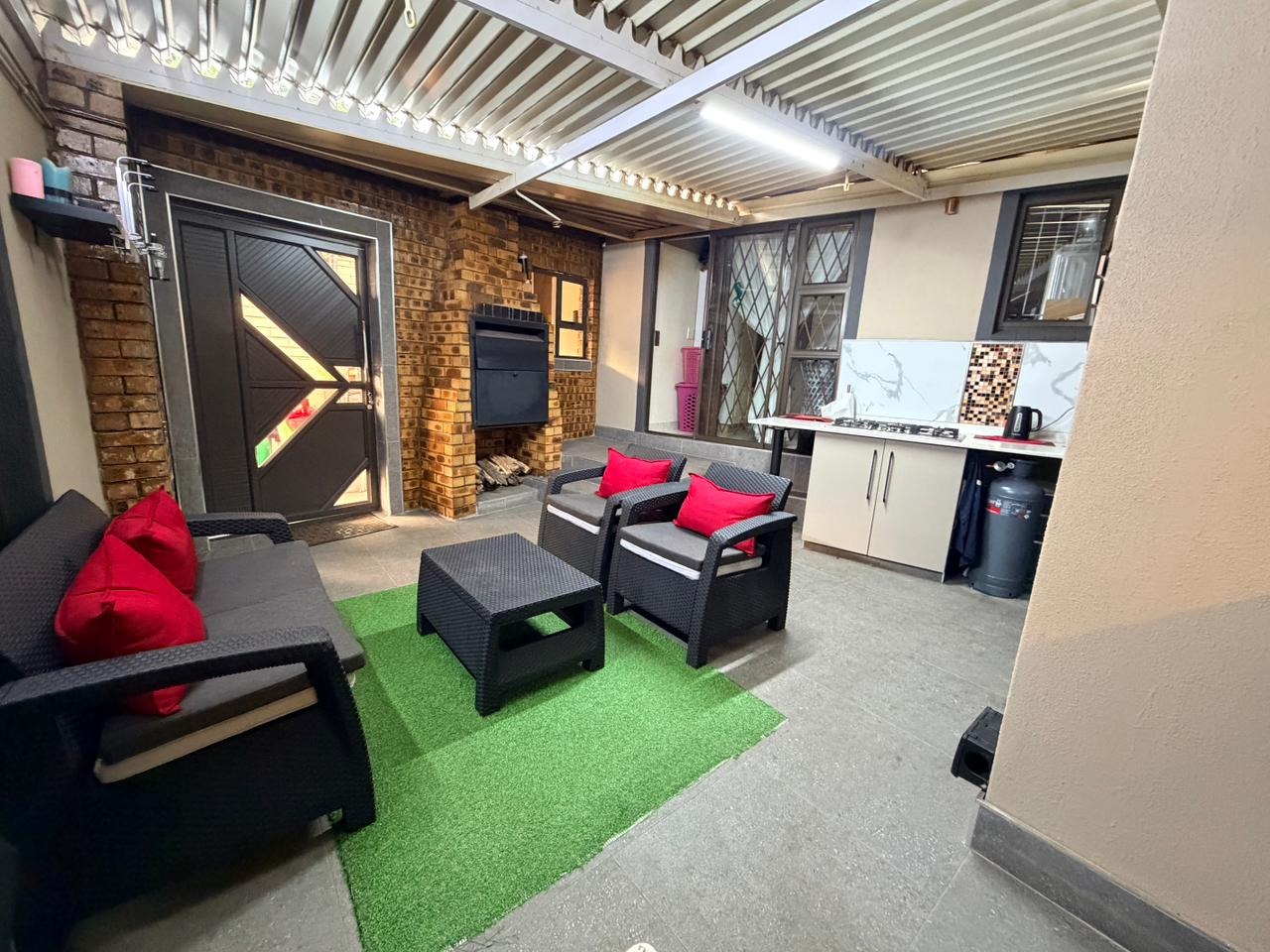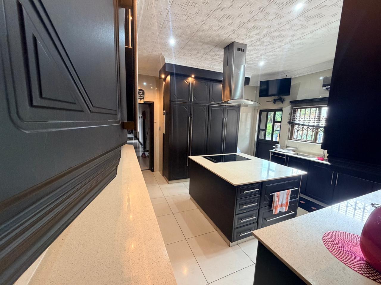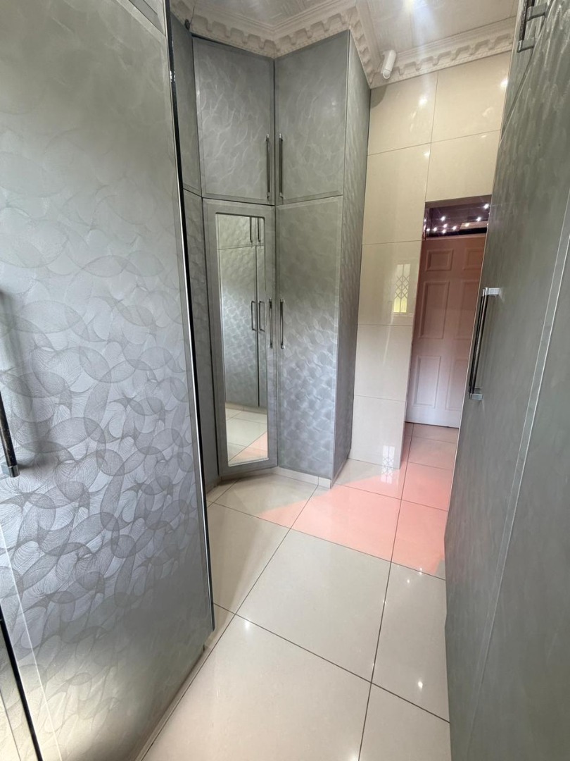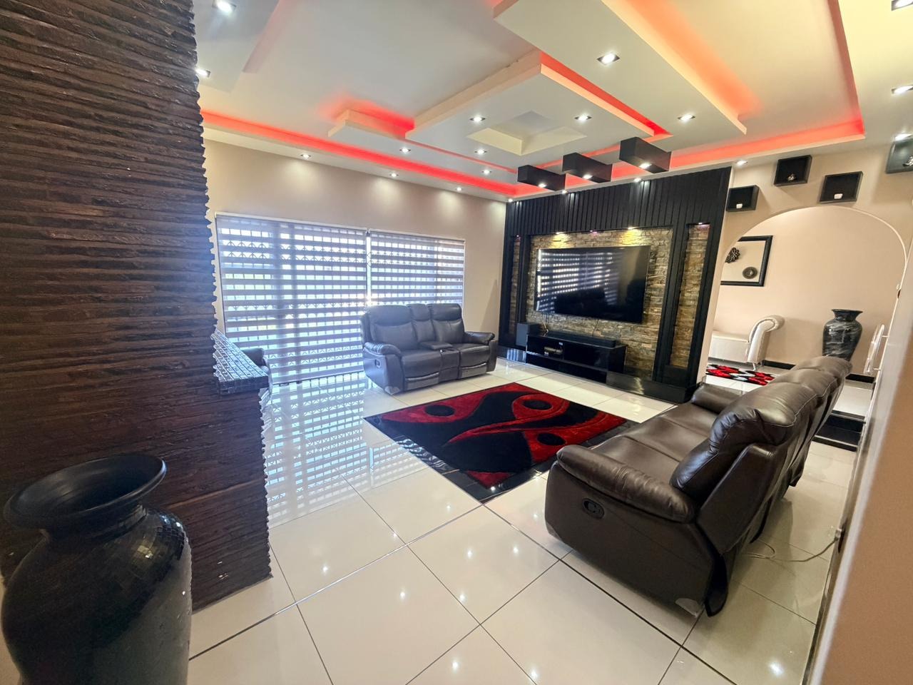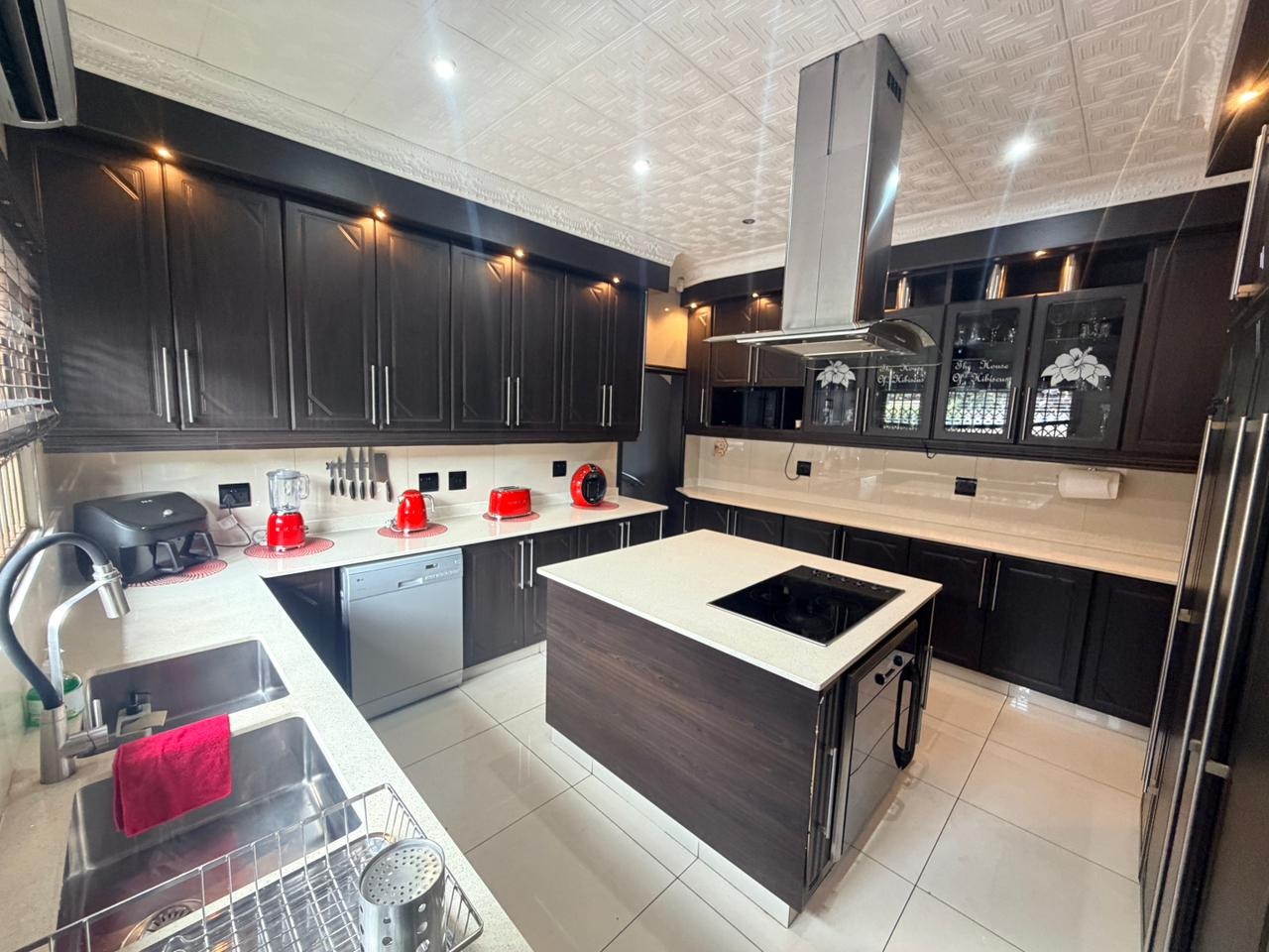 Luxurious, massive main bedroom with air conditioning ,a walk in closet, designer ensuite bathroom with custom shower, Geberit in wall system and a floating toilet. All bedrooms come with air conditioning, built in cupboards and headboards. Fourth bedroom is currently used as a prayer room which can be easily converted into a bedroom. Fully fitted modern kitchen with centre island, glass hob &extractor ,dishwasher connections & air conditioning. Enclosed braai area with awnings. Built in fireplace, gas hob and double sink. Massive double garages, sliding doors opening to entertainment are. Interleading fridge room, separate laundry, wash room, storage room and domestic room. Flatlet under basement is accessible via internal stairs is currently used as an office. opens onto the main driveway and pool are. Separate double storey cottage perfect for Airbnb, rental or extended family. Main house has 18 solar panels, two lithium batteries, borehole and a 5000L Jo Jo tank. High boundary walls & electric fencing all around makes it very safe and secure. This property is fully off-grid, move in ready and very secure and private.