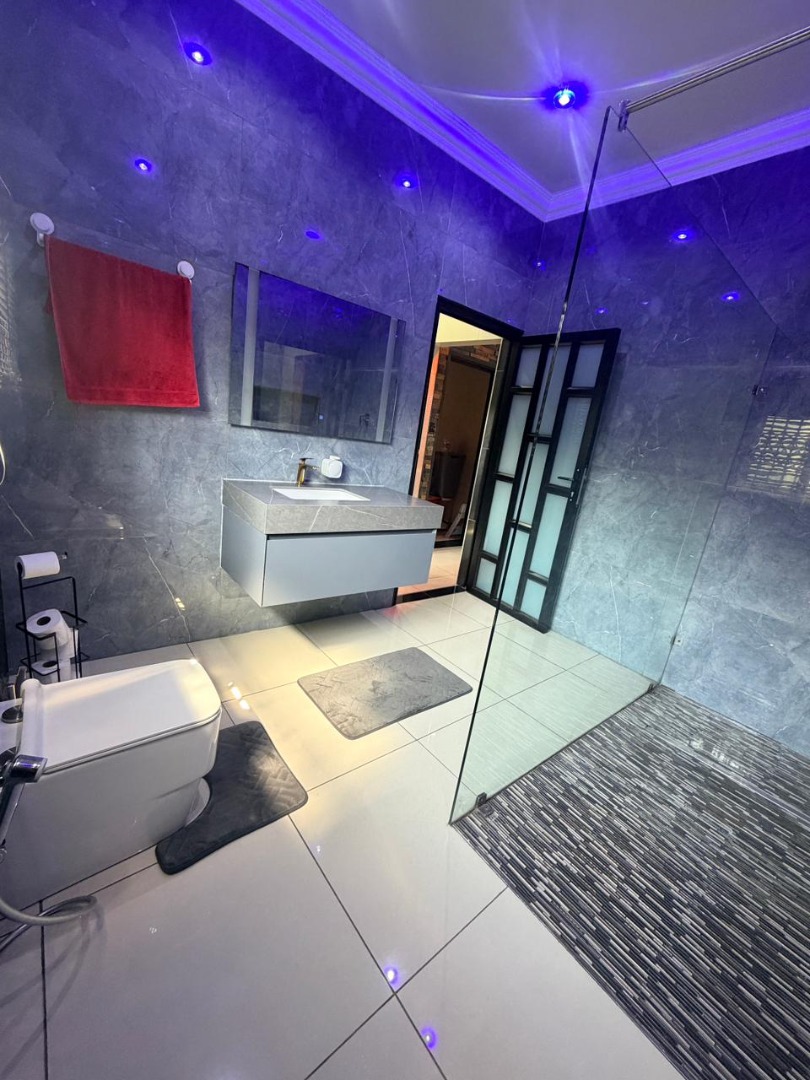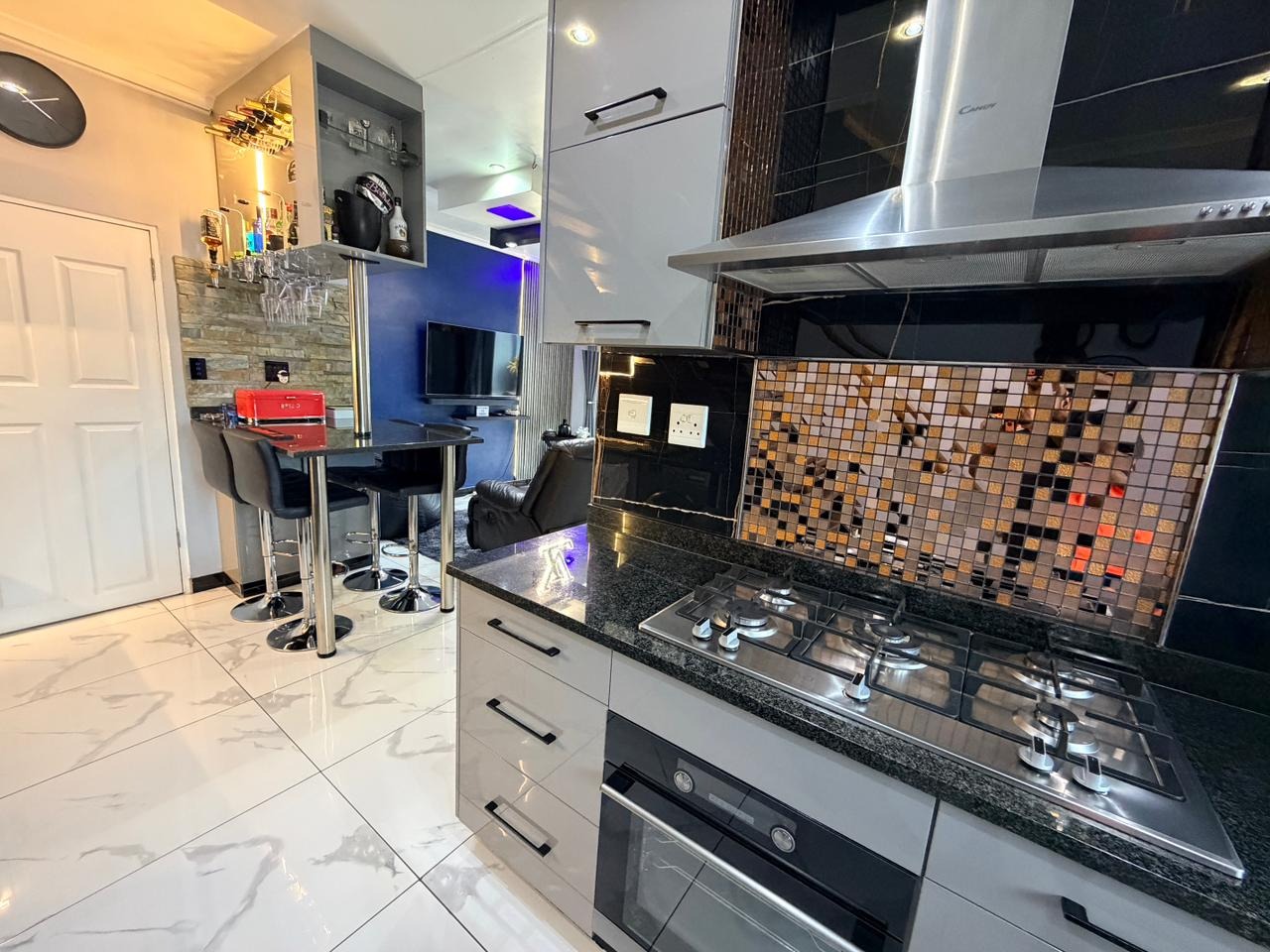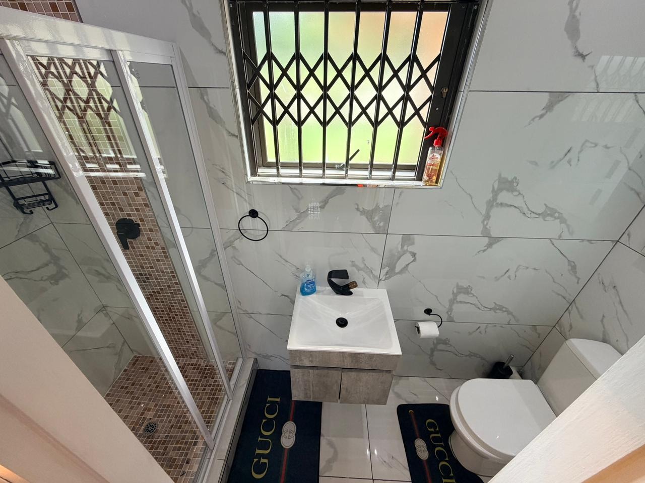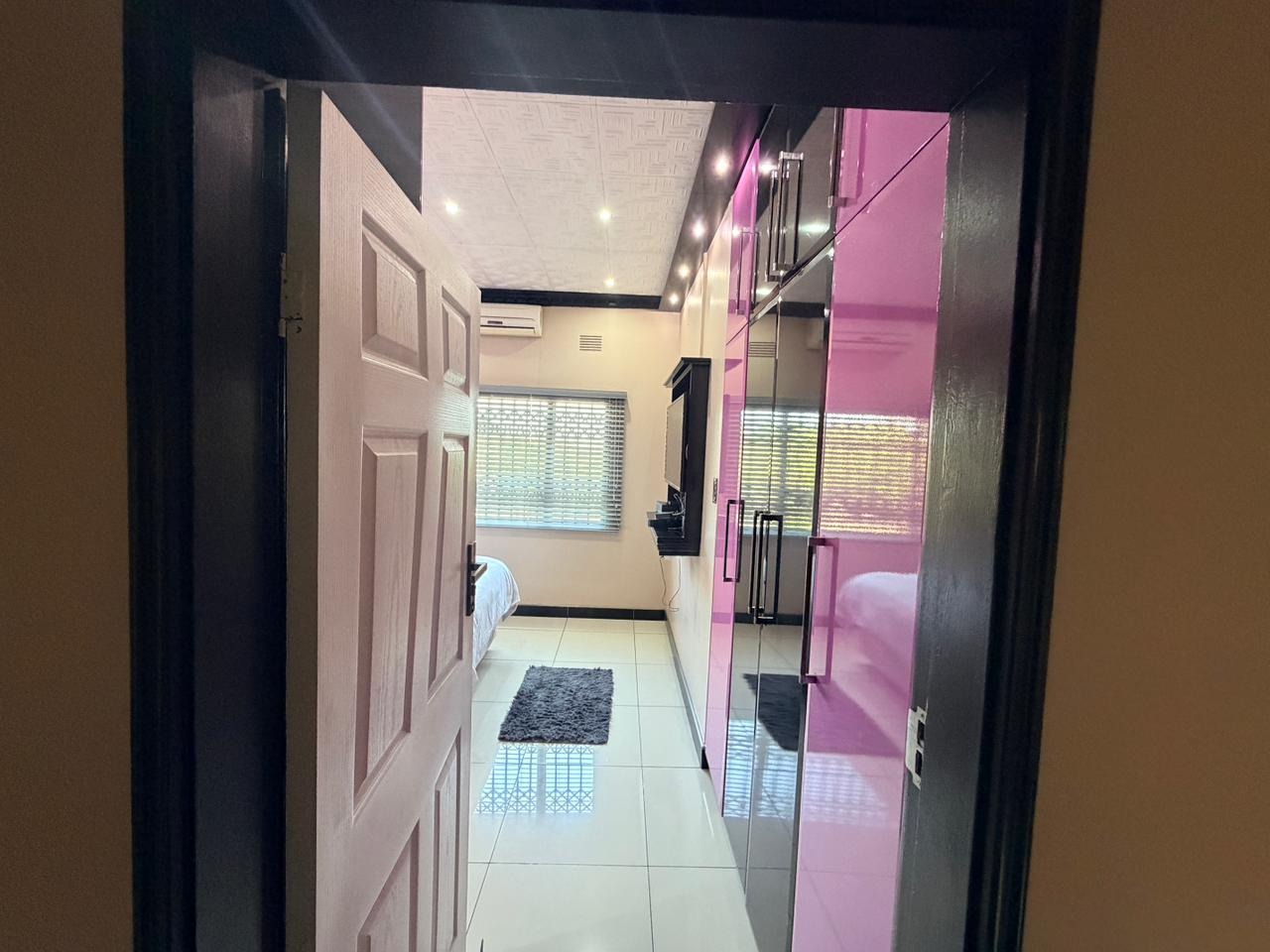 Luxurious, massive main bedroom with air conditioning ,a walk in closet, designer ensuite bathroom with custom shower, Geberit in wall system and a floating toilet. All bedrooms come with air conditioning, built in cupboards and headboards. Fourth bedroom is currently used as a prayer room which can be easily converted into a bedroom. Fully fitted modern kitchen with centre island, glass hob &extractor ,dishwasher connections & air conditioning. Enclosed braai area with awnings. Built in fireplace, gas hob and double sink. Massive double garages, sliding doors opening to entertainment are. Interleading fridge room, separate laundry, wash room, storage room and domestic room. Flatlet under basement is accessible via internal stairs is currently used as an office. opens onto the main driveway and pool are. Separate double storey cottage perfect for Airbnb, rental or extended family. Main house has 18 solar panels, two lithium batteries, borehole and a 5000L Jo Jo tank. High boundary walls & electric fencing all around makes it very safe and secure. This property is fully off-grid, move in ready and very secure and private.