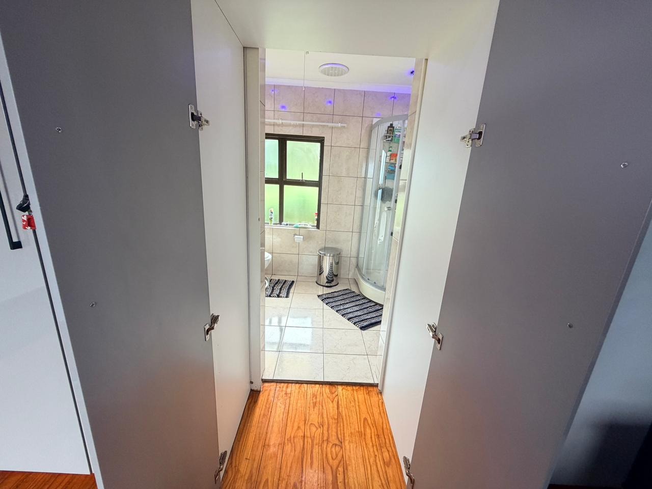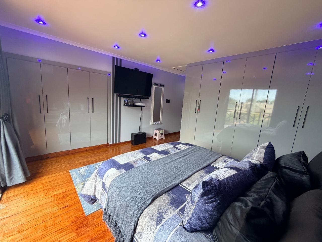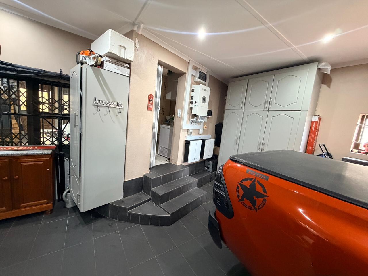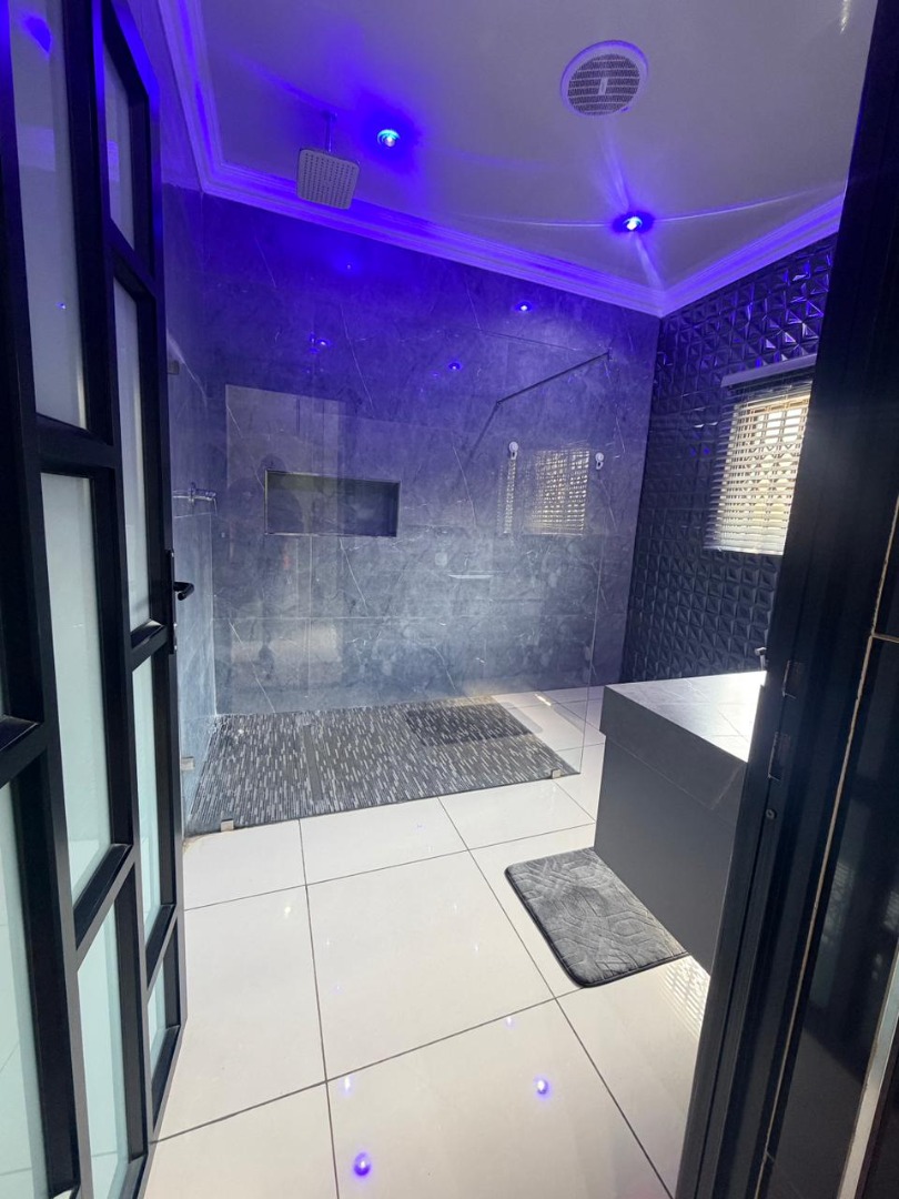 Luxurious, massive main bedroom with air conditioning ,a walk in closet, designer ensuite bathroom with custom shower, Geberit in wall system and a floating toilet. All bedrooms come with air conditioning, built in cupboards and headboards. Fourth bedroom is currently used as a prayer room which can be easily converted into a bedroom. Fully fitted modern kitchen with centre island, glass hob &extractor ,dishwasher connections & air conditioning. Enclosed braai area with awnings. Built in fireplace, gas hob and double sink. Massive double garages, sliding doors opening to entertainment are. Interleading fridge room, separate laundry, wash room, storage room and domestic room. Flatlet under basement is accessible via internal stairs is currently used as an office. opens onto the main driveway and pool are. Separate double storey cottage perfect for Airbnb, rental or extended family. Main house has 18 solar panels, two lithium batteries, borehole and a 5000L Jo Jo tank. High boundary walls & electric fencing all around makes it very safe and secure. This property is fully off-grid, move in ready and very secure and private.