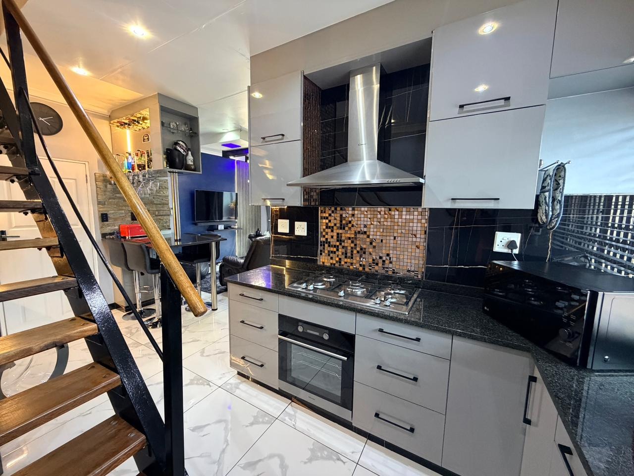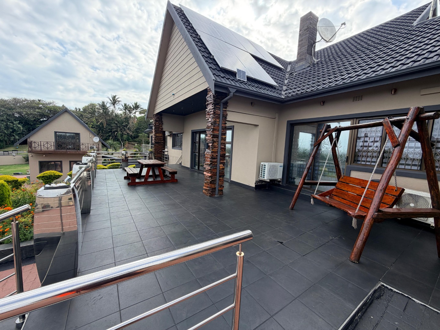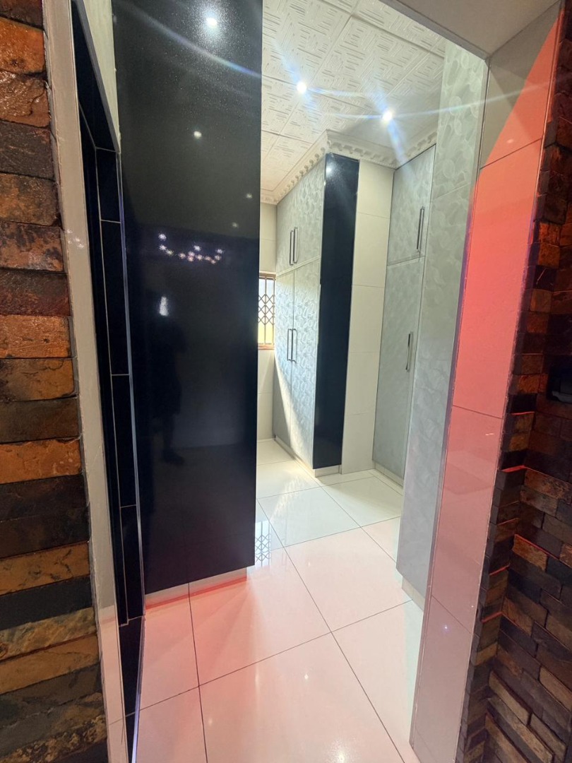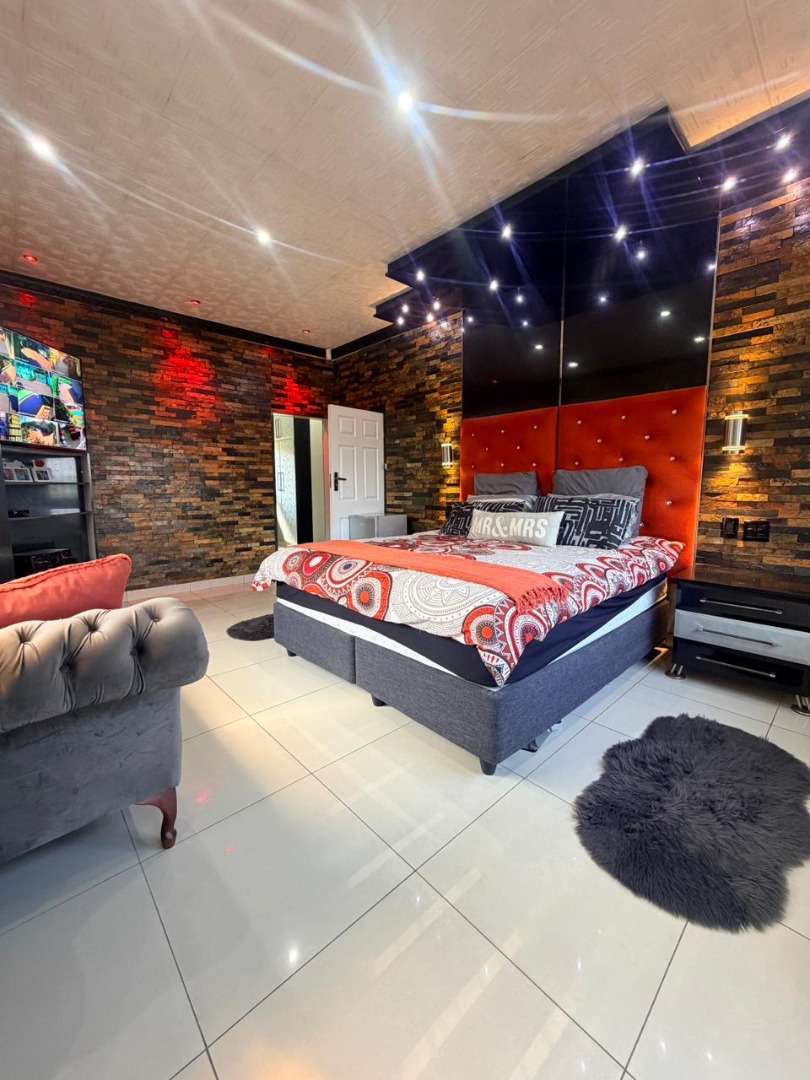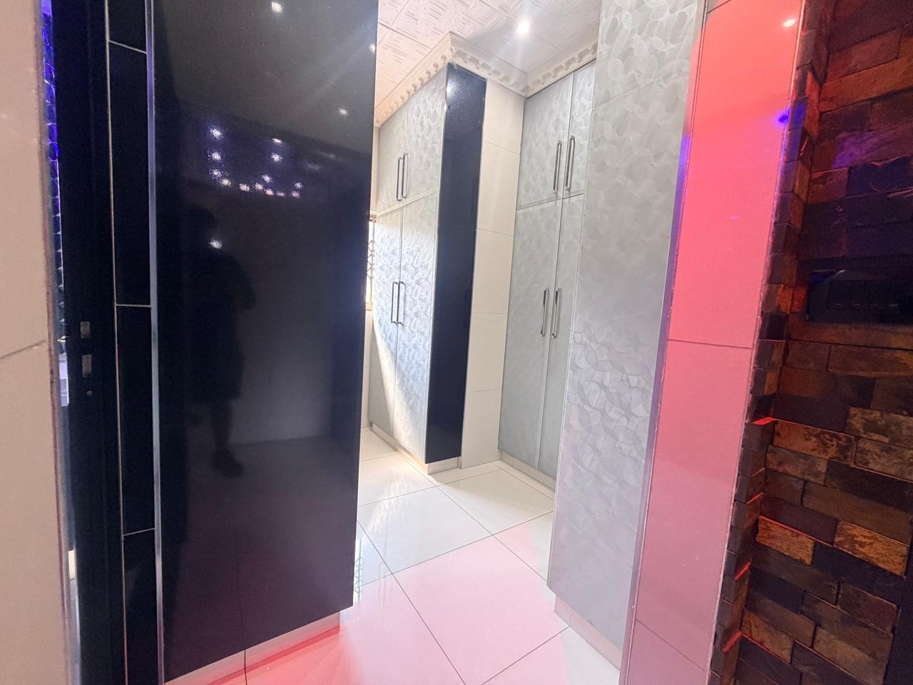 Luxurious, massive main bedroom with air conditioning ,a walk in closet, designer ensuite bathroom with custom shower, Geberit in wall system and a floating toilet. All bedrooms come with air conditioning, built in cupboards and headboards. Fourth bedroom is currently used as a prayer room which can be easily converted into a bedroom. Fully fitted modern kitchen with centre island, glass hob &extractor ,dishwasher connections & air conditioning. Enclosed braai area with awnings. Built in fireplace, gas hob and double sink. Massive double garages, sliding doors opening to entertainment are. Interleading fridge room, separate laundry, wash room, storage room and domestic room. Flatlet under basement is accessible via internal stairs is currently used as an office. opens onto the main driveway and pool are. Separate double storey cottage perfect for Airbnb, rental or extended family. Main house has 18 solar panels, two lithium batteries, borehole and a 5000L Jo Jo tank. High boundary walls & electric fencing all around makes it very safe and secure. This property is fully off-grid, move in ready and very secure and private.