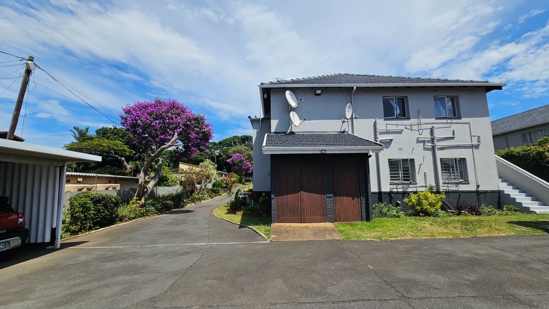 Discover this charming residential property located in the desirable Scottburgh Central, offering a blend of comfort and convenience. The multi-story home presents a clean, contemporary exterior with a light-coloured facade and numerous large windows that invite abundant natural light indoors. Set within a lush, well-maintained garden, the property boasts a paved driveway leading to a single garage, ensuring practical parking solutions.